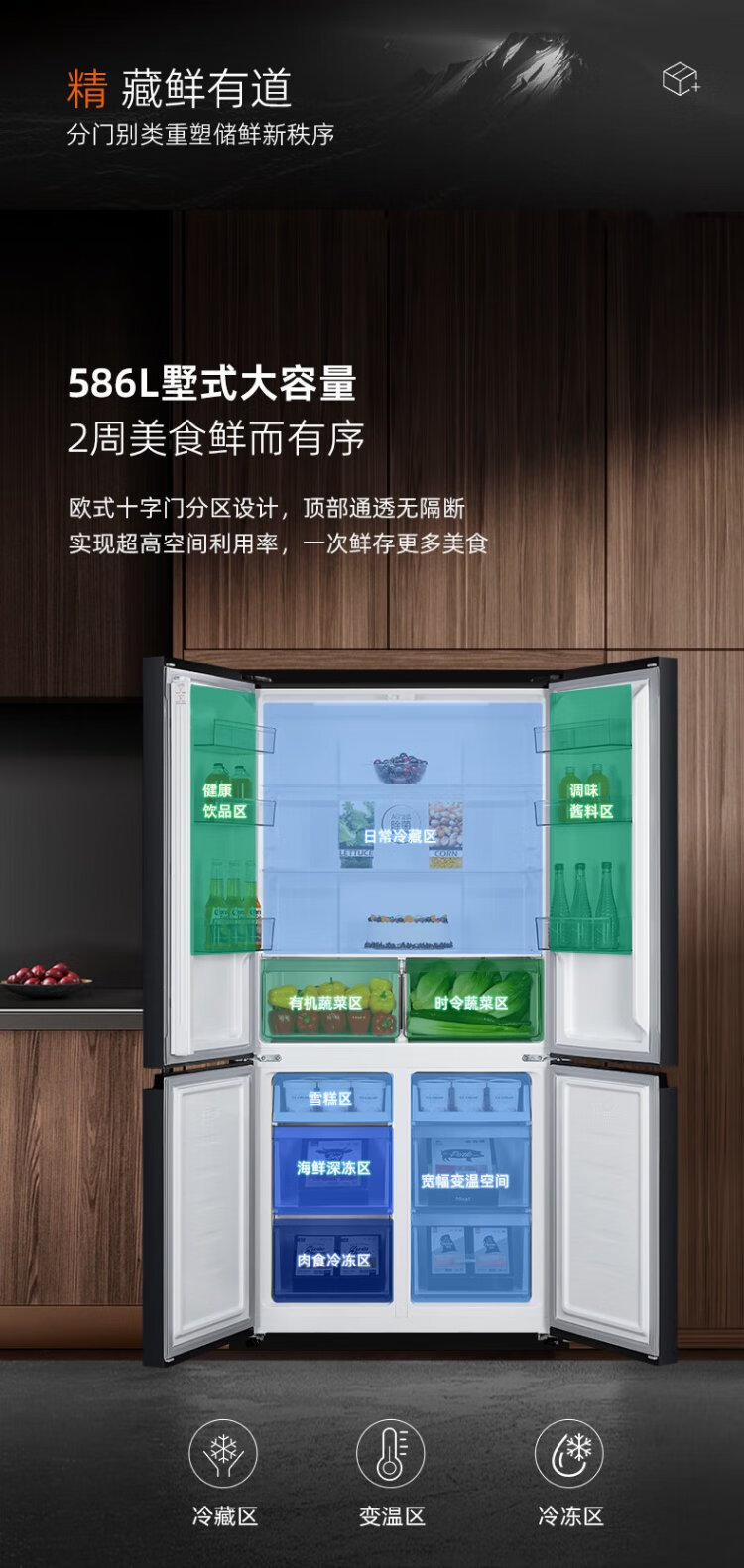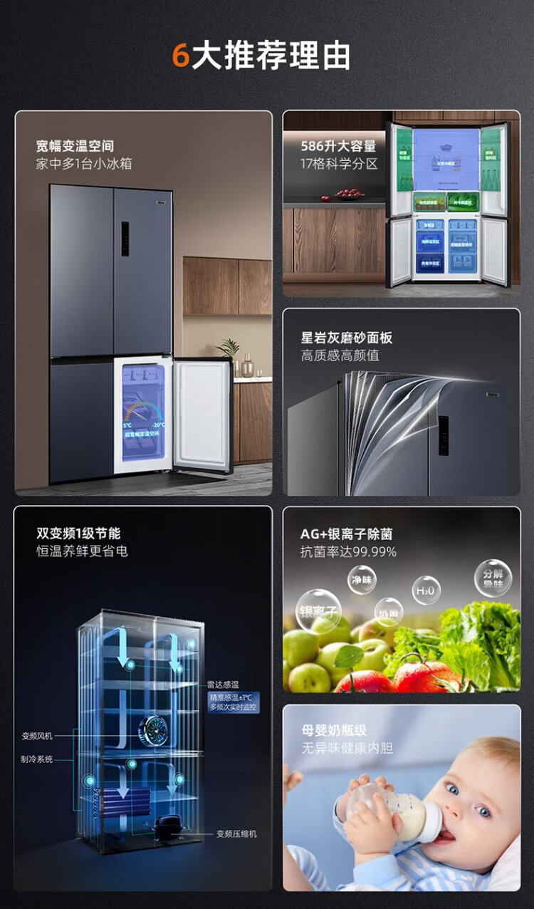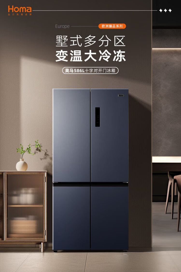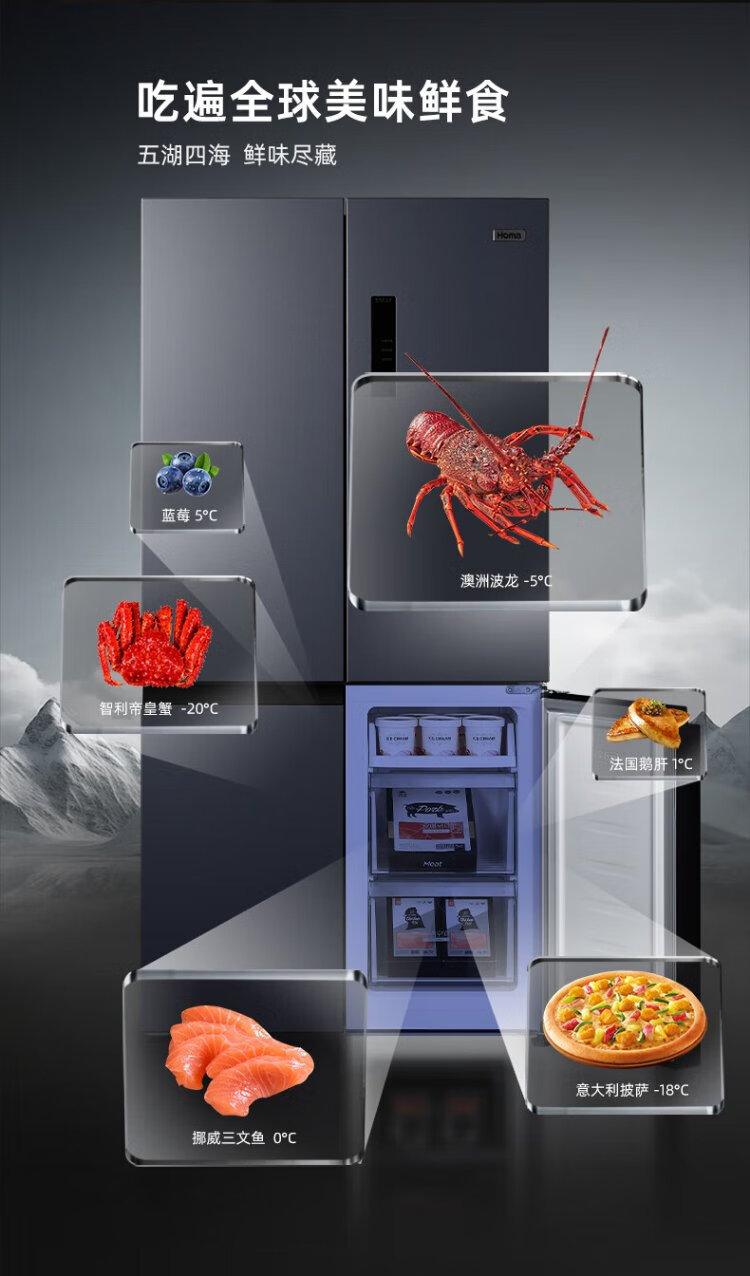 Homa 586 liter large capacity wide temperature variable temperature first class energy efficiency dual frequency conversion energy saving air cooling frost-free sterilization four-door cross-door household refrigerator double door refrigerator