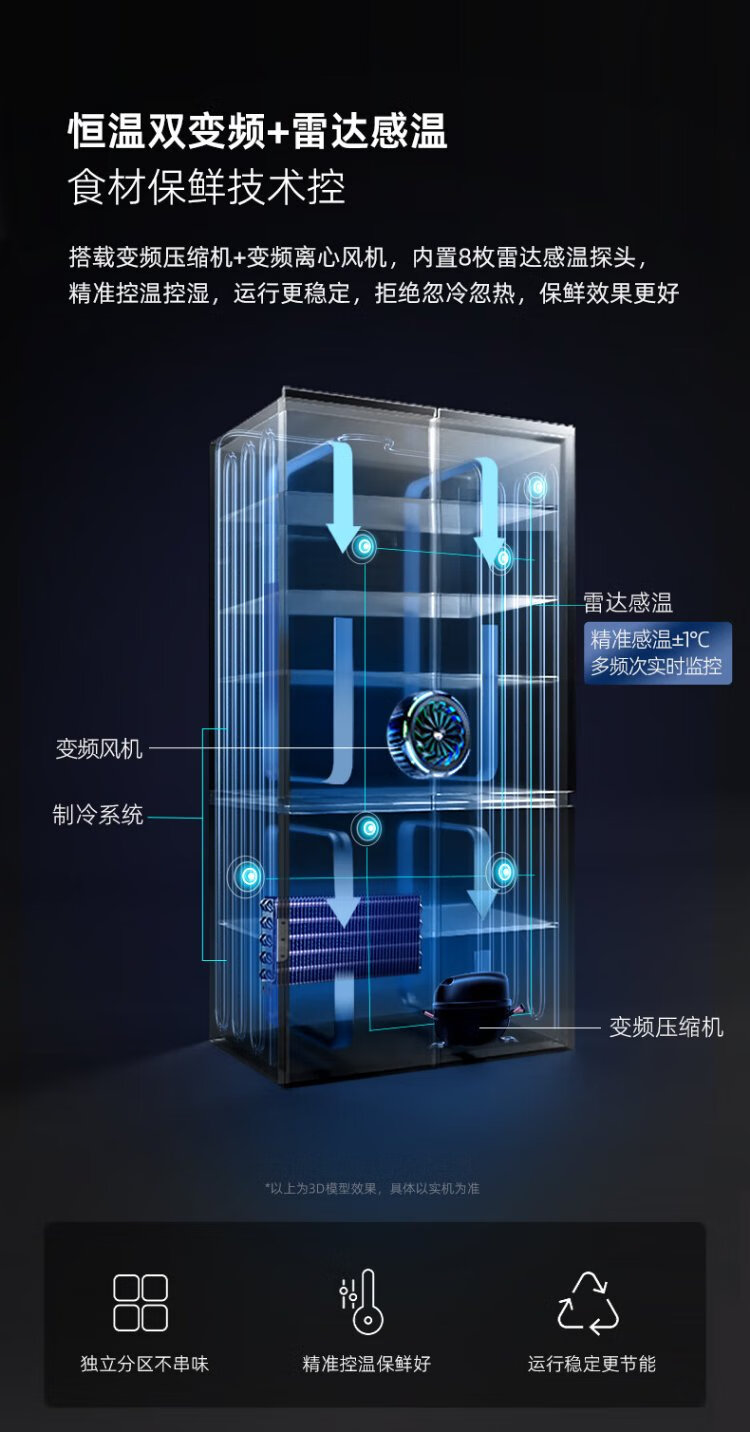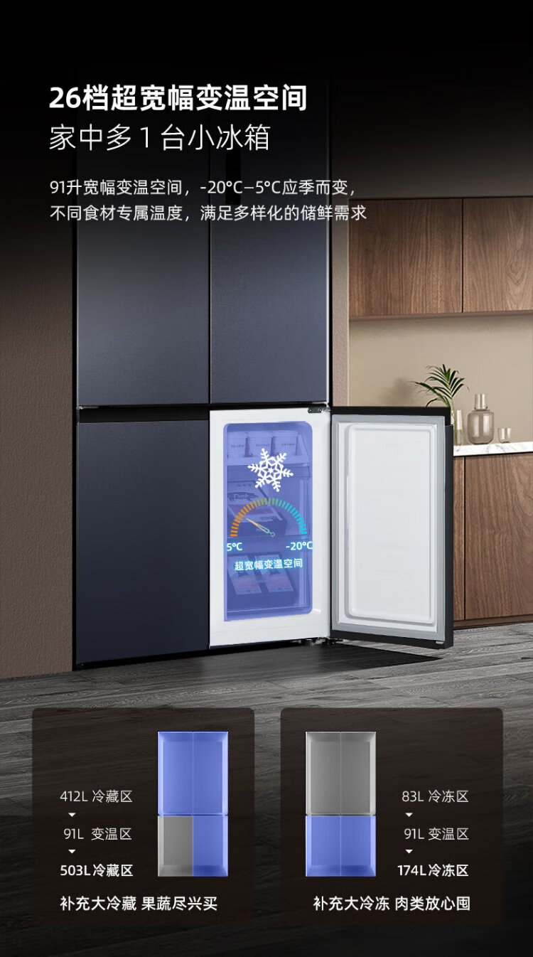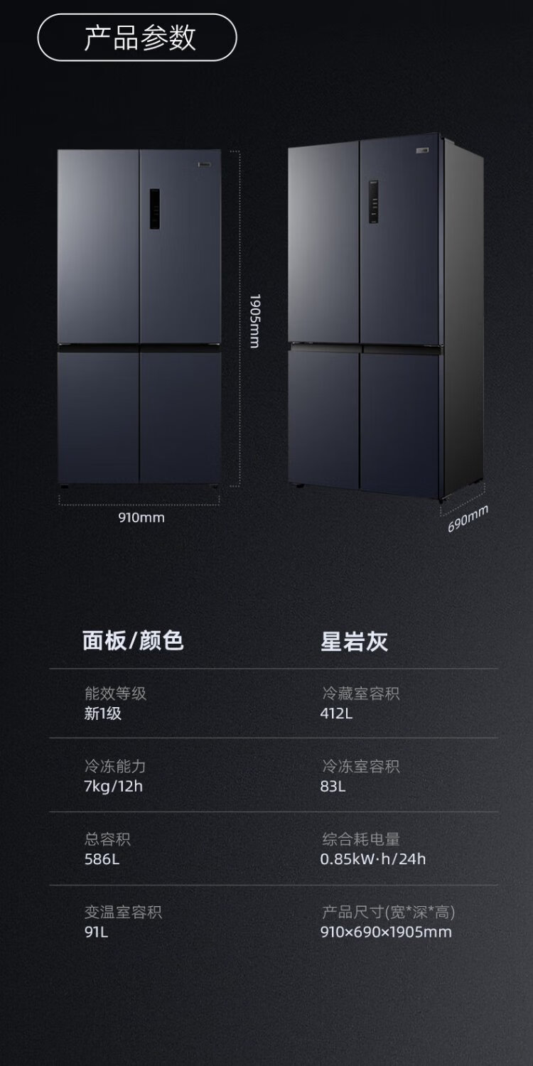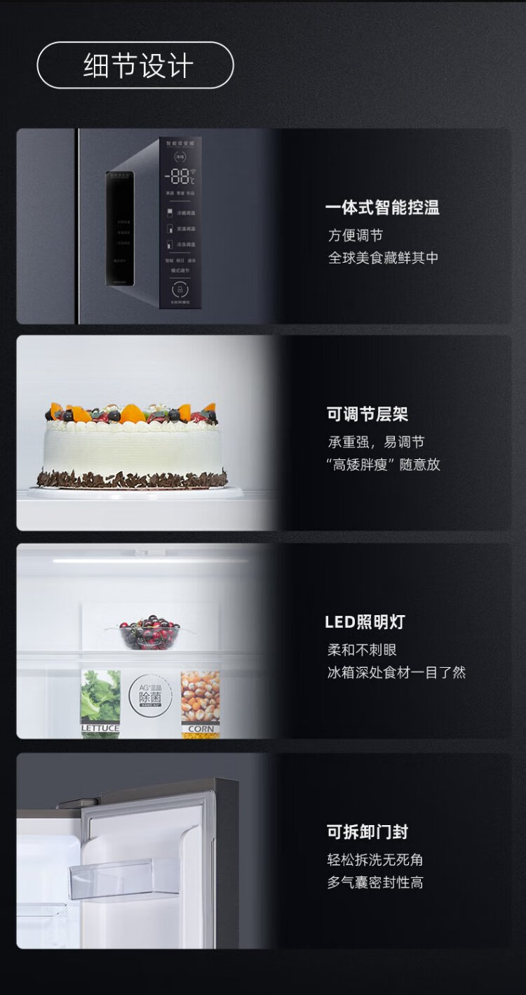 Homa 586 liter large capacity wide temperature variable temperature first class energy efficiency dual frequency conversion energy saving air cooling frost-free sterilization four-door cross-door household refrigerator double door refrigerator