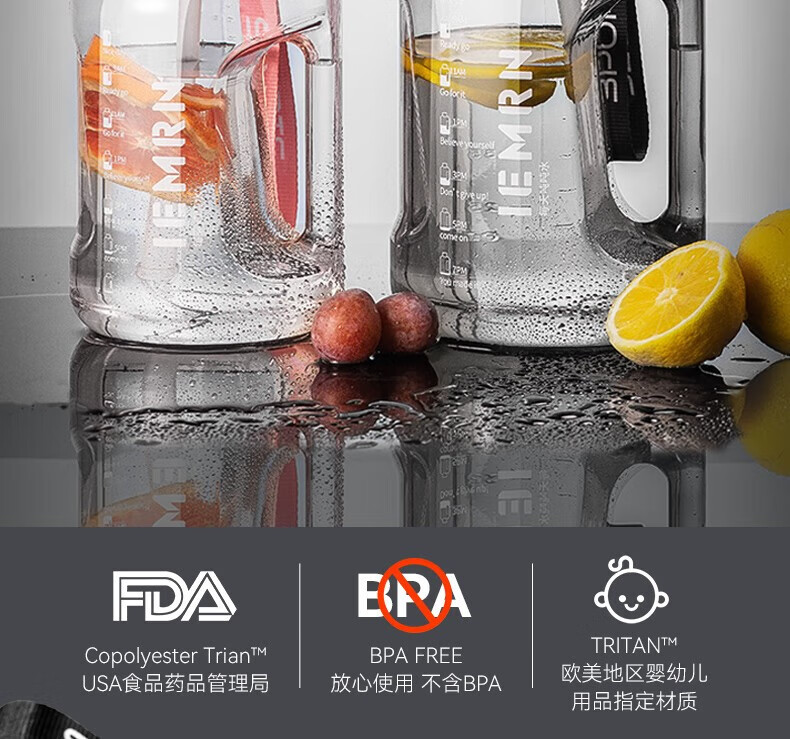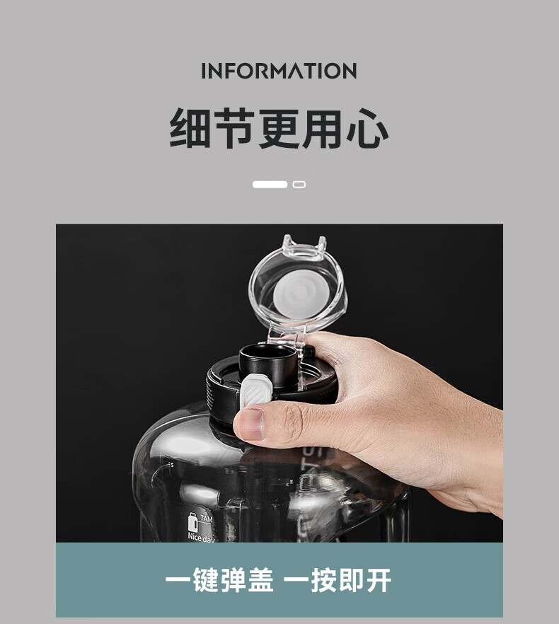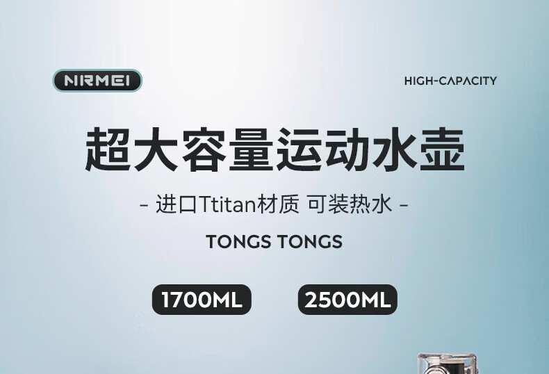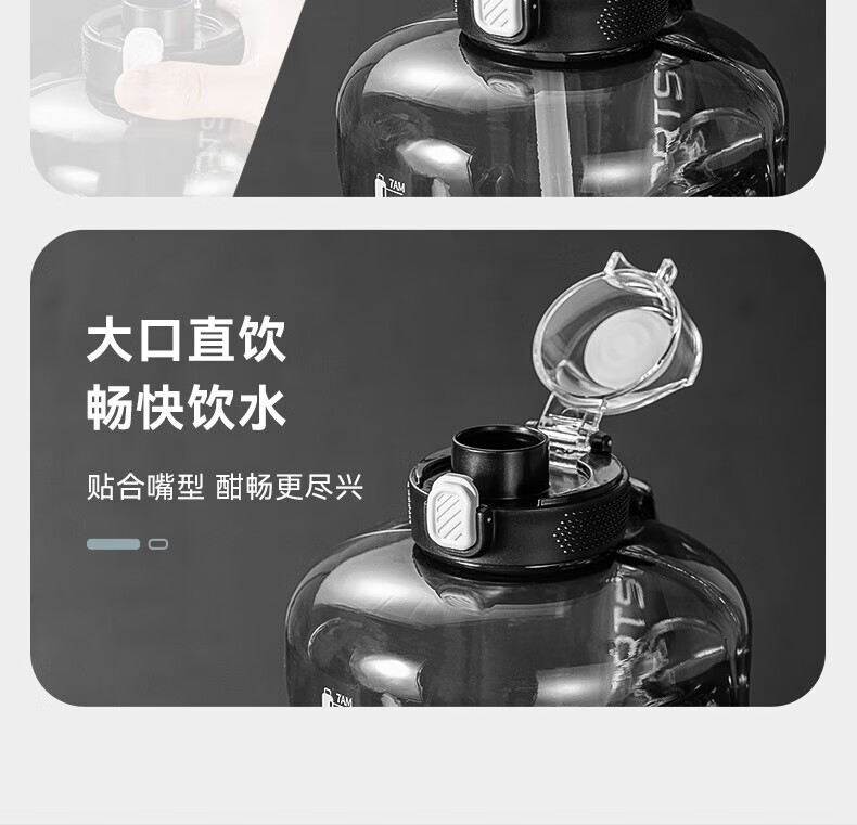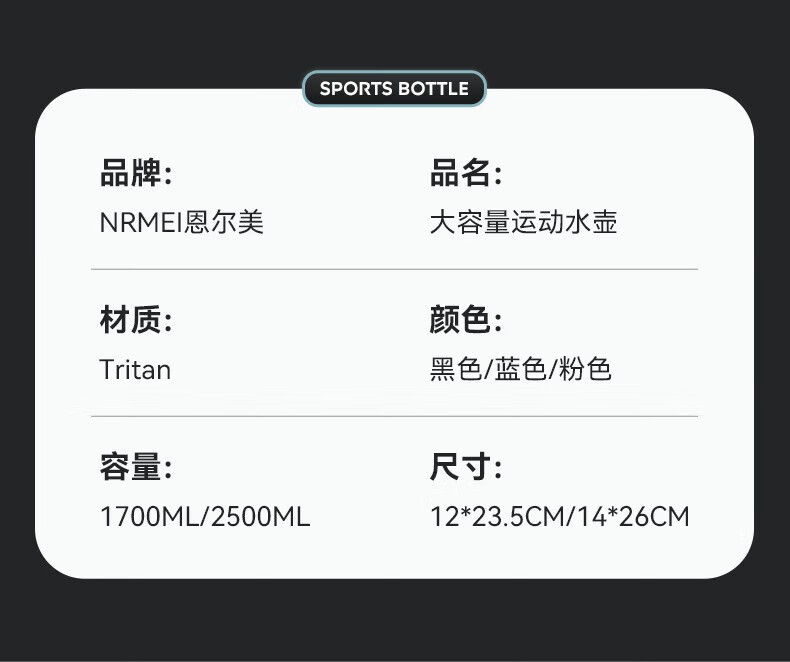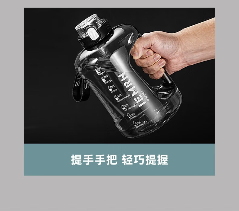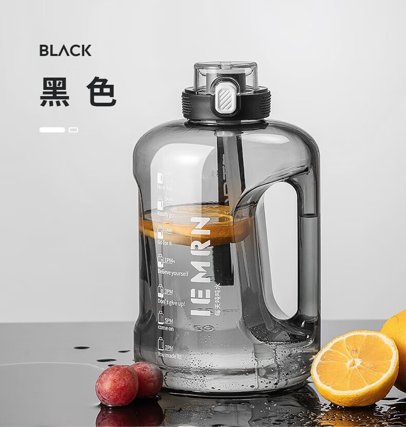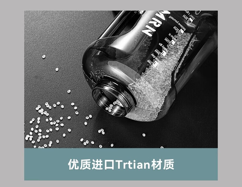 NRMEi water cup ultra-large capacity student sports fitness kettle for men and women tons of net celebrity fitness portable high temperature resistant new model dark night black thickened tritan material 1800ml