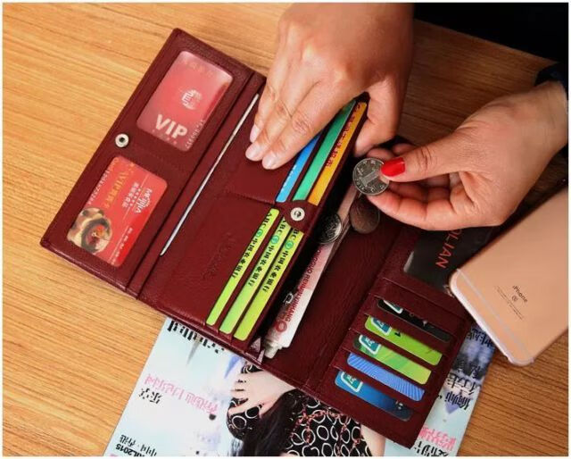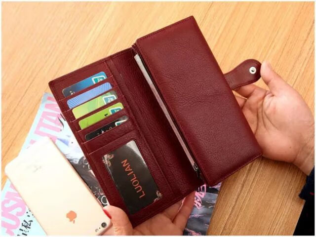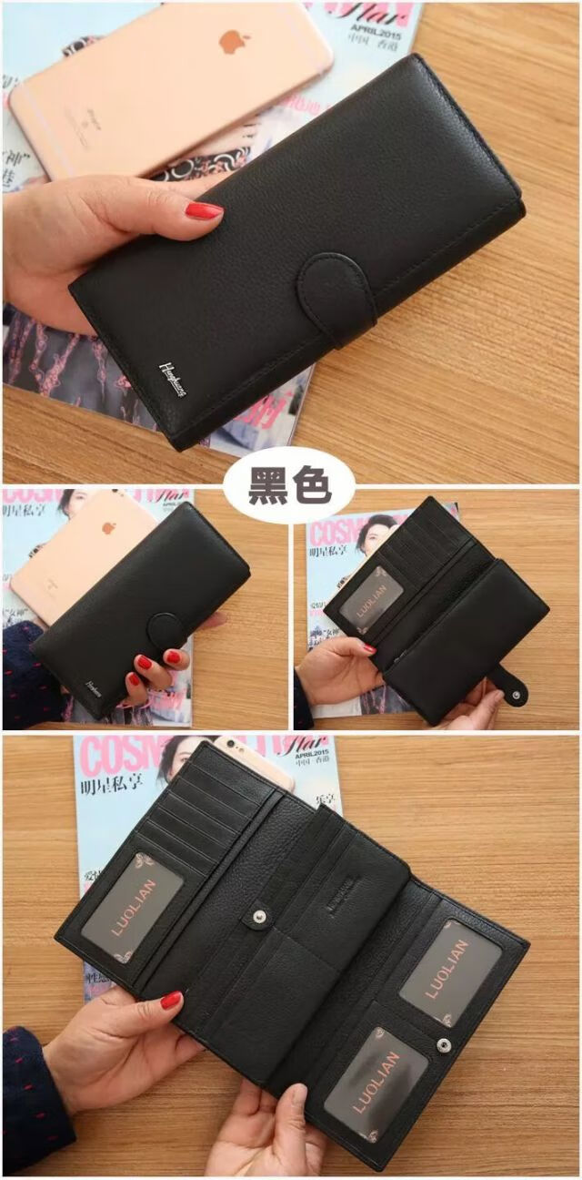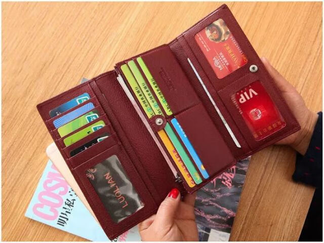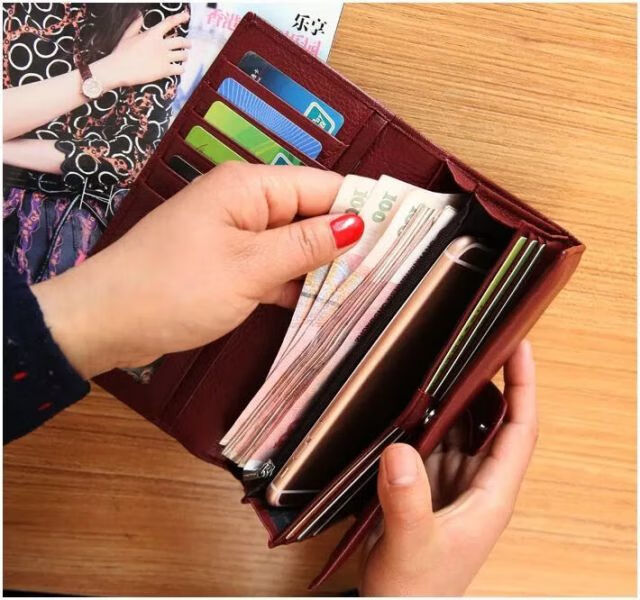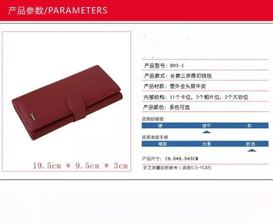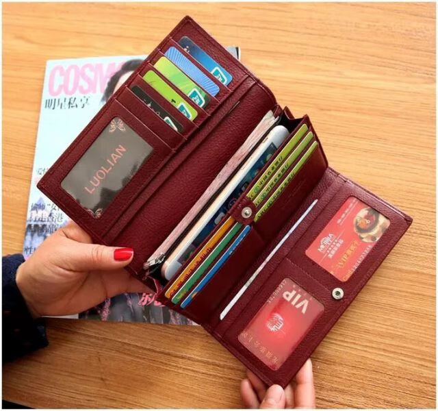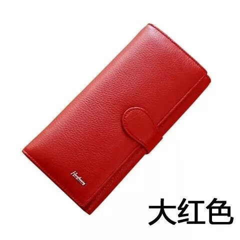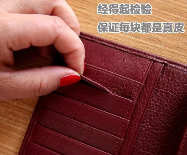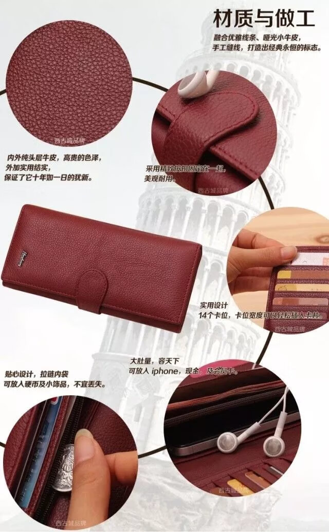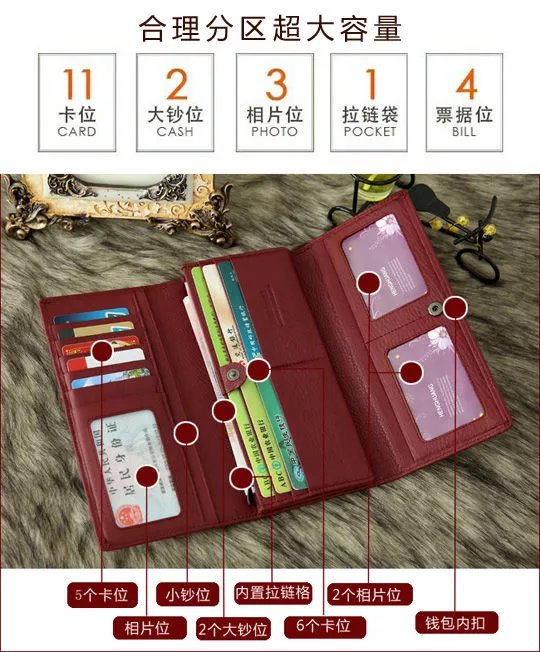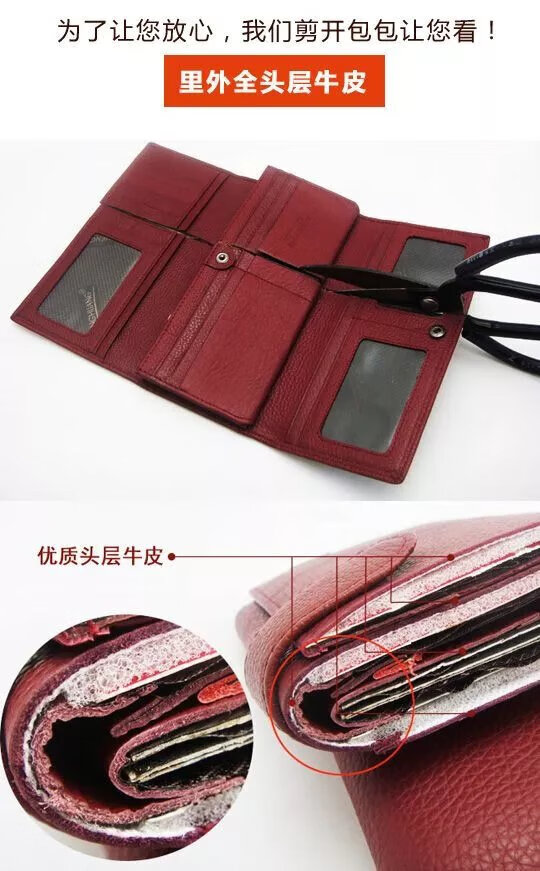 Kangaroo Light Luxury Brand Cowhide Women's Wallet Women's Long Genuine Leather Litchi Pattern Durable Soft Leather Tri-fold Wallet Clutch Maroon