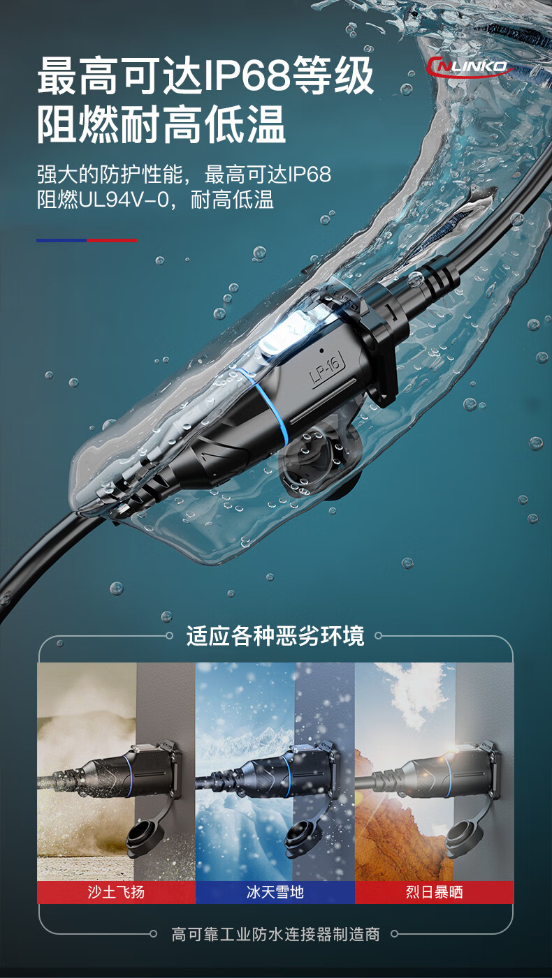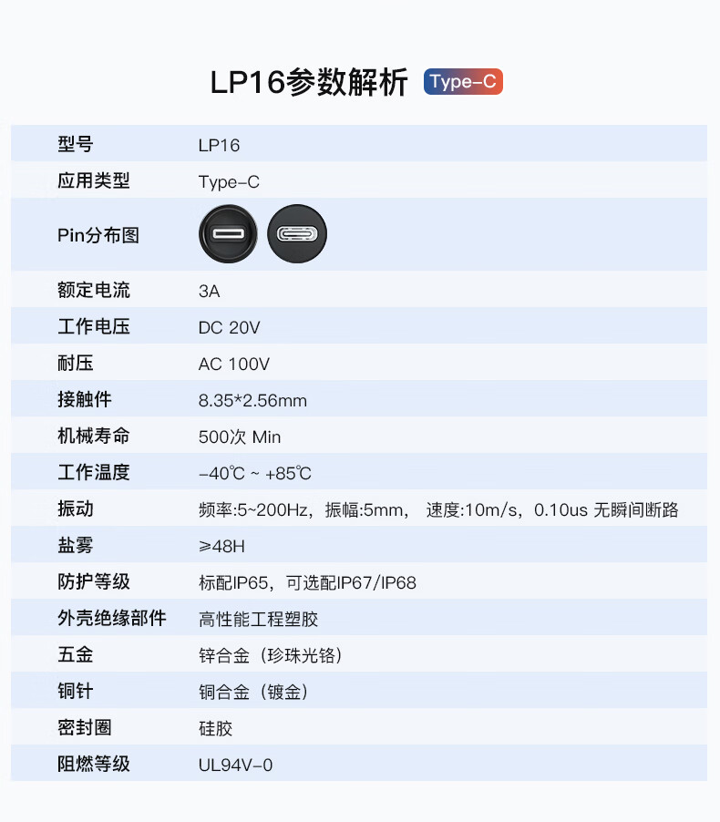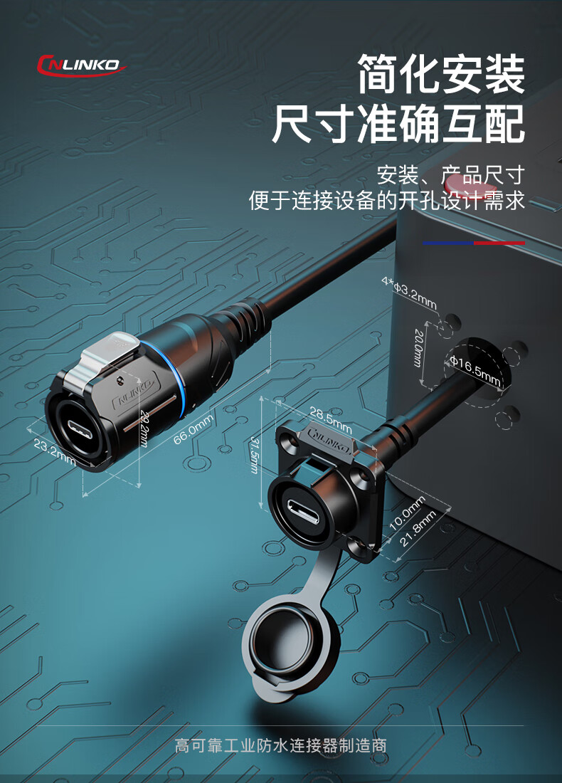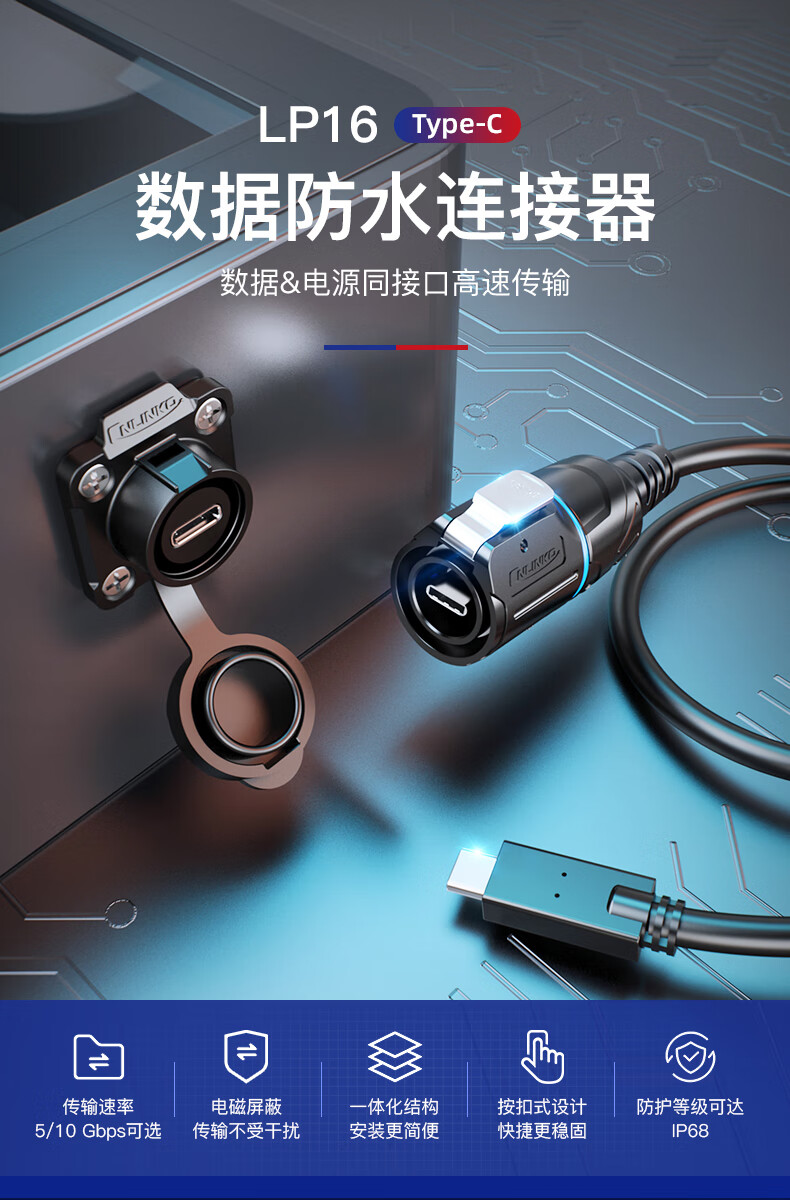 Lingke Electric TYPE-C Aviation Plug Fast Charging Data Transmission Extension Cable LP16 Panel Mount Waterproof Joint Connector TYPE-C GEN2 Socket (0.5m)