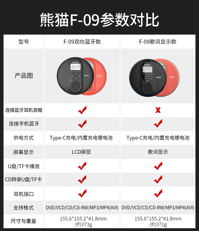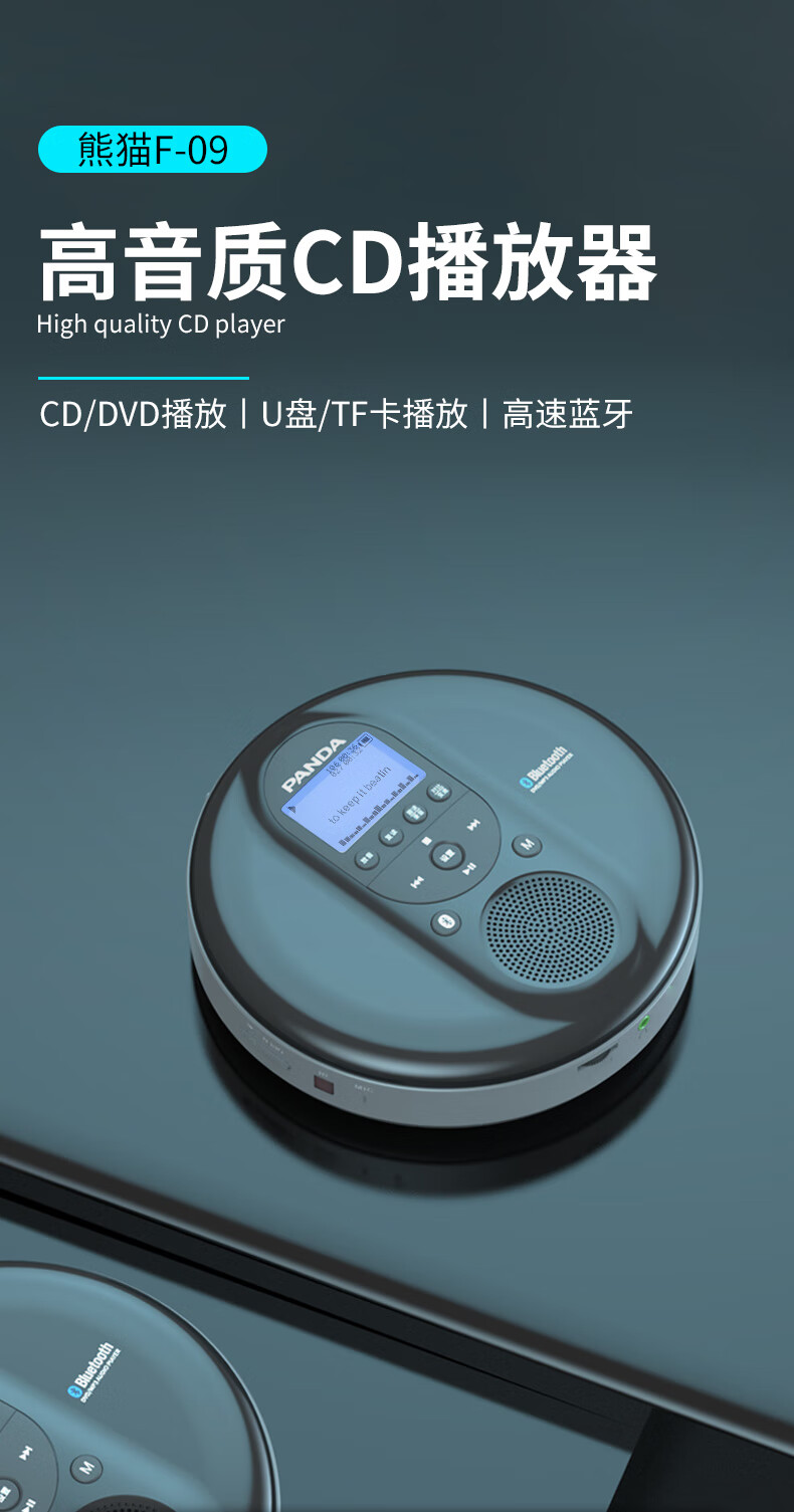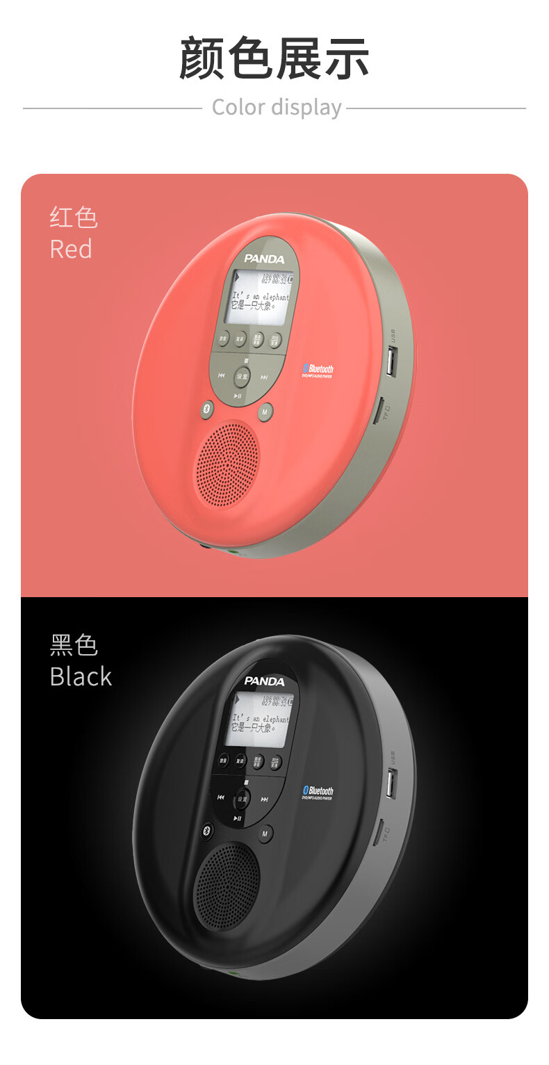 Panda (PANDA) cd player cd player record player album player disc disc walkman audiophile grade retro music bluetooth audio portable small dvd player F09 red can be played externally/supports U disk