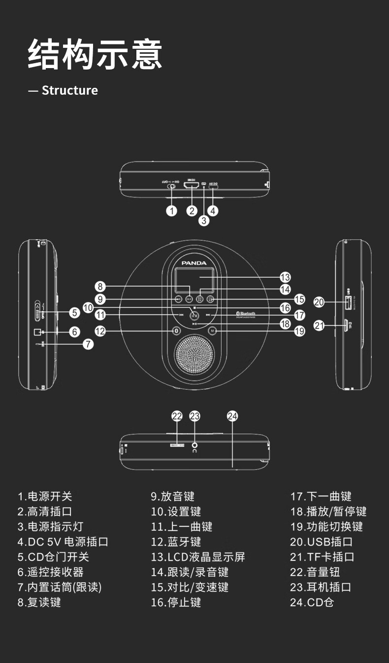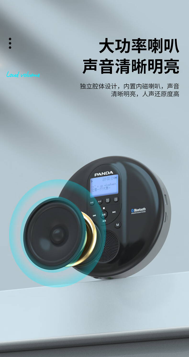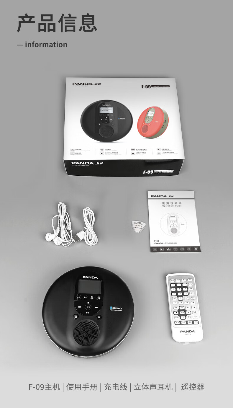 Panda (PANDA) cd player cd player record player album player disc disc walkman audiophile grade retro music bluetooth audio portable small dvd player F09 red can be played externally/supports U disk
