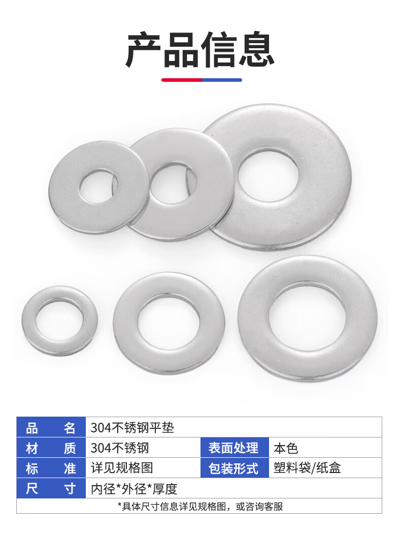 Jinggong (JINGGONG) M8-M10 304 stainless steel flat washer round screw washer metal flat washer thickened and enlarged meson M8*40*2 (10 pieces)