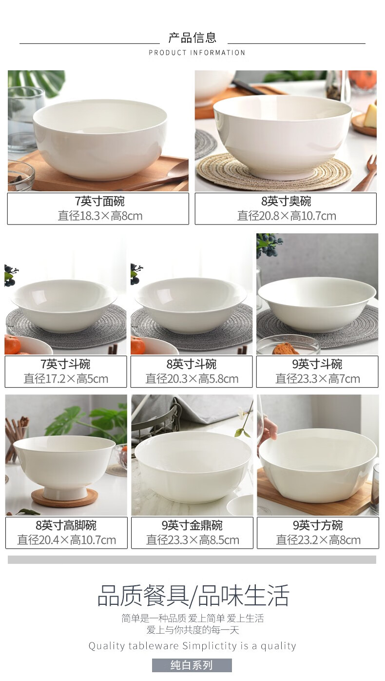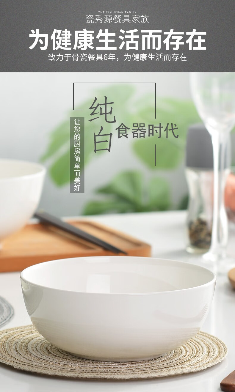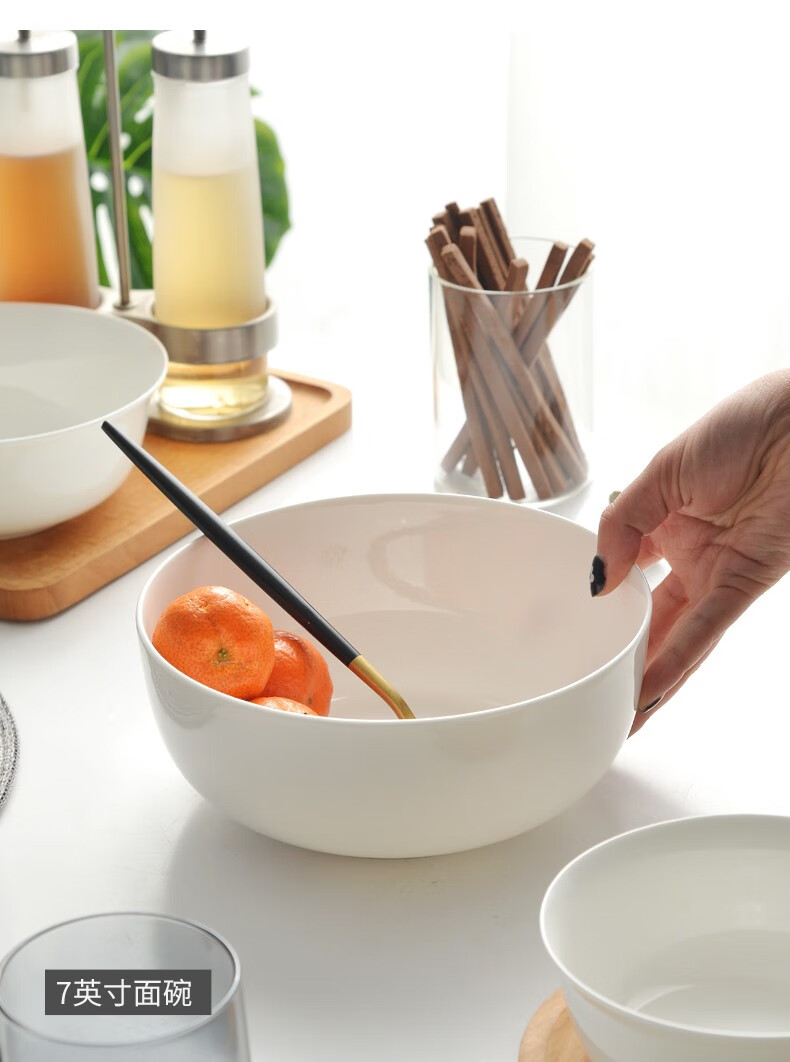 Ci Xiuyuan 7-inch instant noodle bowl ceramic bowl household Korean bone china bowl rice bowl large soup bowl large bowl creative tableware set 7-inch straight mouth noodle bowl (width 18.3cm, height 8cm)