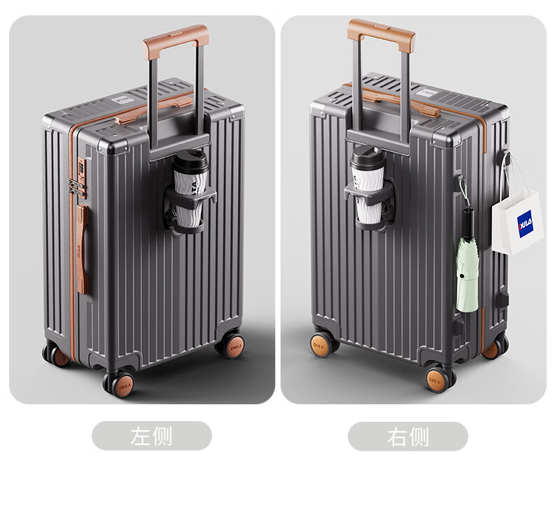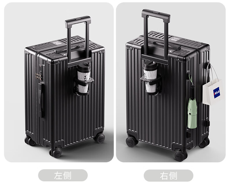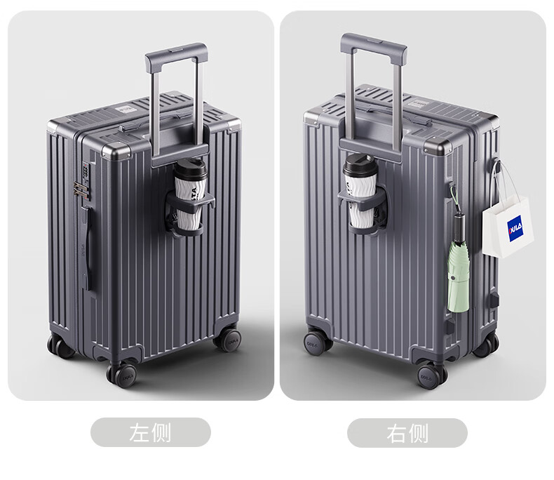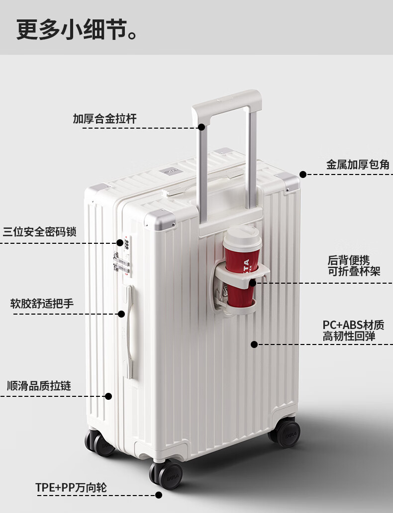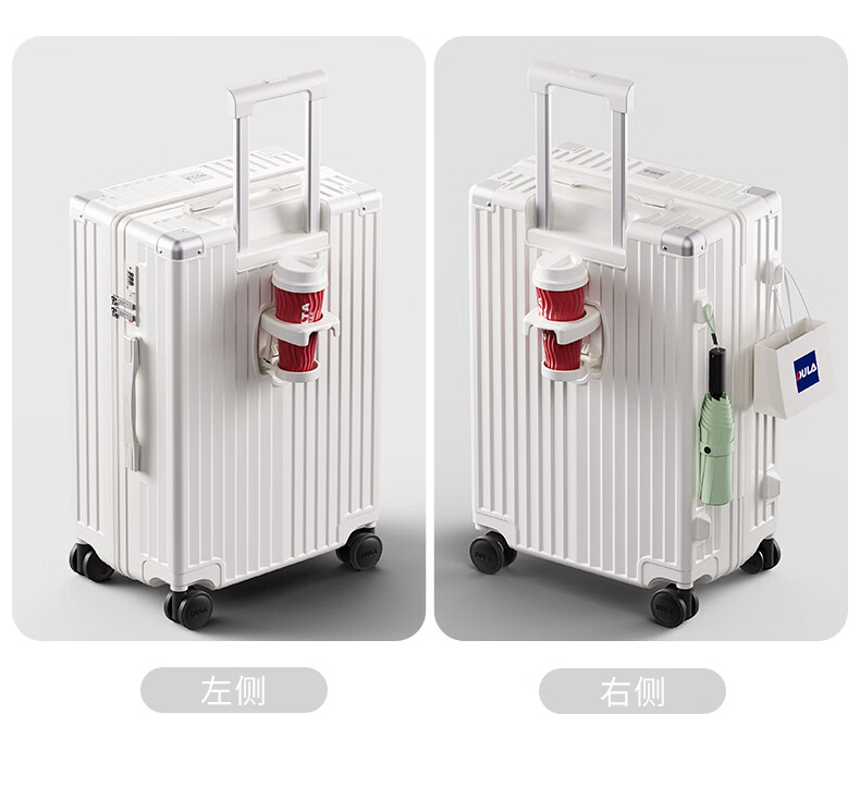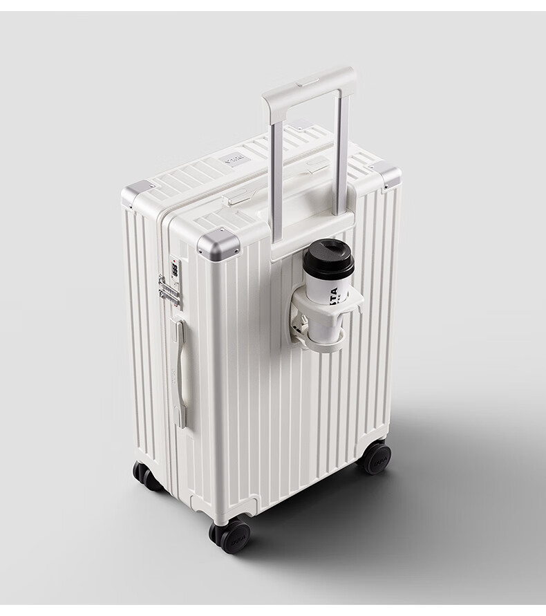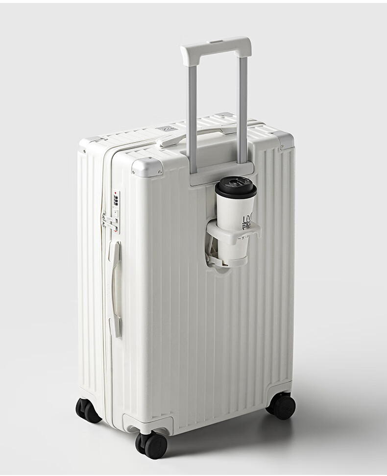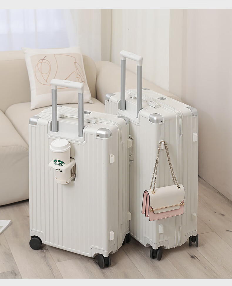 DULA high-looking suitcase with cup holder for male and female students, trolley case with universal wheels, business travel case, boarding case, leather case, Haoyue White - explosion-proof zipper, folding cup holder, 24 inches, checked box - wet and dry lining separated