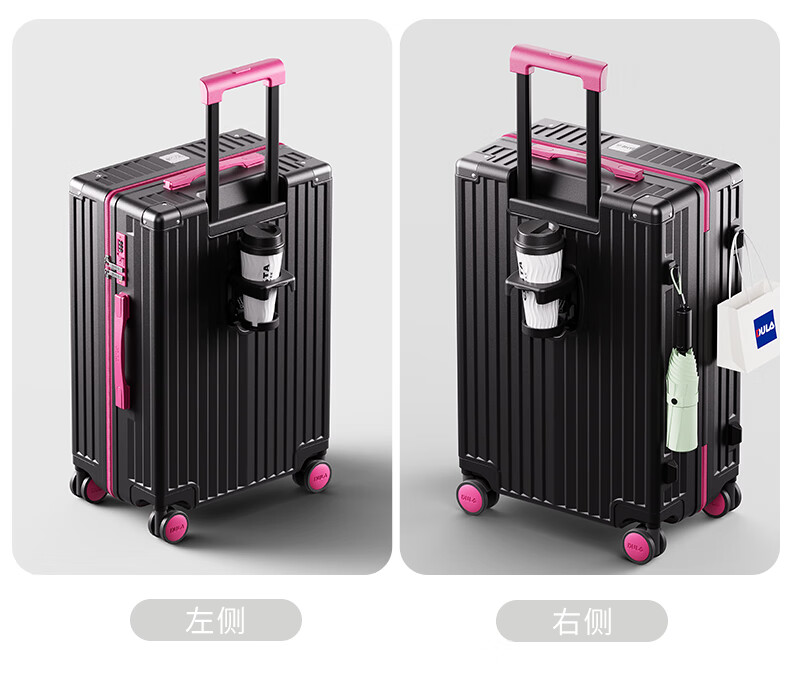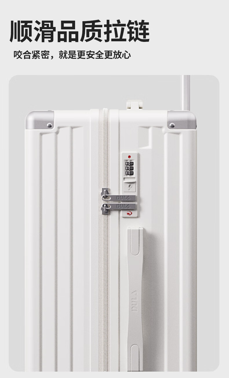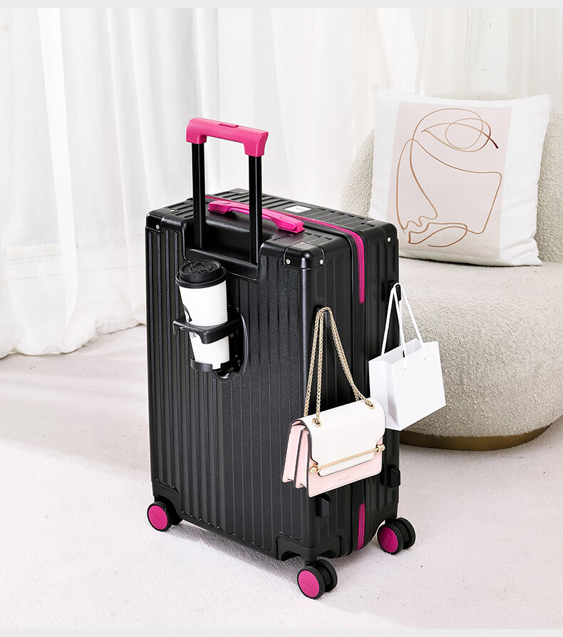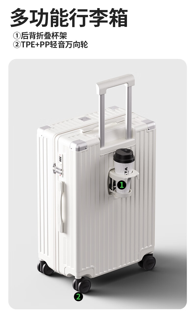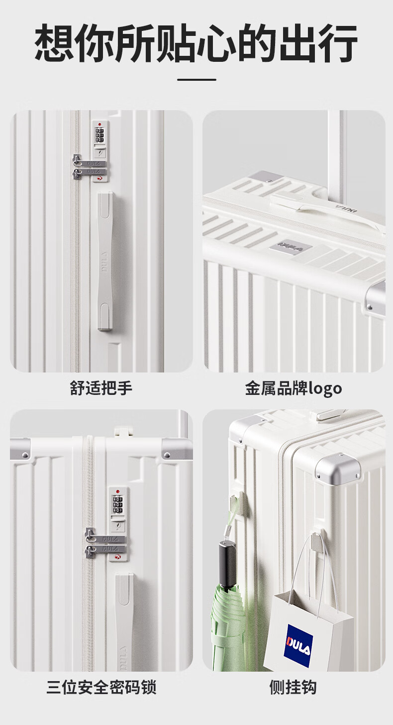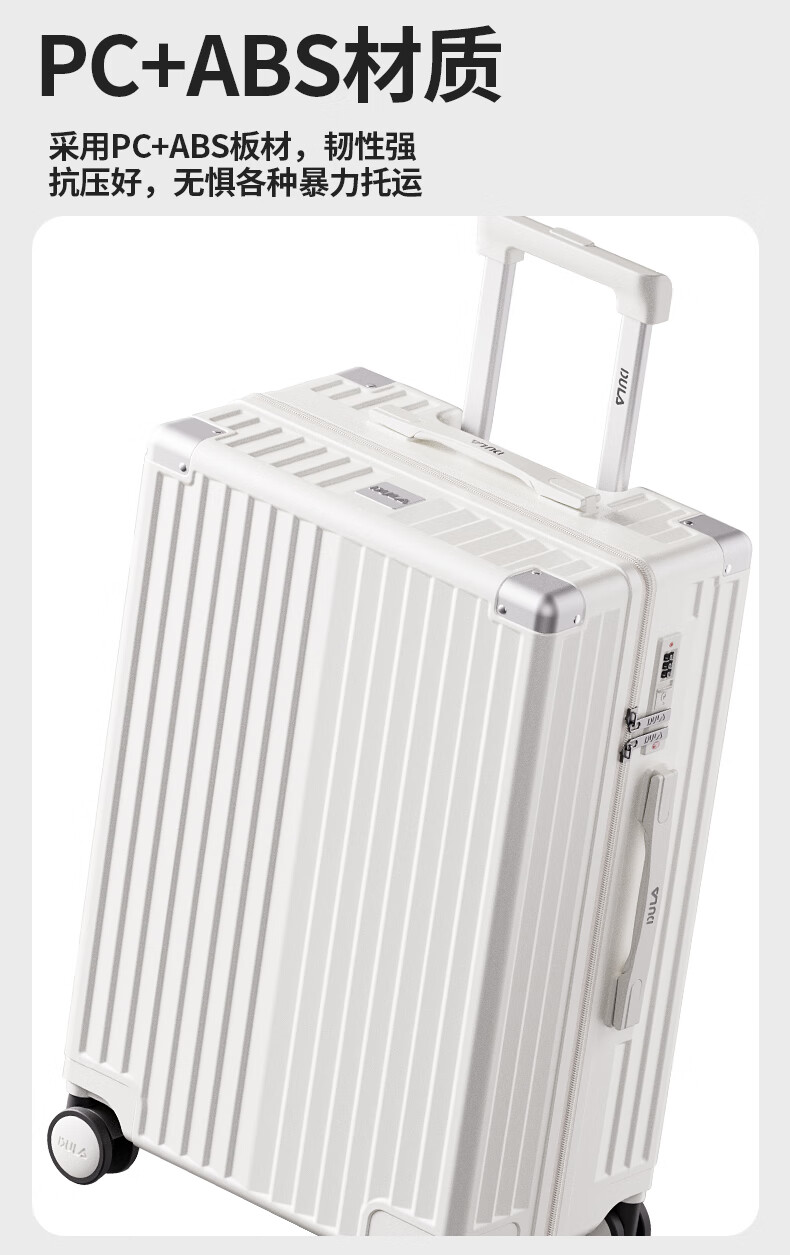 DULA high-looking suitcase with cup holder for male and female students, trolley case with universal wheels, business travel case, boarding case, leather case, Haoyue White - explosion-proof zipper, folding cup holder, 24 inches, checked box - wet and dry lining separated