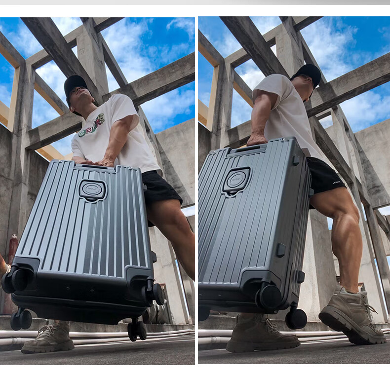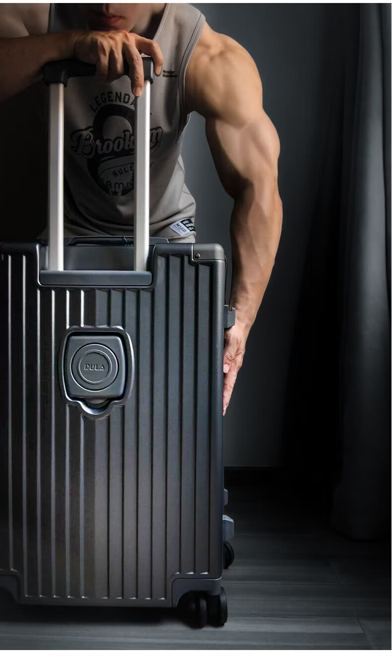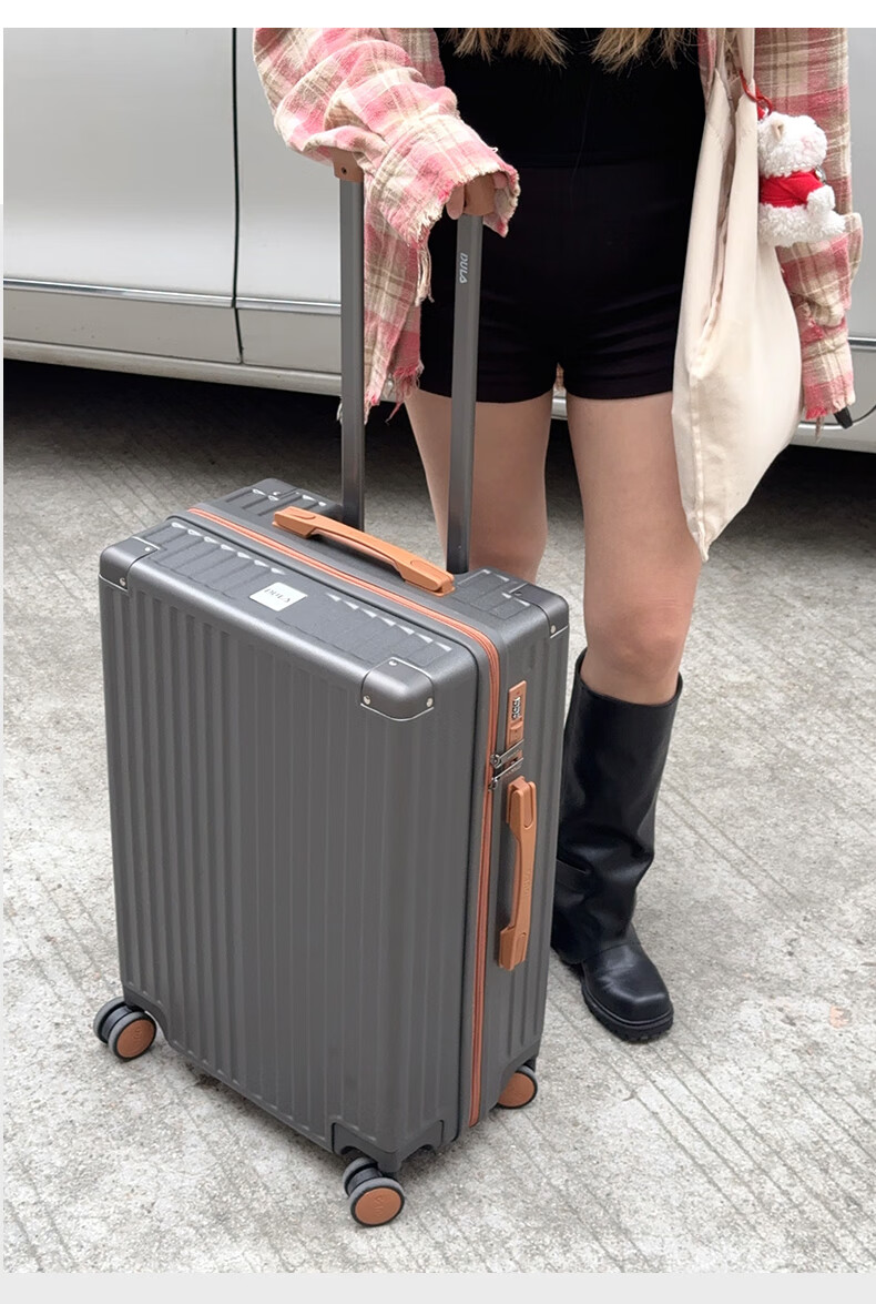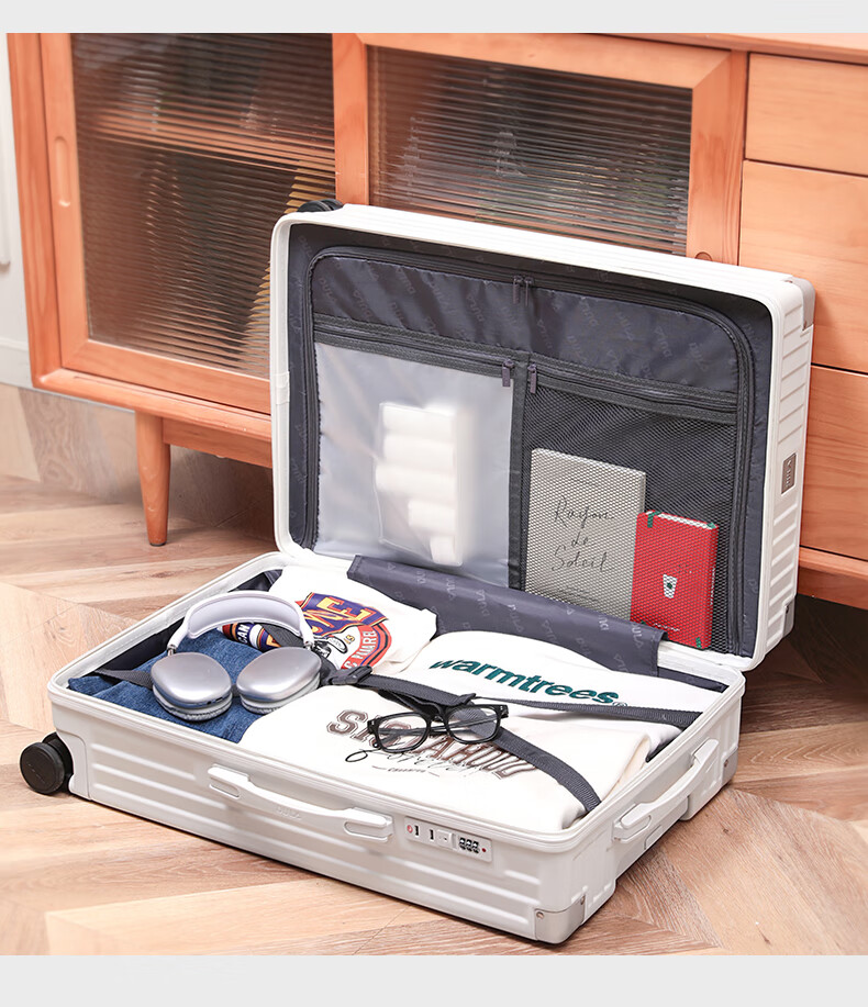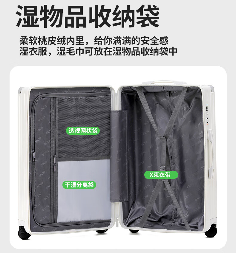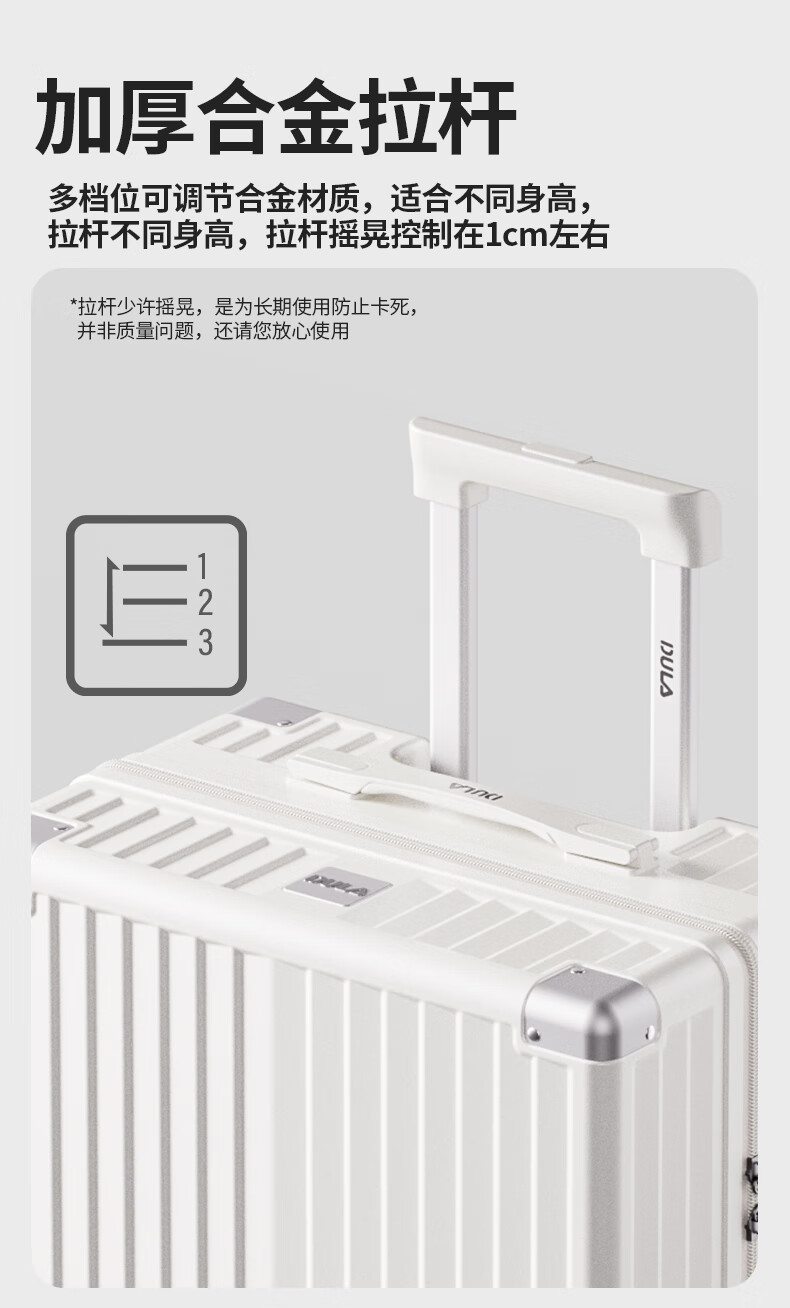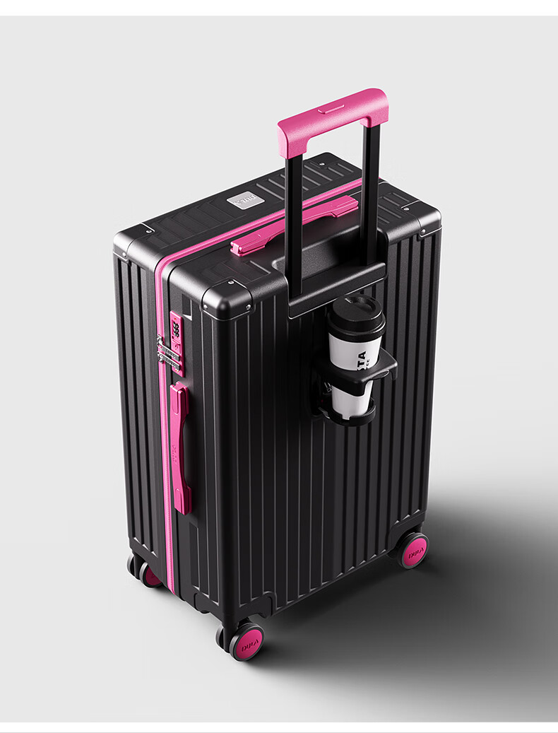 DULA high-looking suitcase with cup holder for male and female students, trolley case with universal wheels, business travel case, boarding case, leather case, Haoyue White - explosion-proof zipper, folding cup holder, 24 inches, checked box - wet and dry lining separated