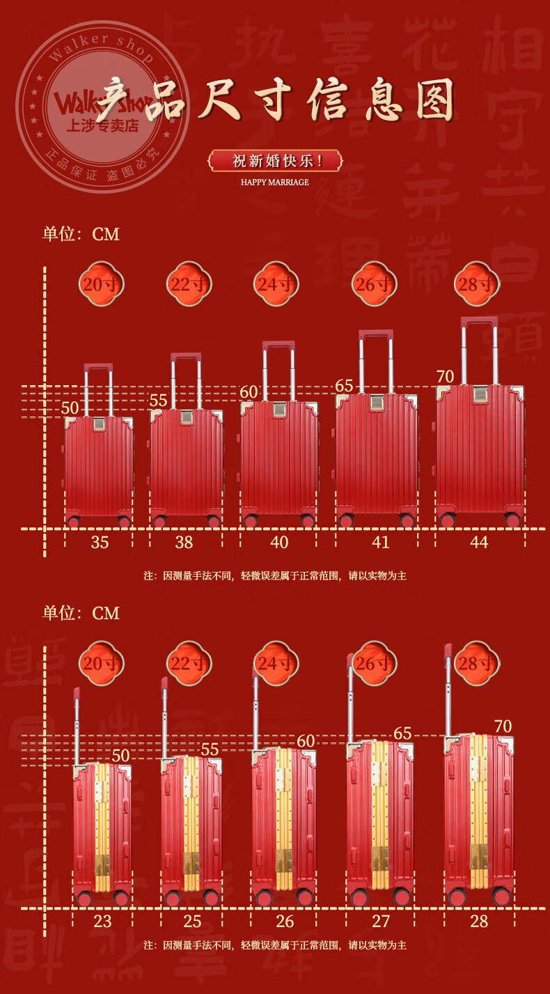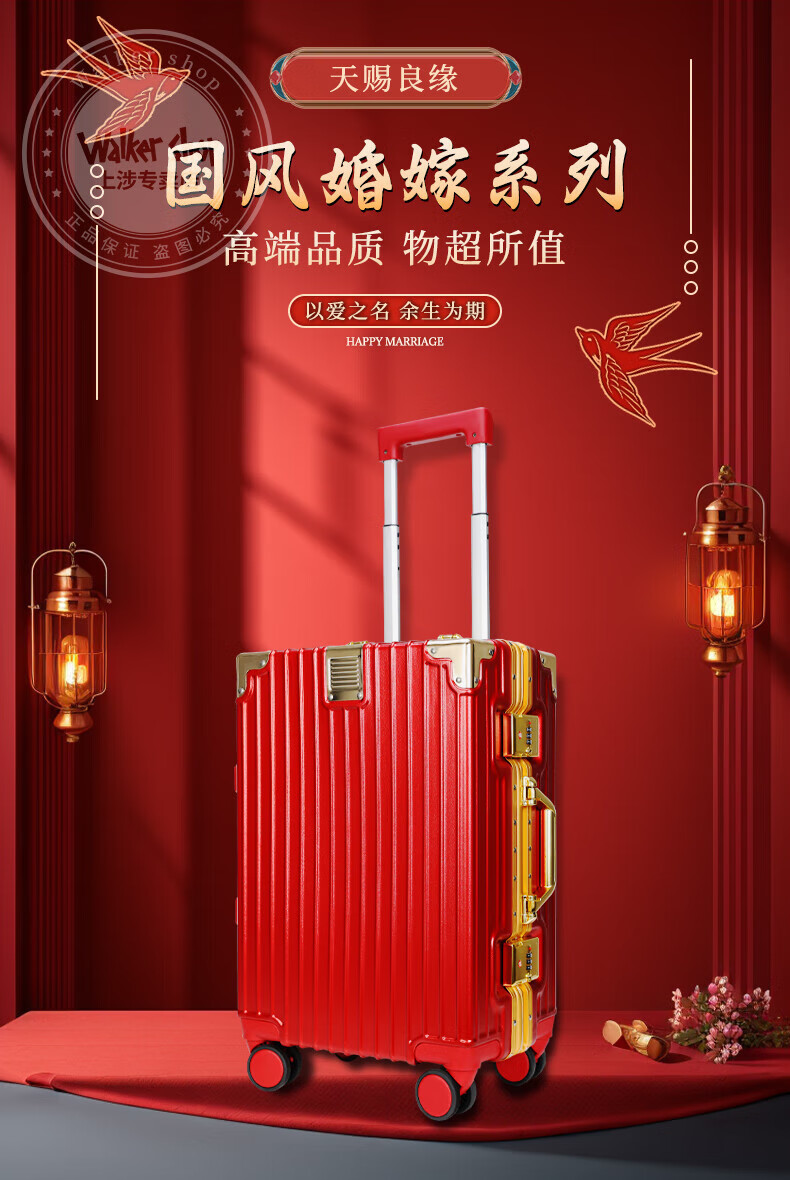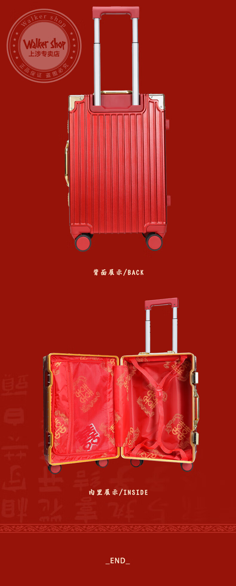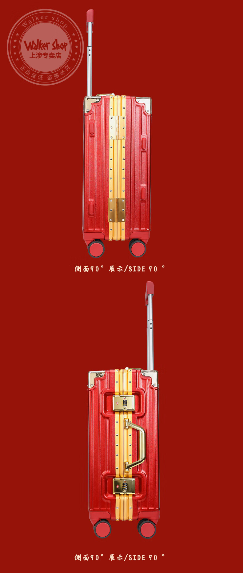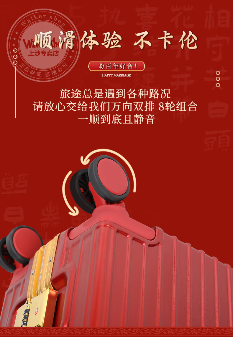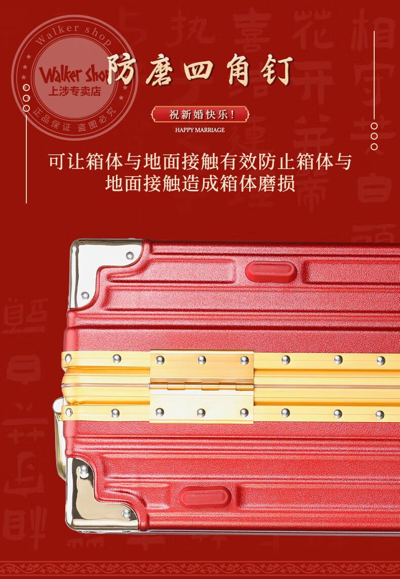 Walker Shop Wedding Luggage Bridal Dowry Box Dowry Trolley Box Wedding Password Aluminum Frame Suitcase Women's Red Leather Box Red 22 inches