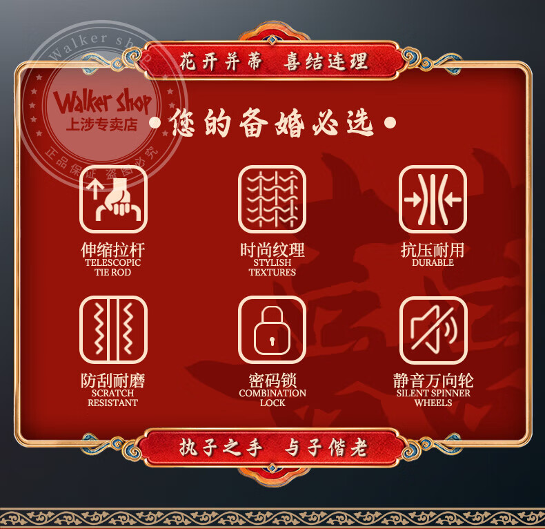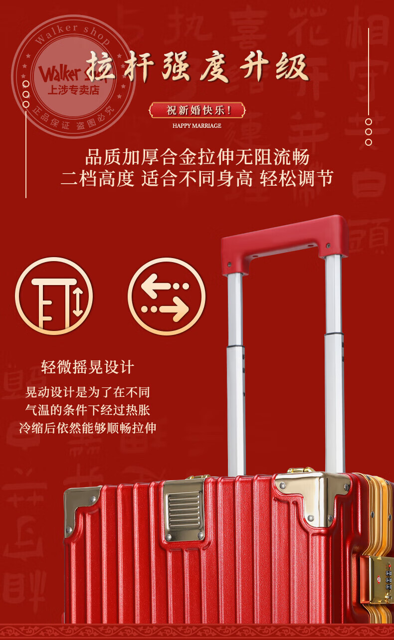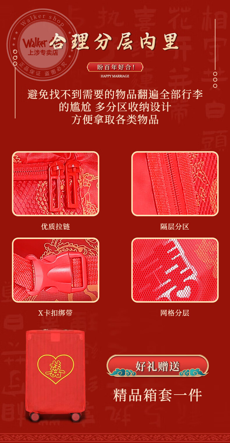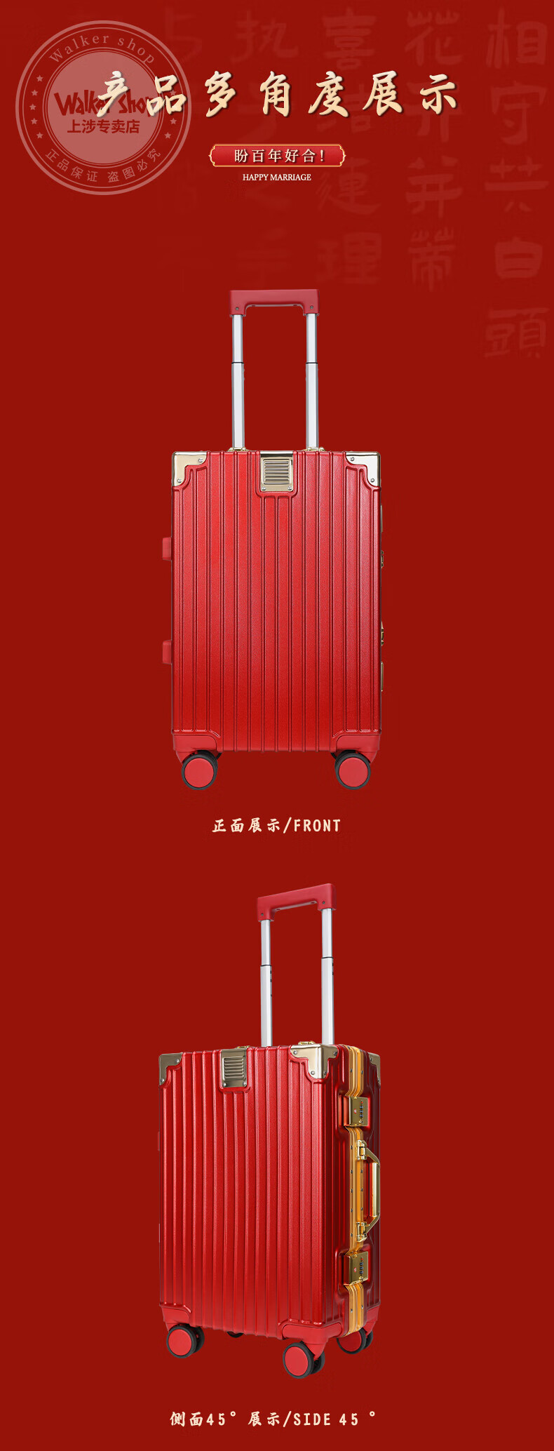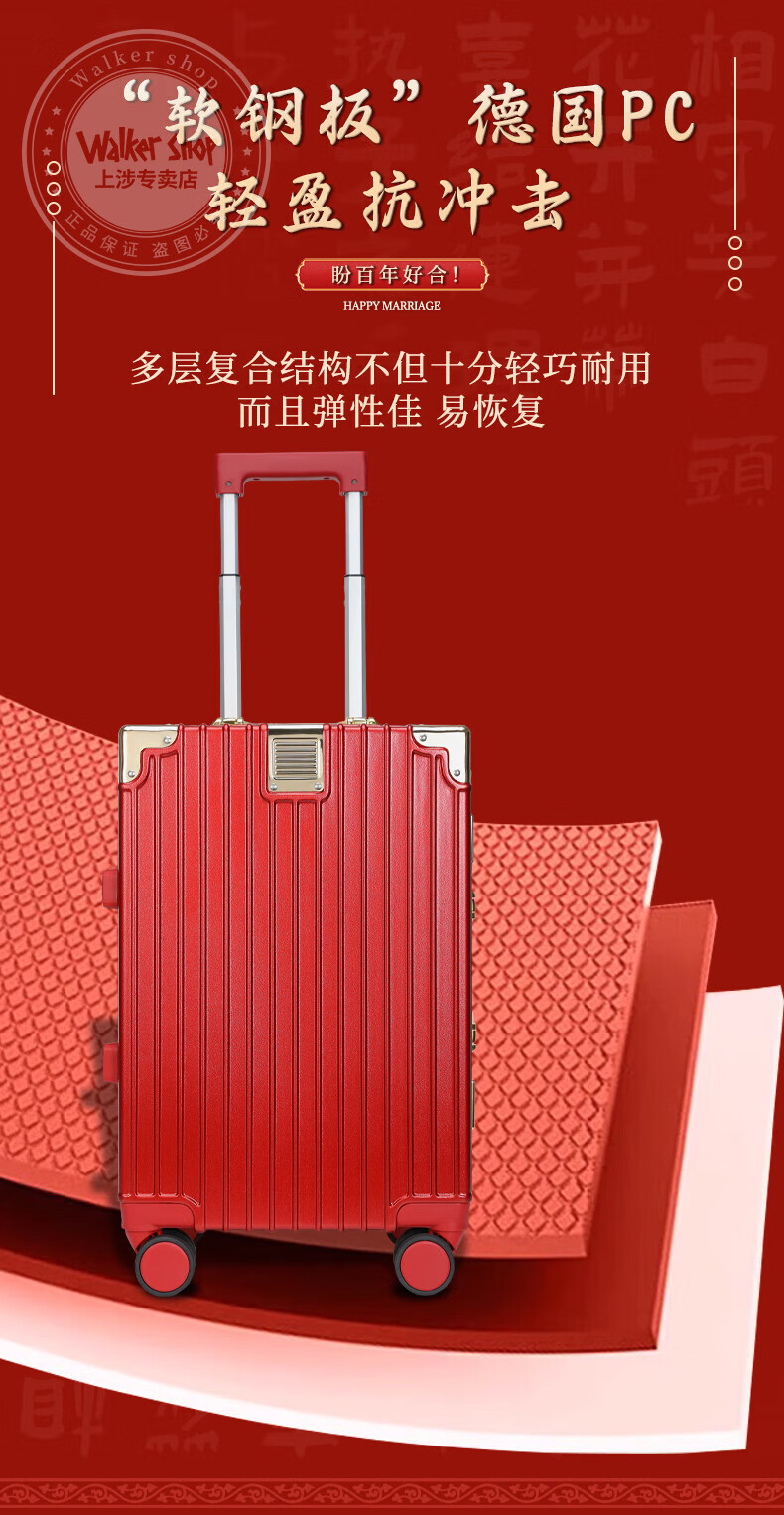 Walker Shop Wedding Luggage Bridal Dowry Box Dowry Trolley Box Wedding Password Aluminum Frame Suitcase Women's Red Leather Box Red 22 inches