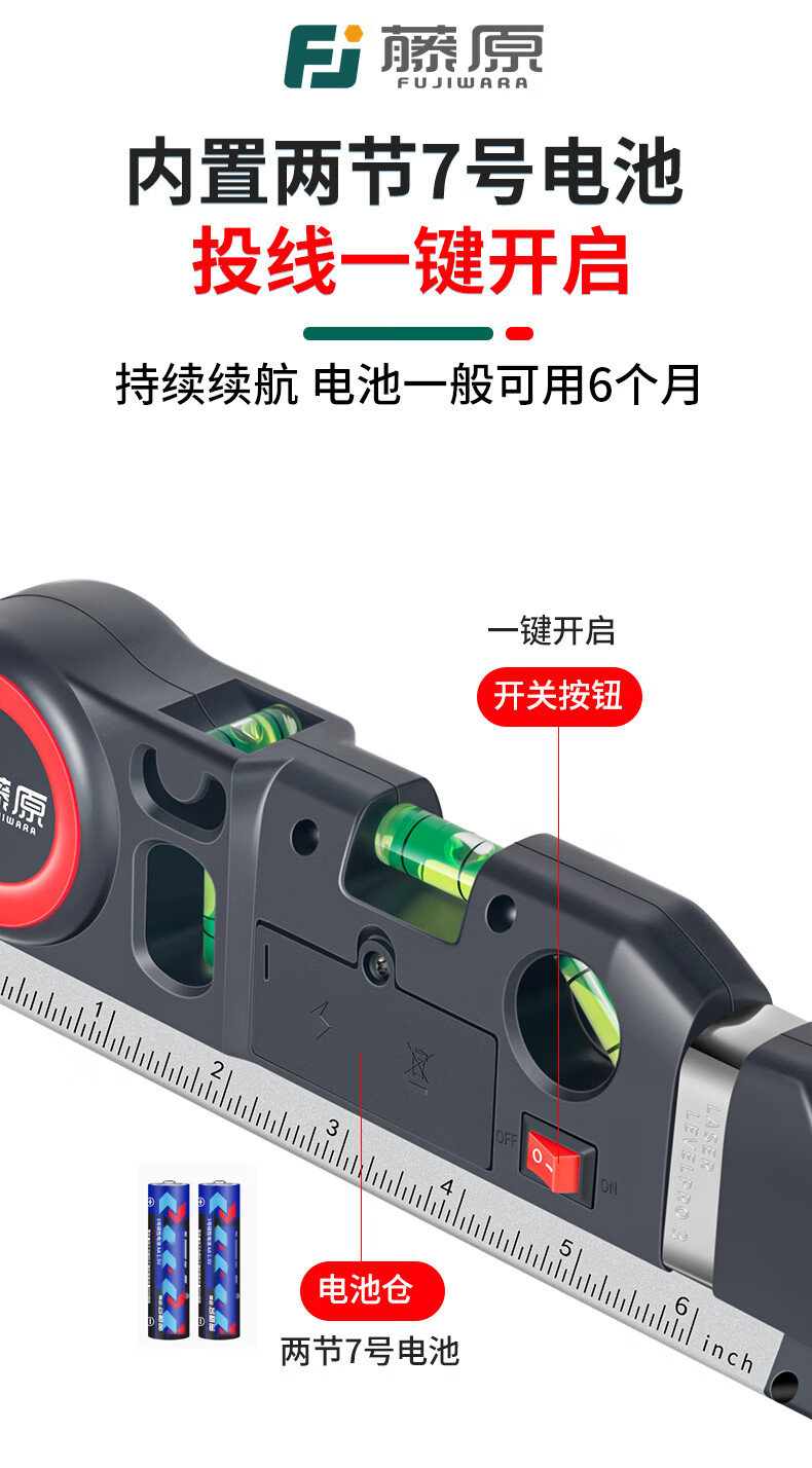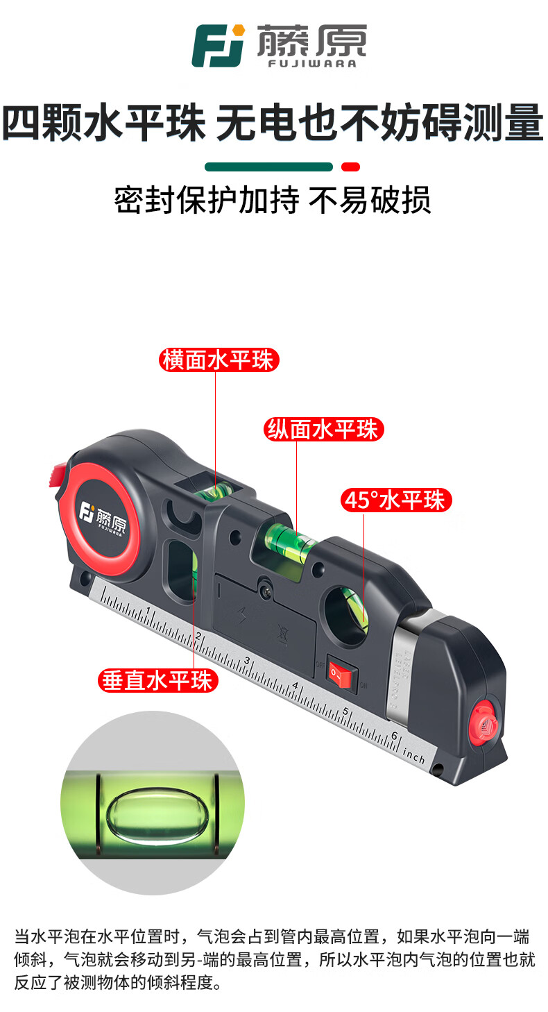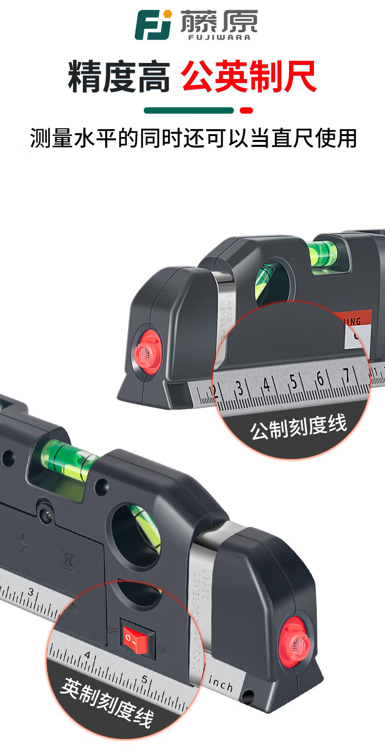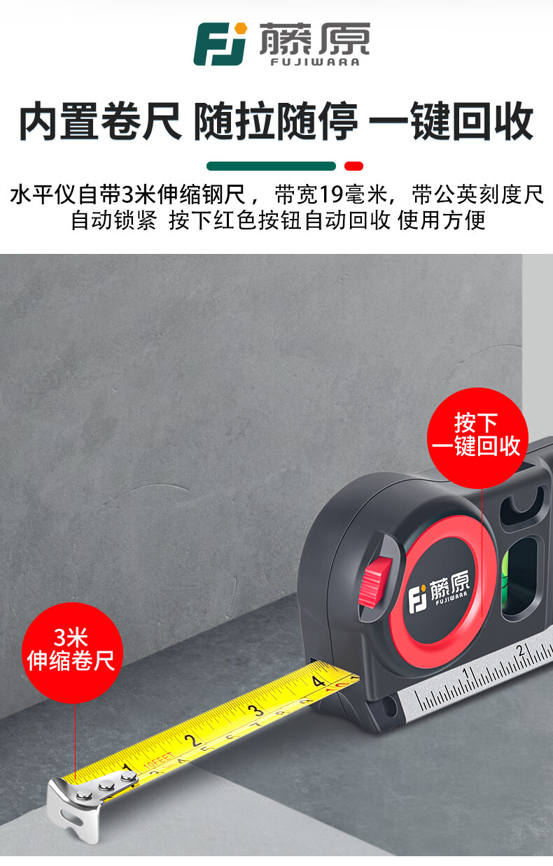 Fujiwara laser level, infrared line marker with tape measure, high-precision multi-line caster level, four-in-one laser level (new upgrade)