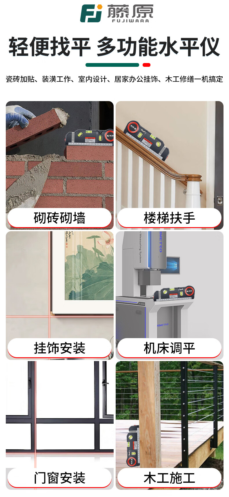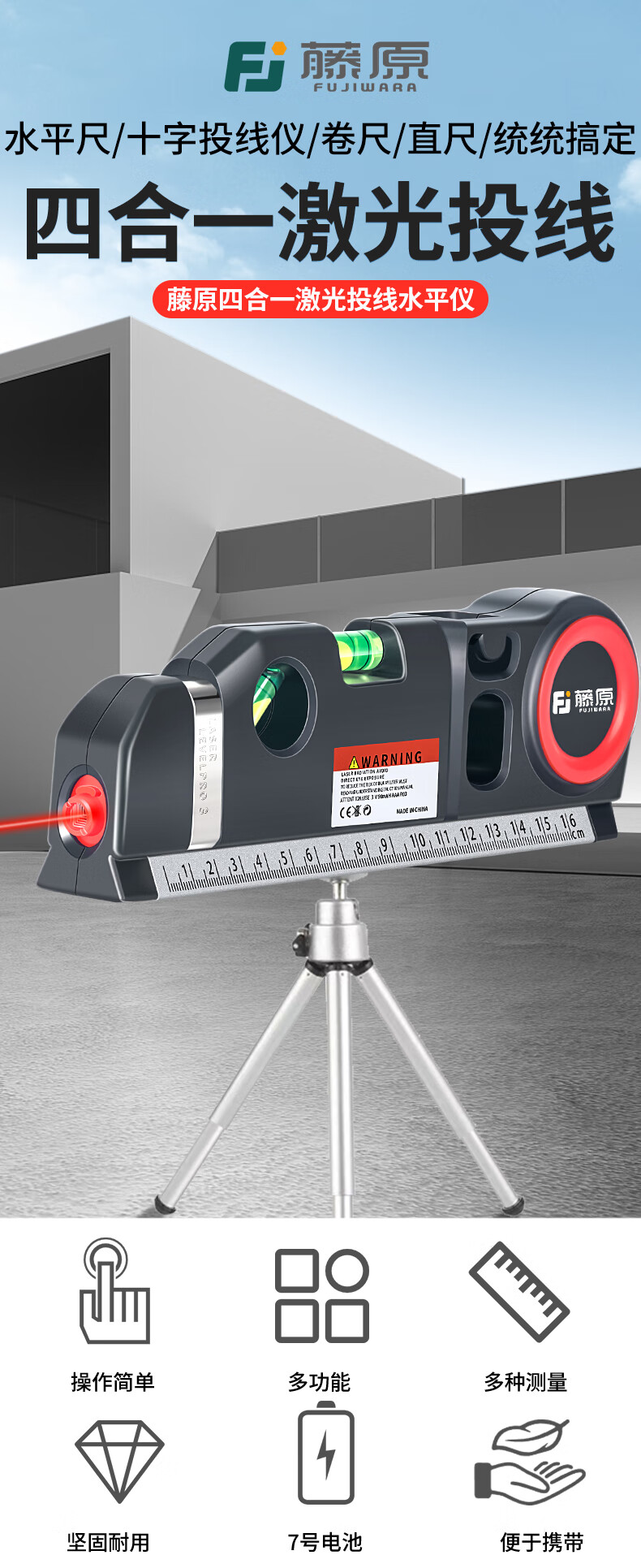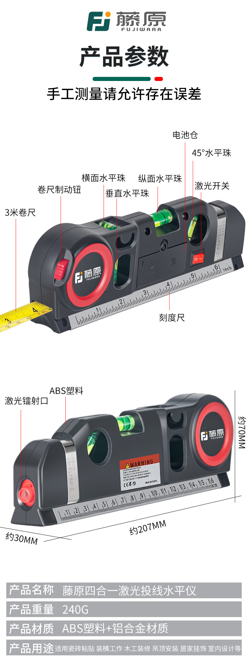 Fujiwara laser level, infrared line marker with tape measure, high-precision multi-line caster level, four-in-one laser level (new upgrade)