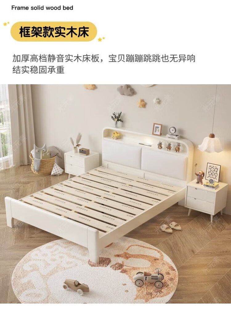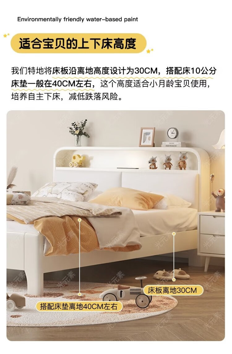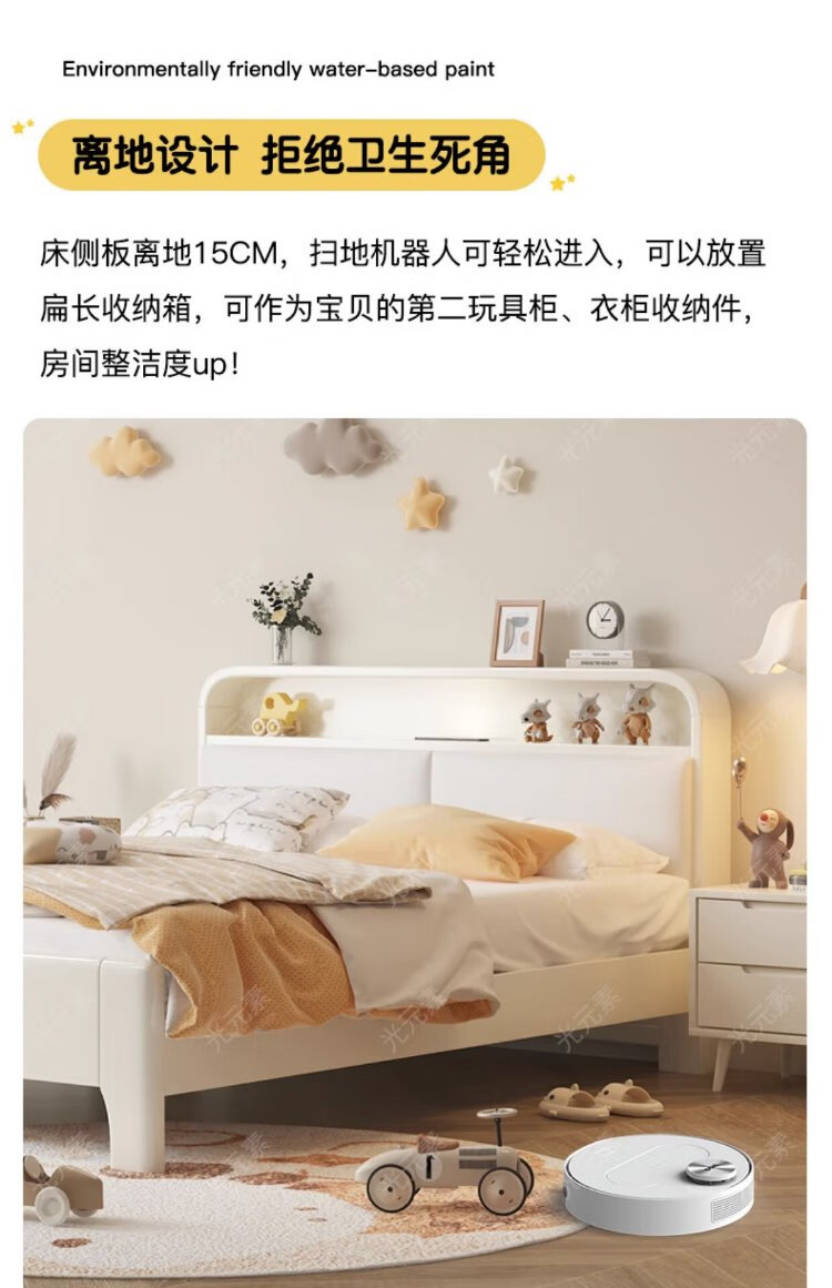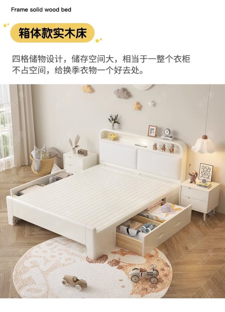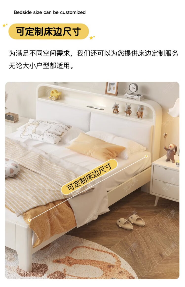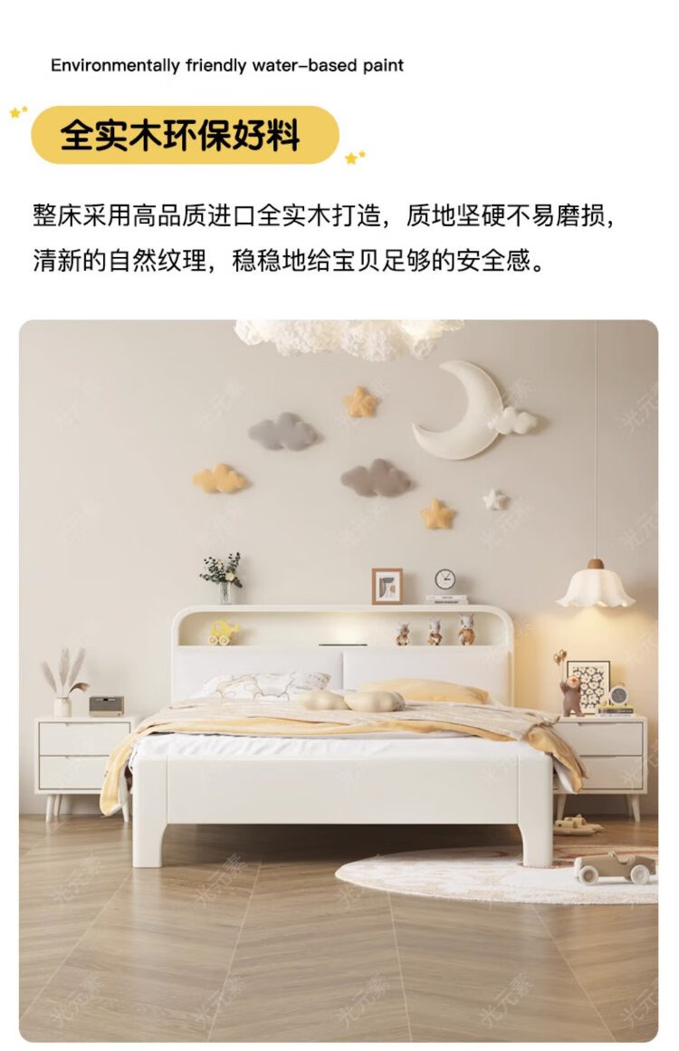 OCALSTAR simple and modern girl's white solid wood children's bed princess teen bed bedroom with night light storage bed bed + 10cm environmentally friendly brown mat (sleeping feeling is firm) 1.5*2 meters (frame type)