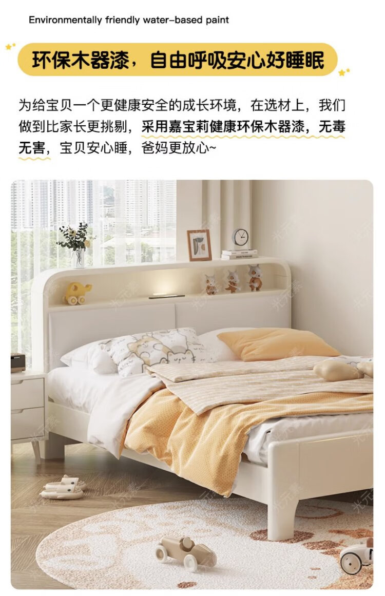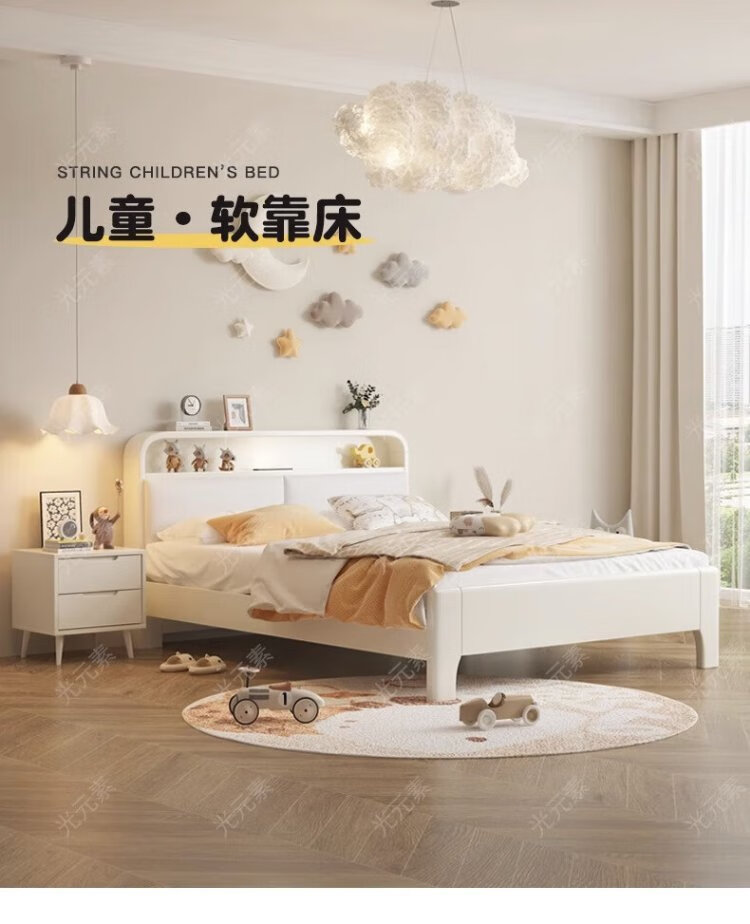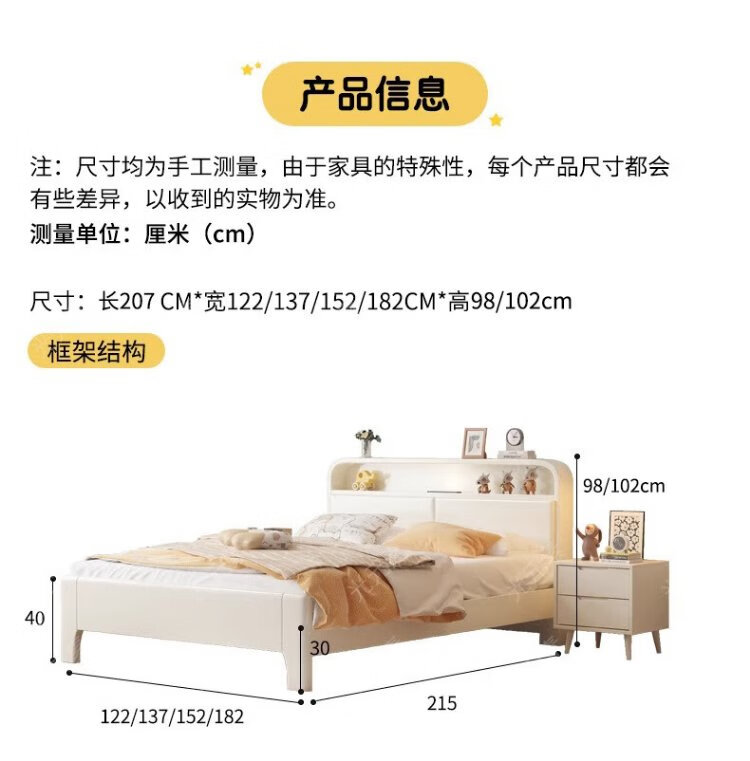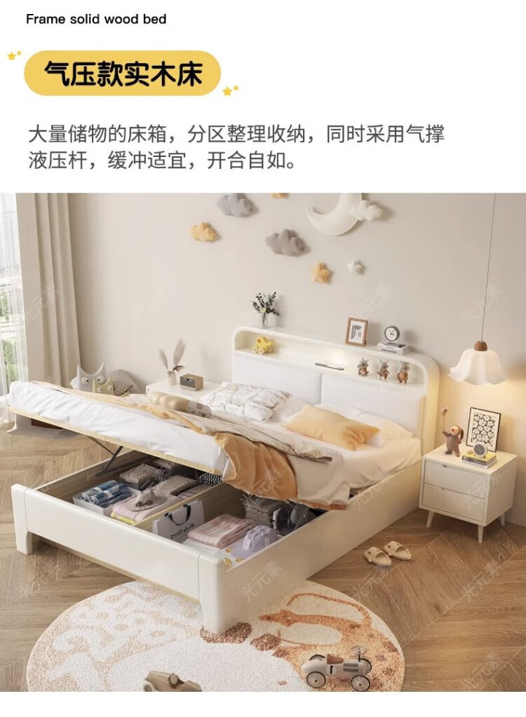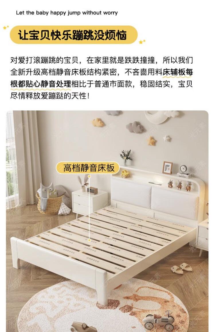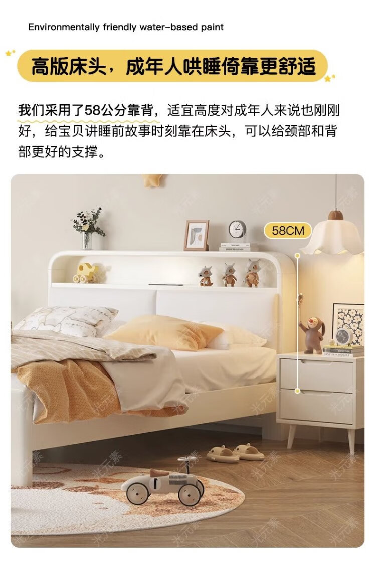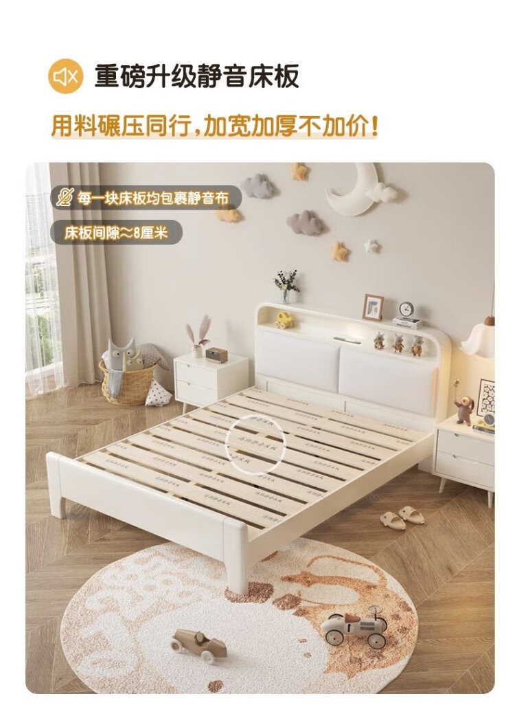 OCALSTAR simple and modern girl's white solid wood children's bed princess teen bed bedroom with night light storage bed bed + 10cm environmentally friendly brown mat (sleeping feeling is firm) 1.5*2 meters (frame type)