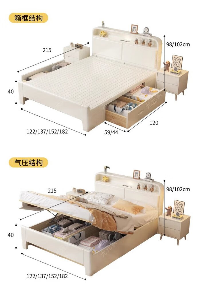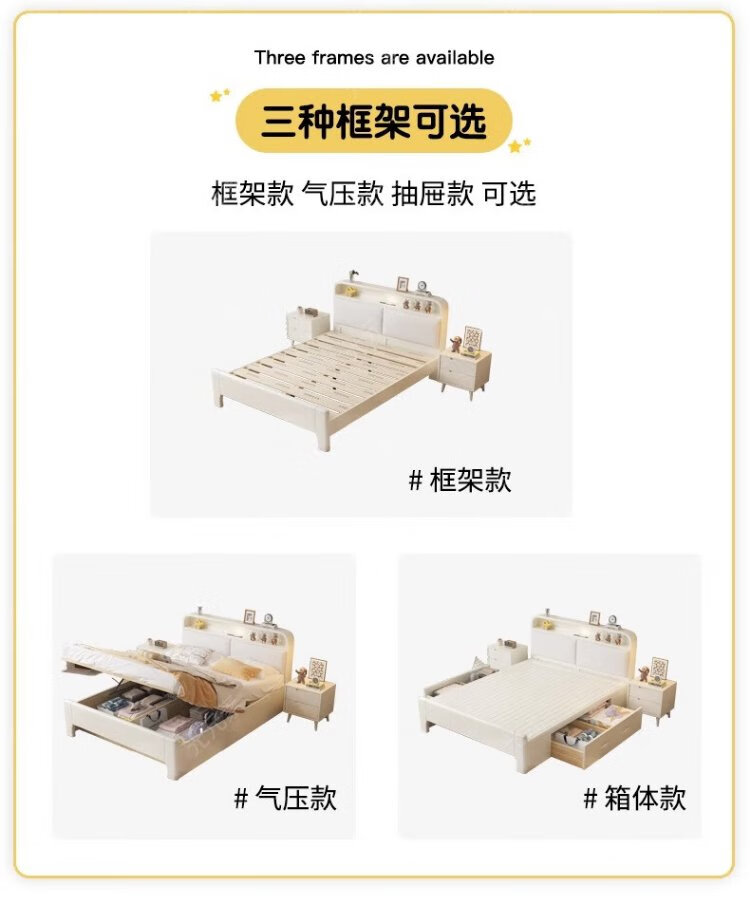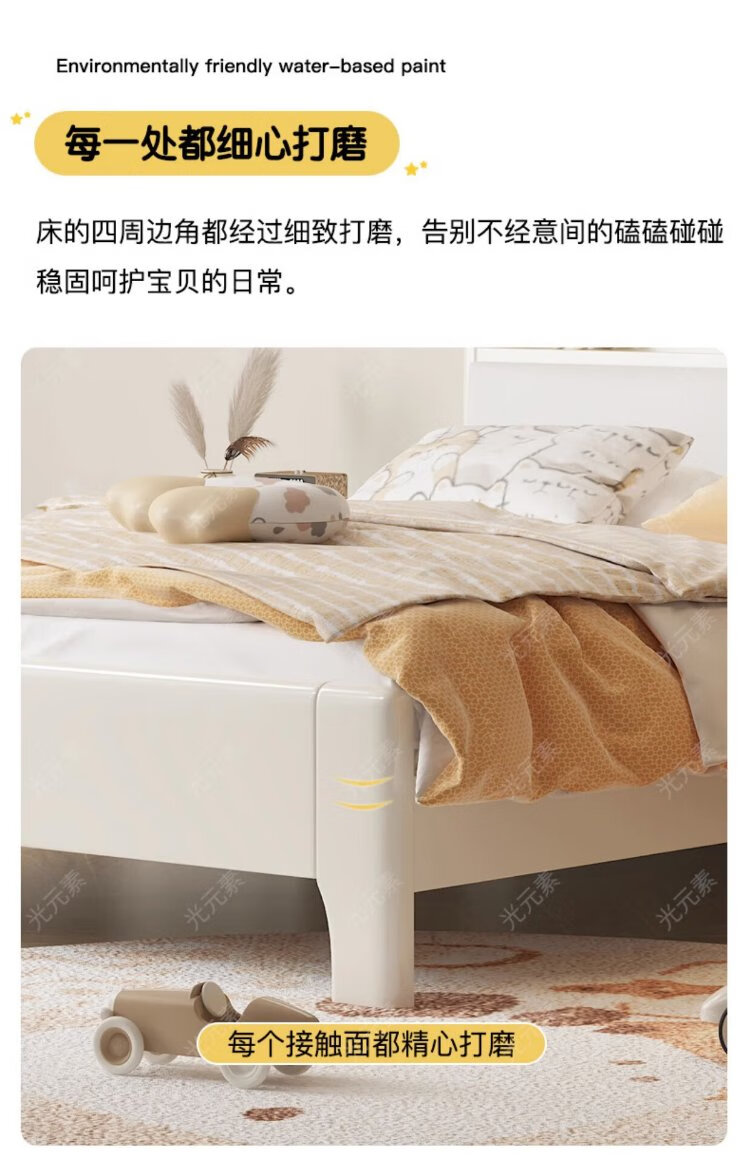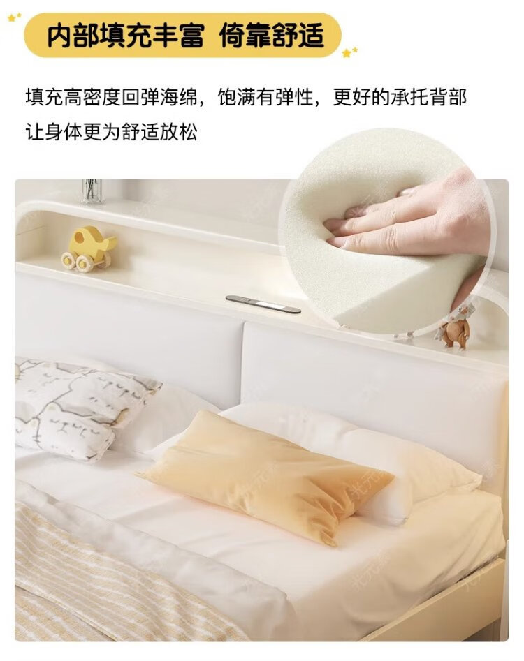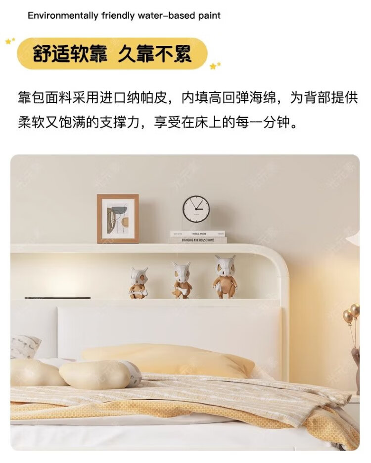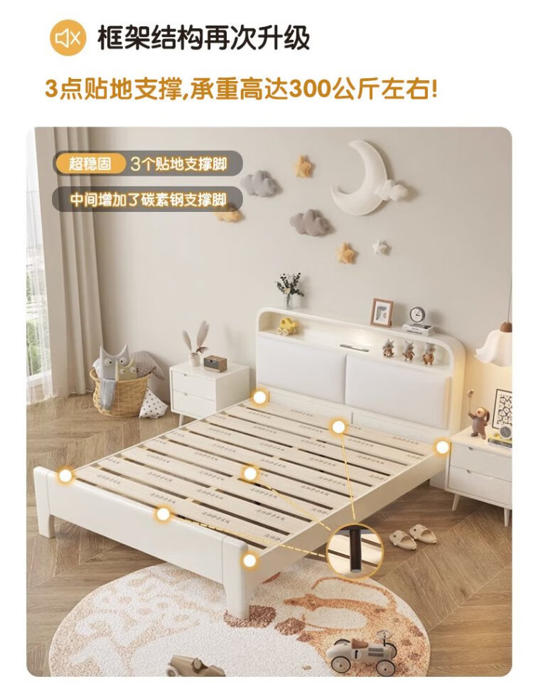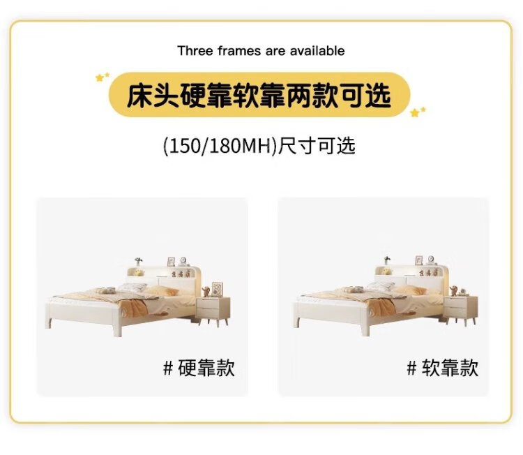 OCALSTAR simple and modern girl's white solid wood children's bed princess teen bed bedroom with night light storage bed bed + 10cm environmentally friendly brown mat (sleeping feeling is firm) 1.5*2 meters (frame type)