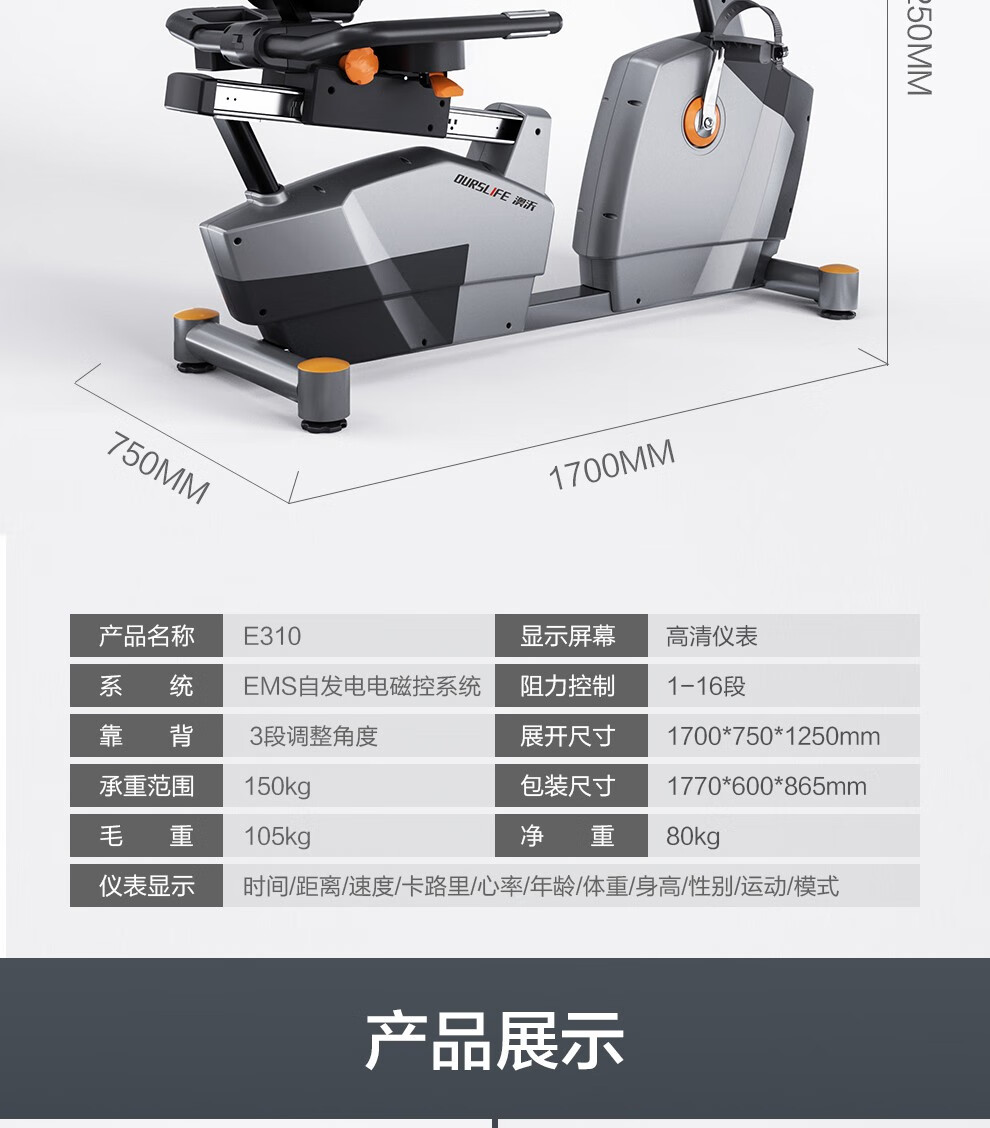 OURSLIFE commercial exercise bike B310 recumbent bicycle magnetically controlled exercise bike for the gym