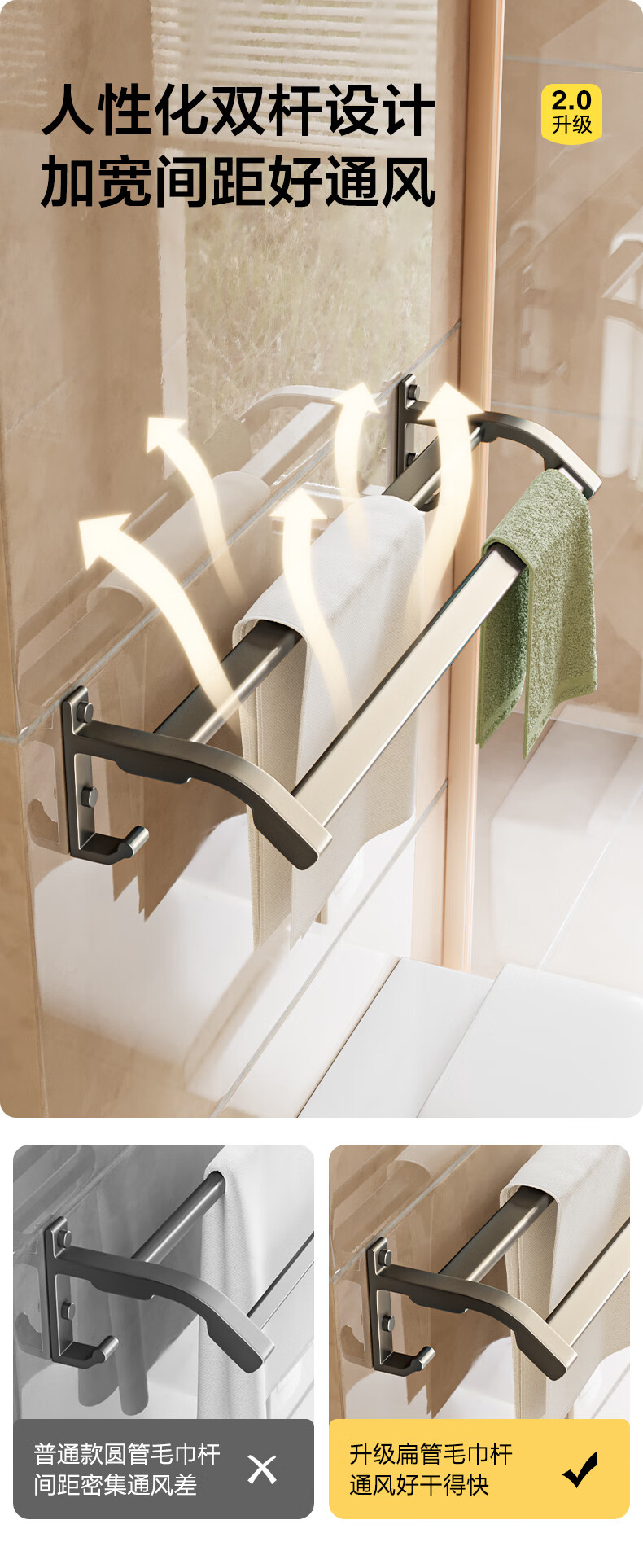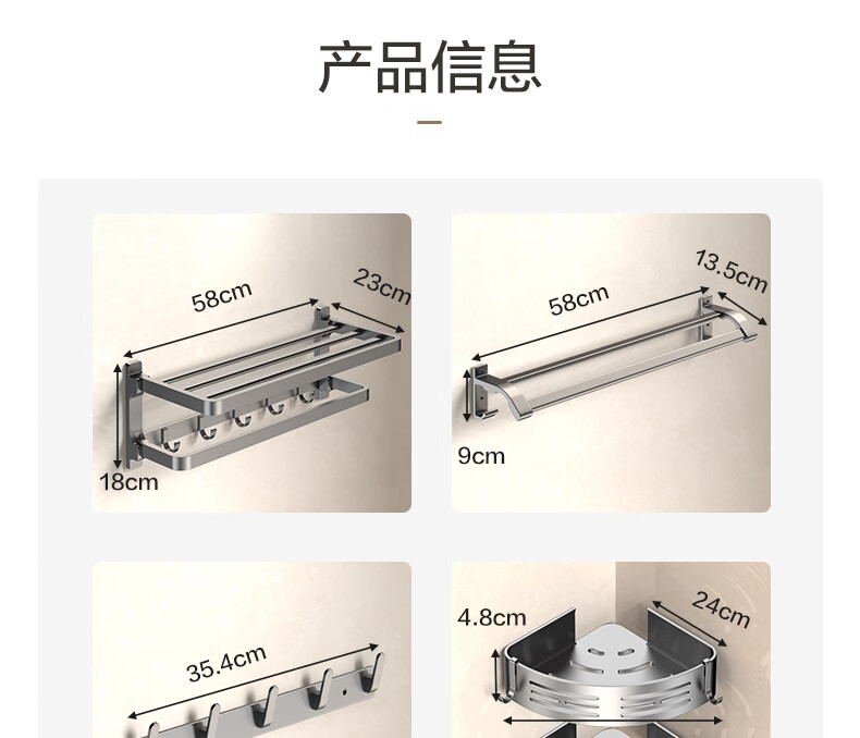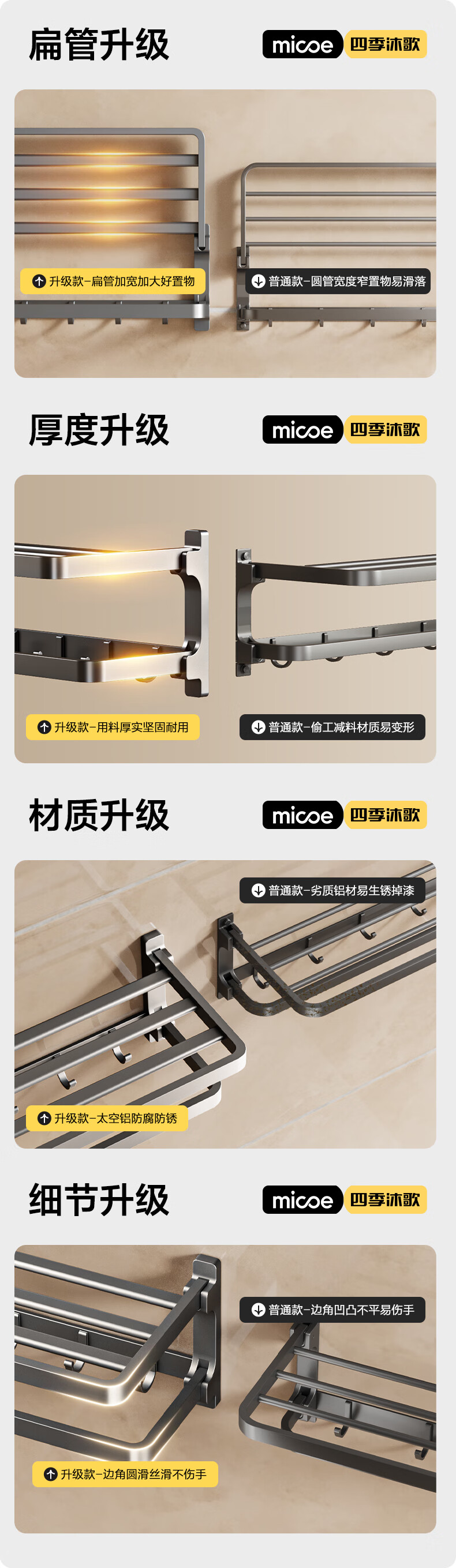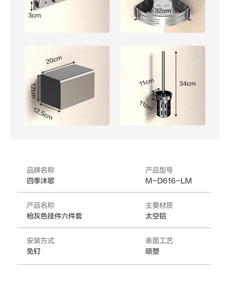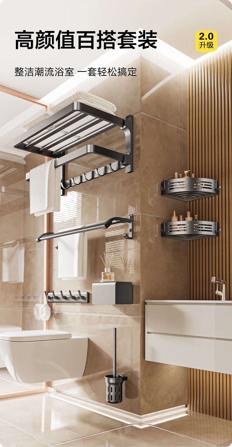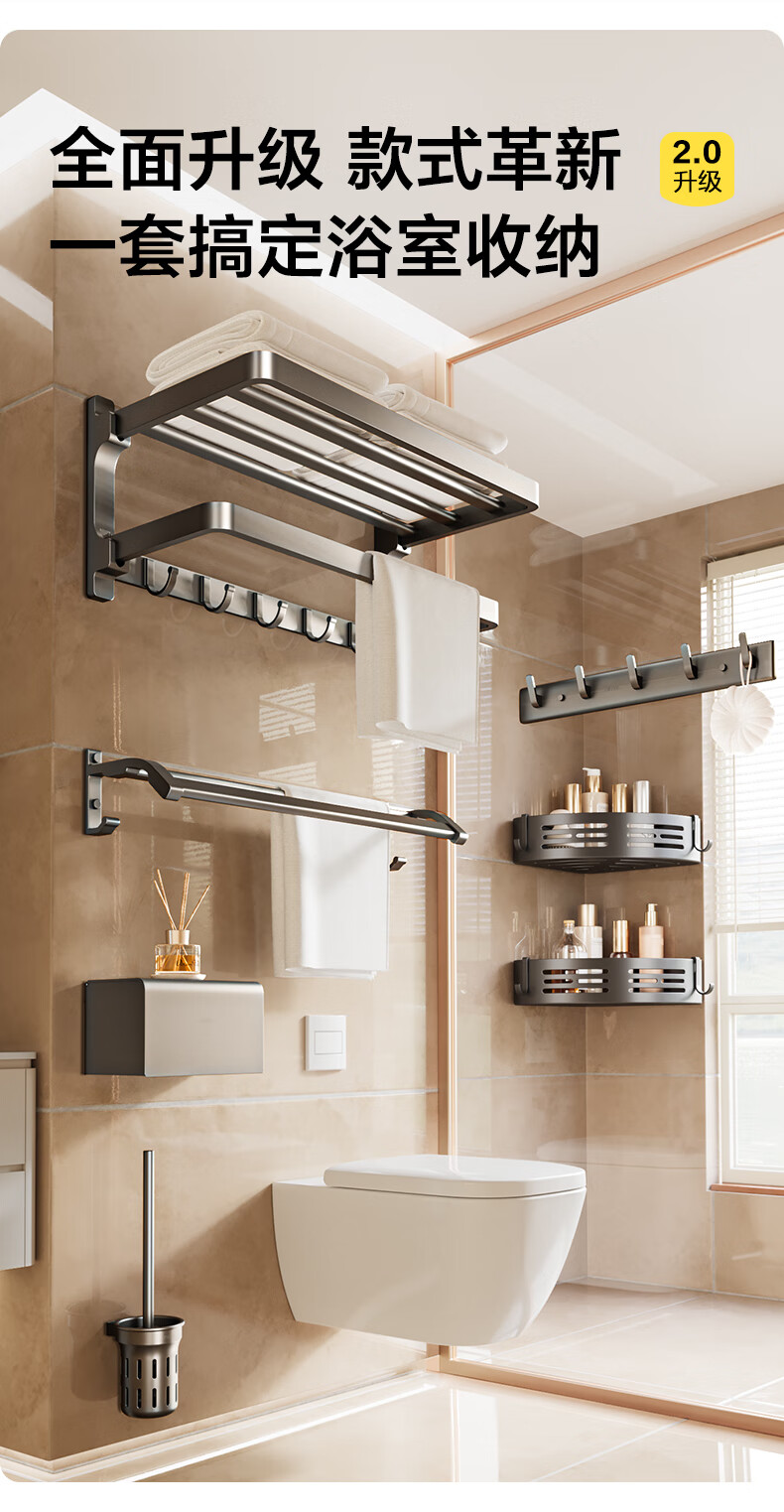 Four Seasons Muge (MICOE) Gun Gray Space Aluminum Towel Rack Bathroom No-Punch Bath Towel Rack Bathroom Bathroom Hardware Pendant Set Ultimate Style-Gun Gray Six-piece Set (Punch/No Punch)