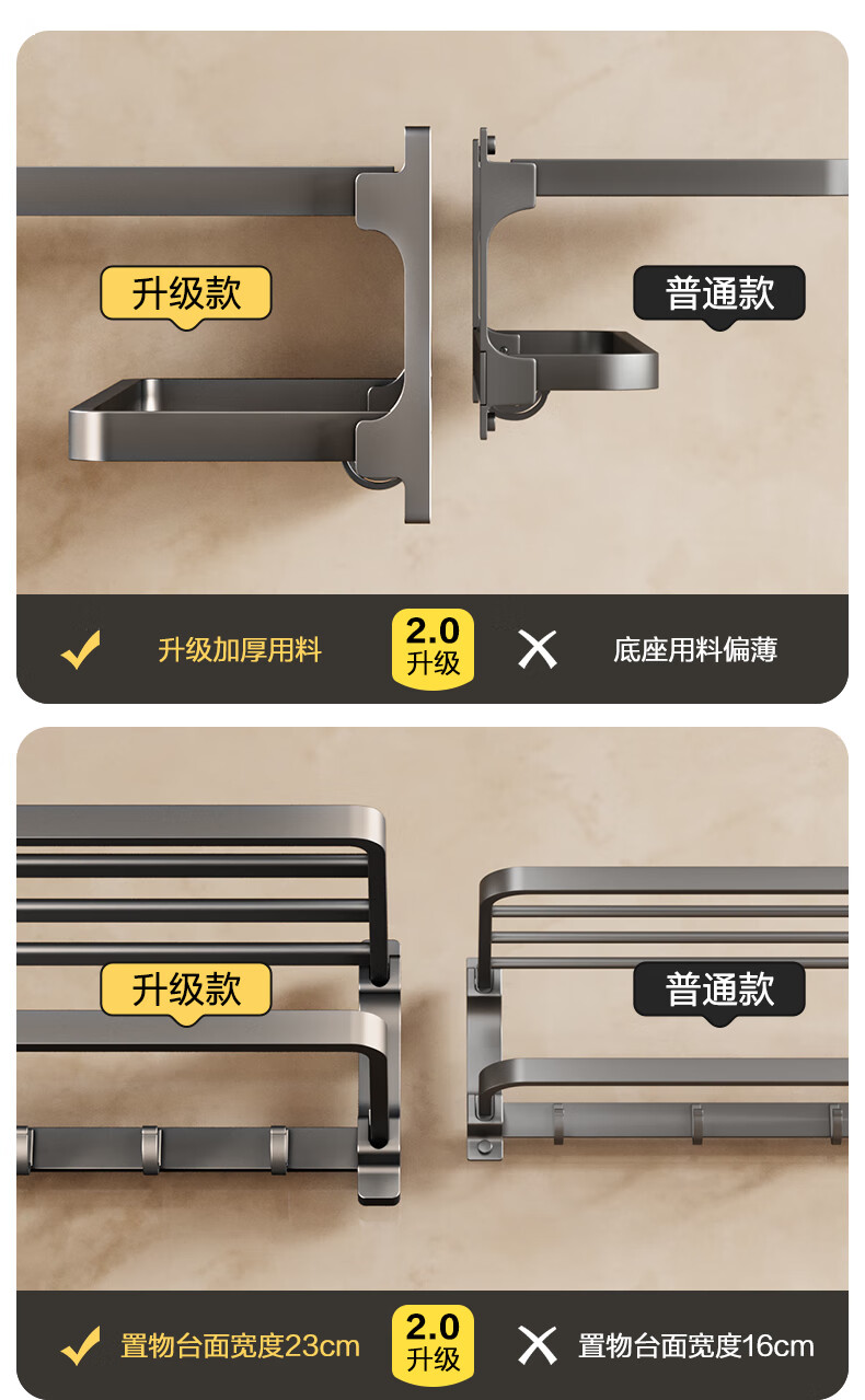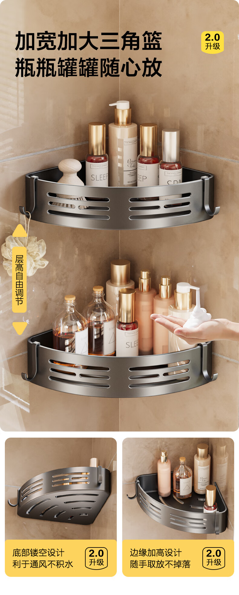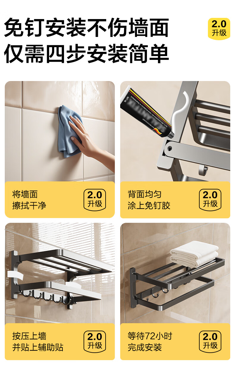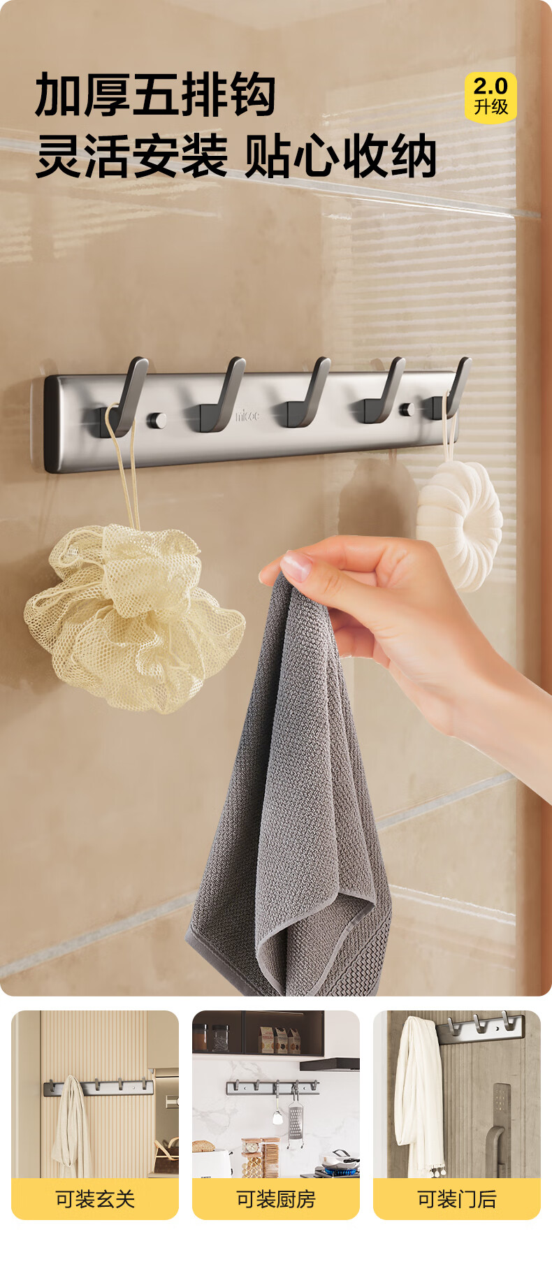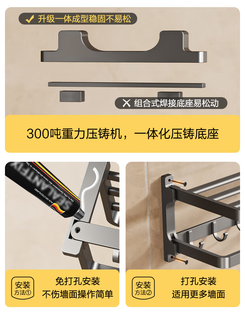Four Seasons Muge (MICOE) Gun Gray Space Aluminum Towel Rack Bathroom No-Punch Bath Towel Rack Bathroom Bathroom Hardware Pendant Set Ultimate Style-Gun Gray Six-piece Set (Punch/No Punch)