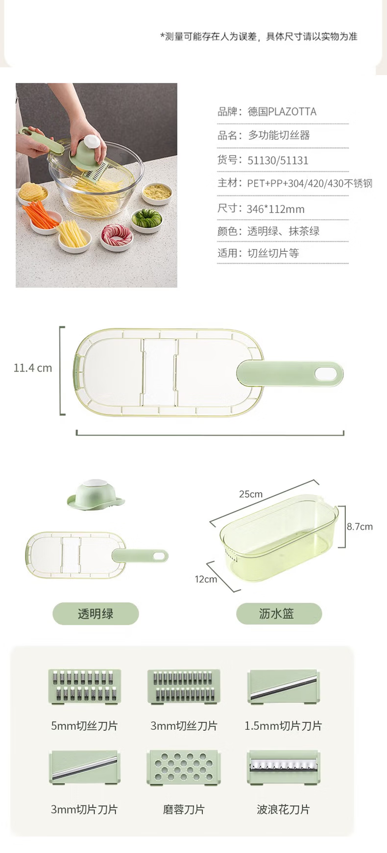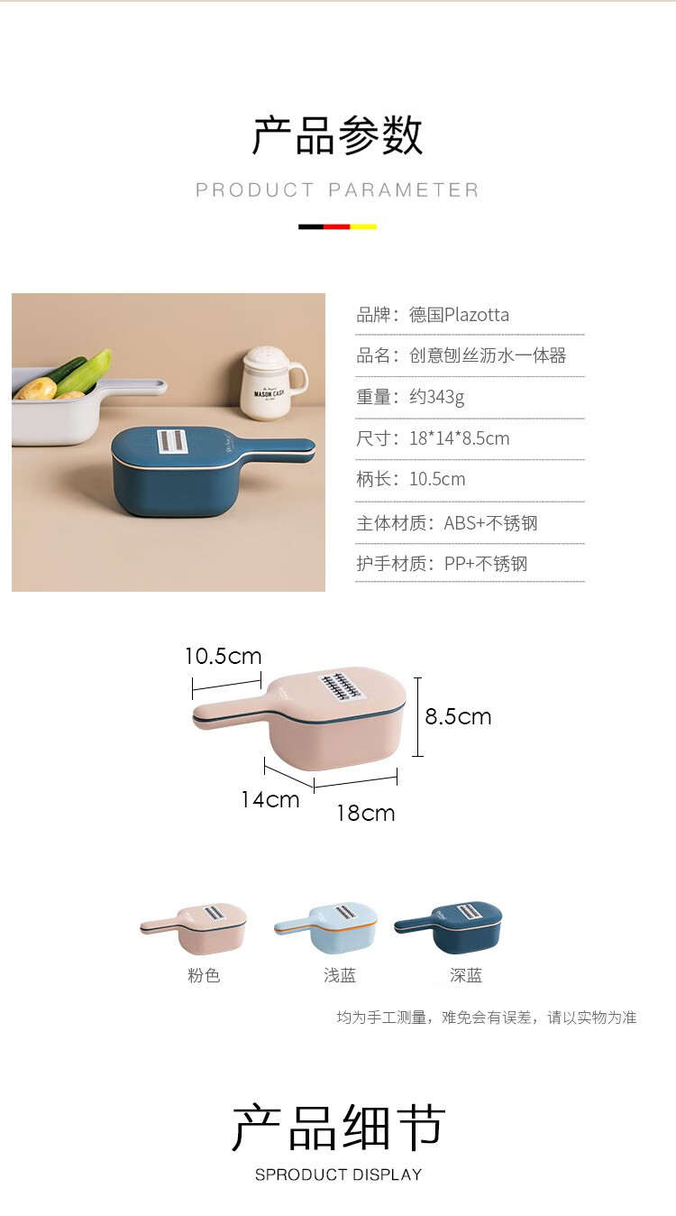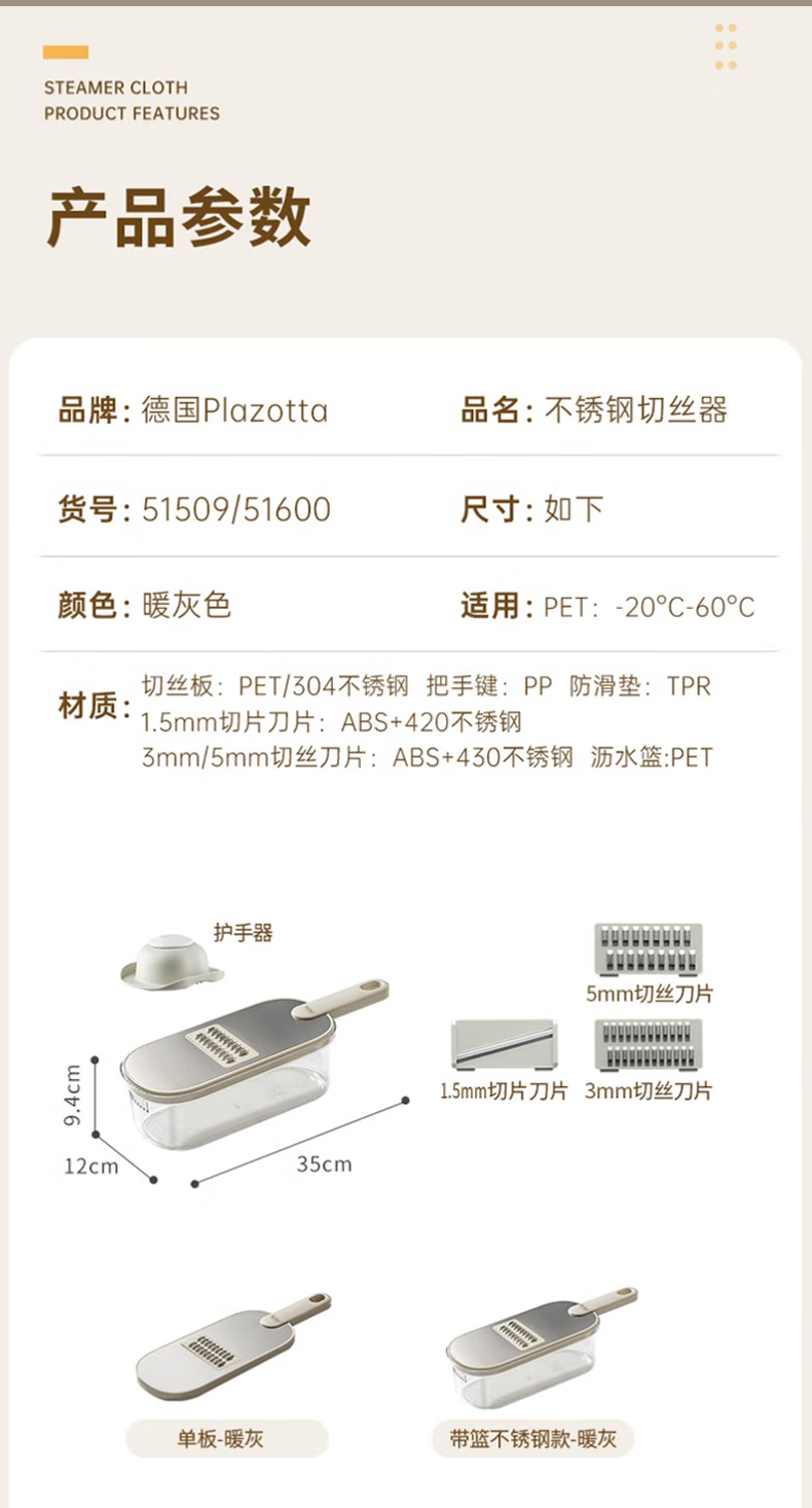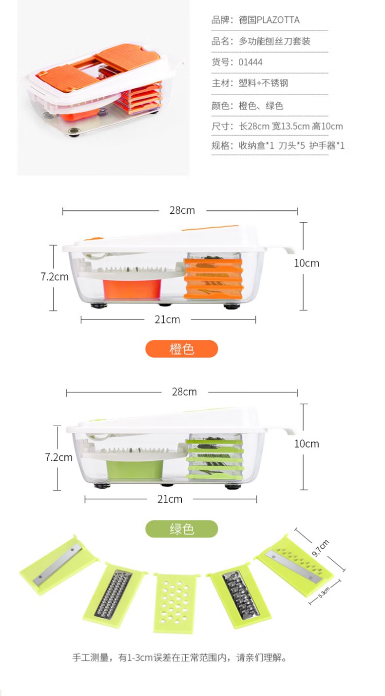 Plazotta seit 1893 Germany kitchen multifunctional potato grater shredder grator vegetable cutter scraper vegetable cutting artifact (three types of knife heads + hand guard + box)