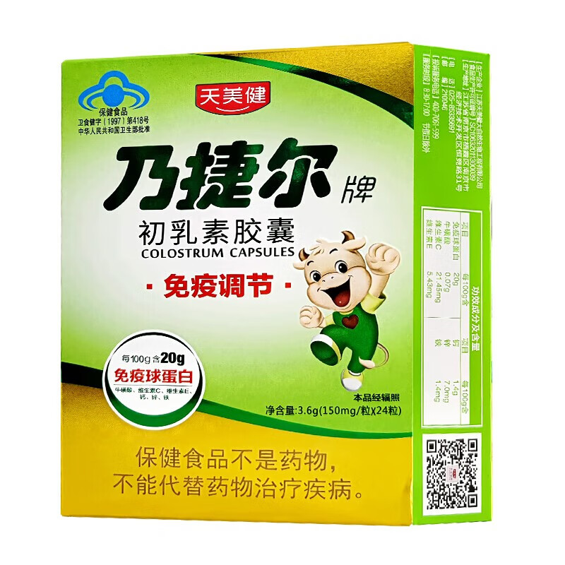 Nigel Bovine Colostrum Capsules 24 capsules, immune regulation, hypoxia resistance, globulin, calcium, iron, zinc, vitamin C, vitamin E, 1 box, 24 capsules