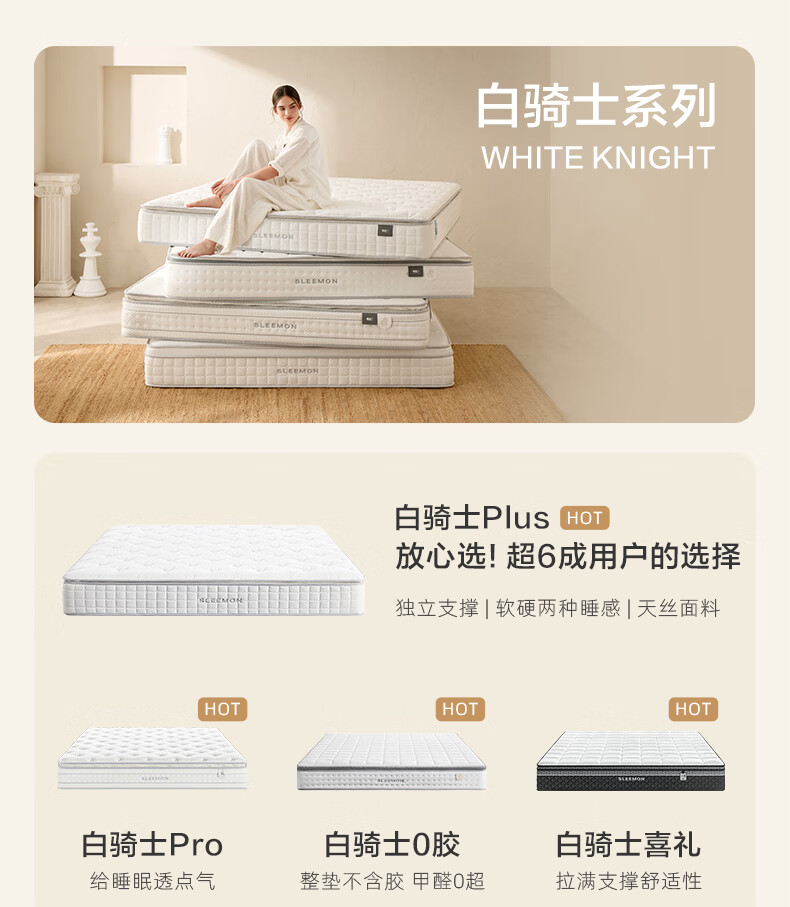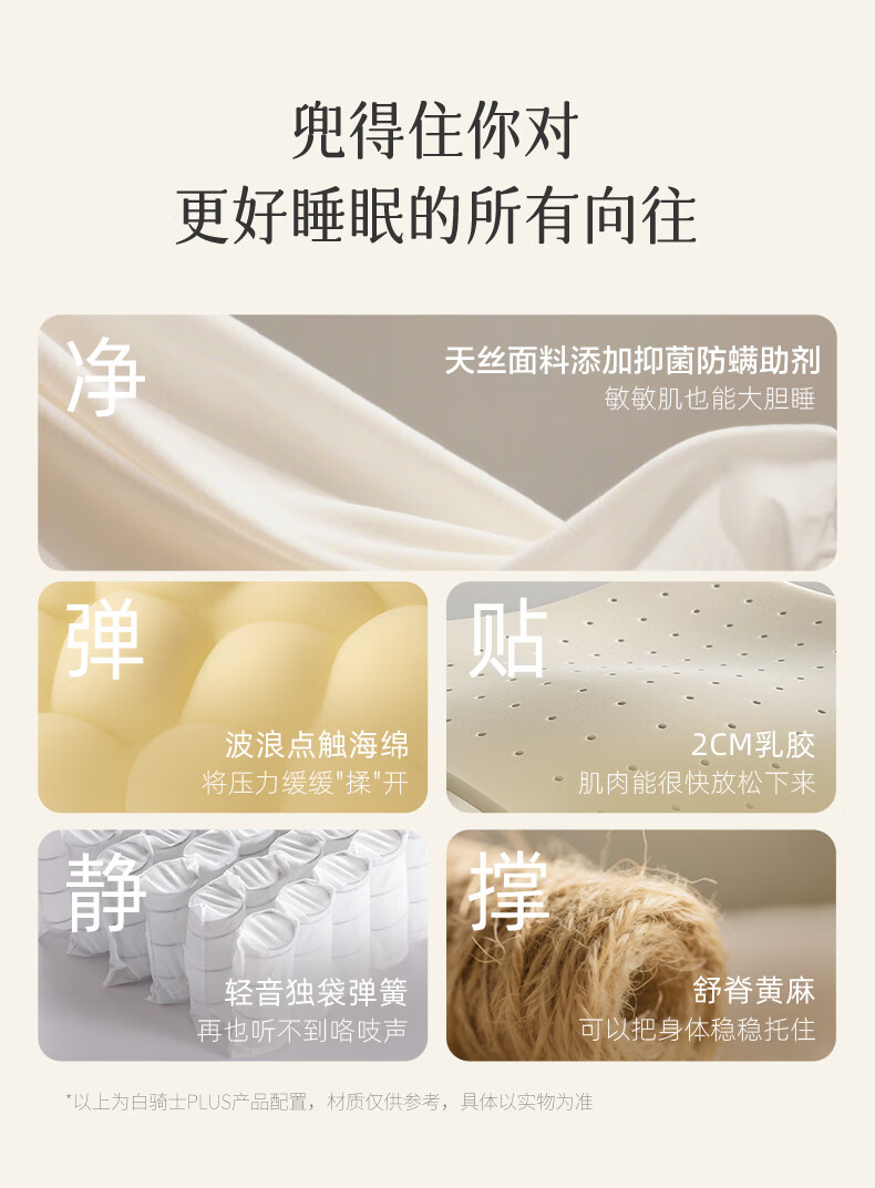 Xilinmen White Knight mattress government subsidized thickened imported latex spine protection jute single bag spring home White Knight plus designated size flash delivery 1.8*2 meters