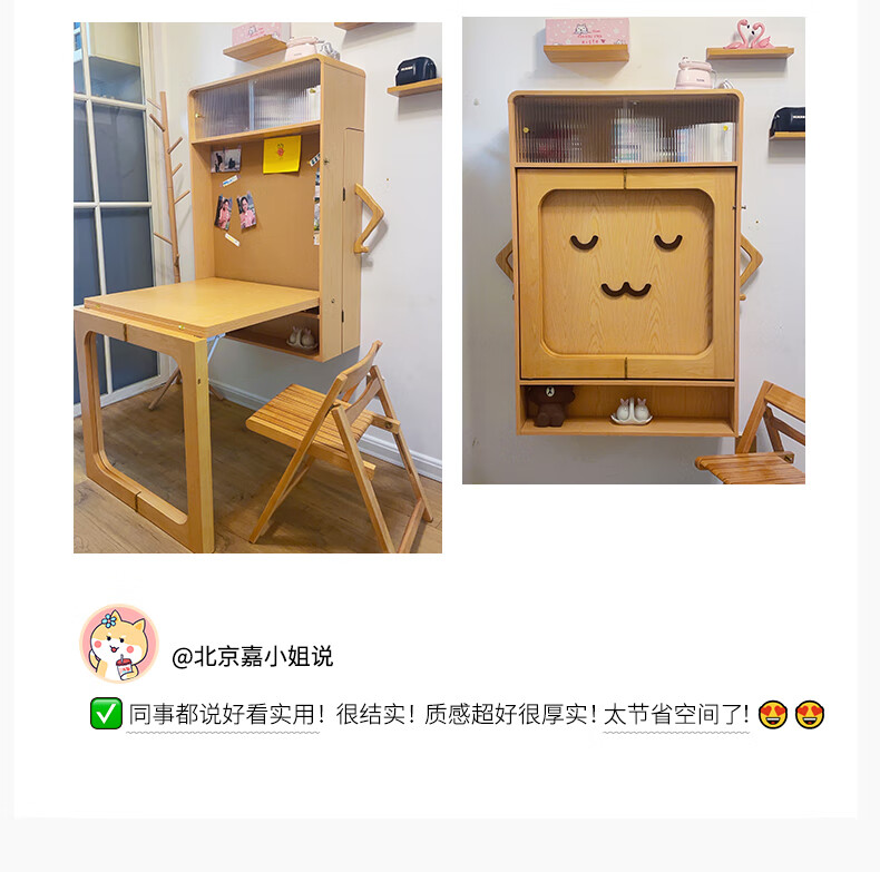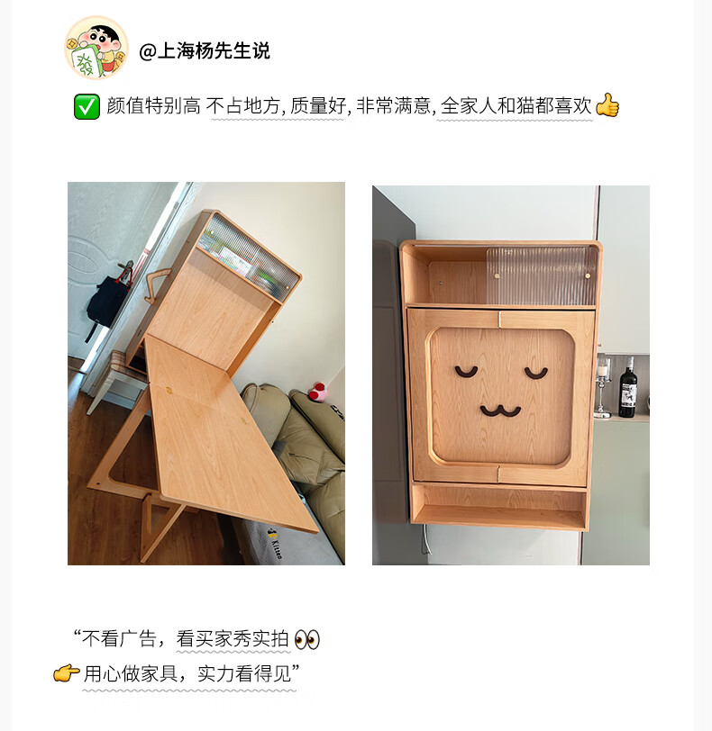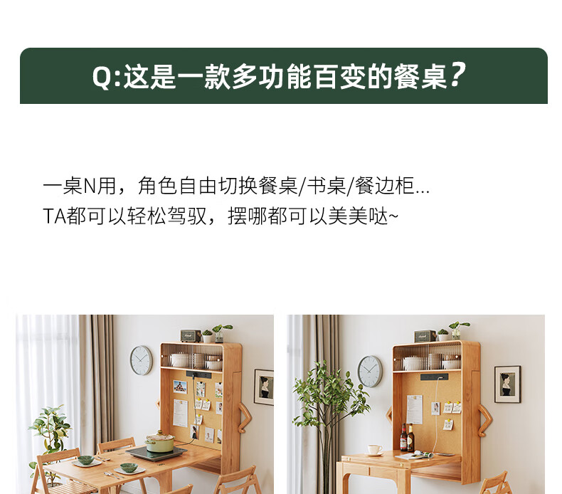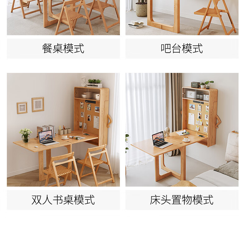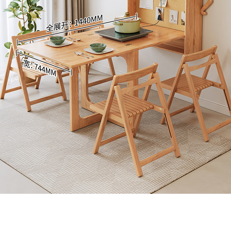 Xiao Mu Wu Cabin Qiaoba dining table folding solid wood hanging dining table and sideboard integrated small apartment table and chair combination single dining table | solid wood color