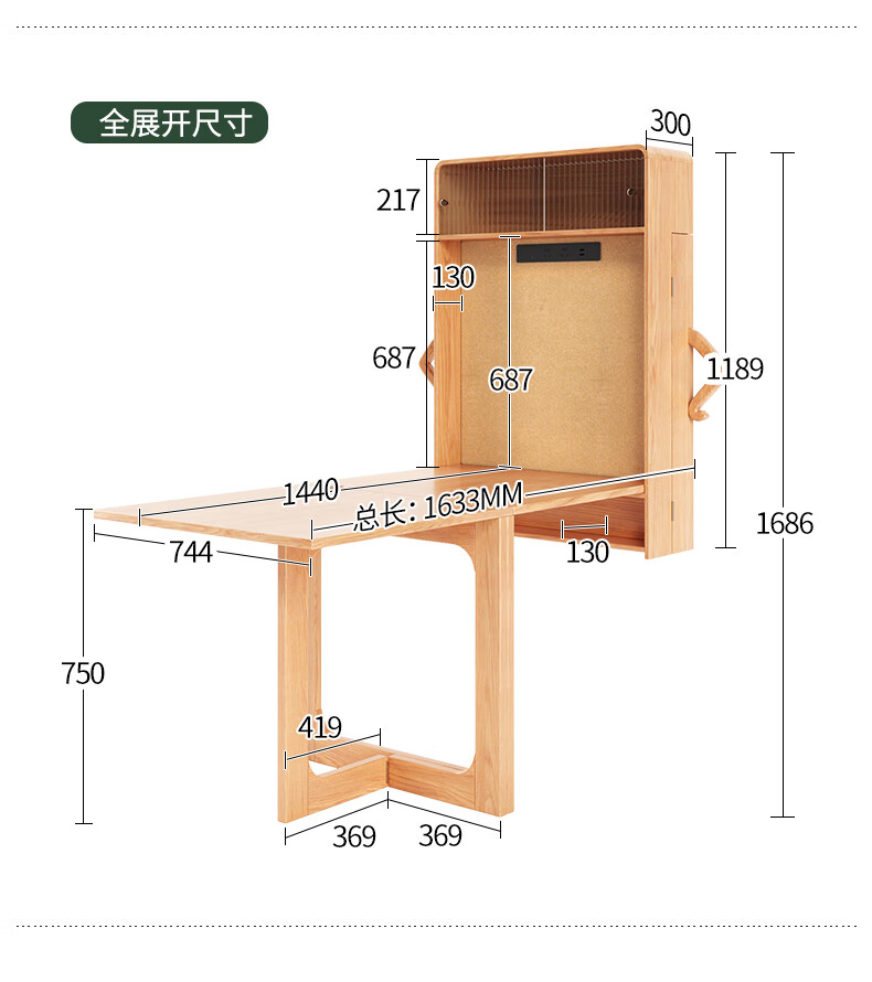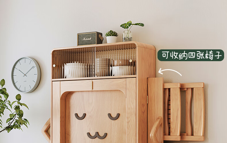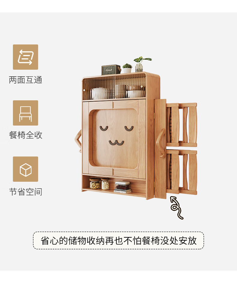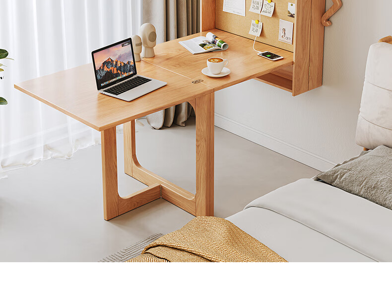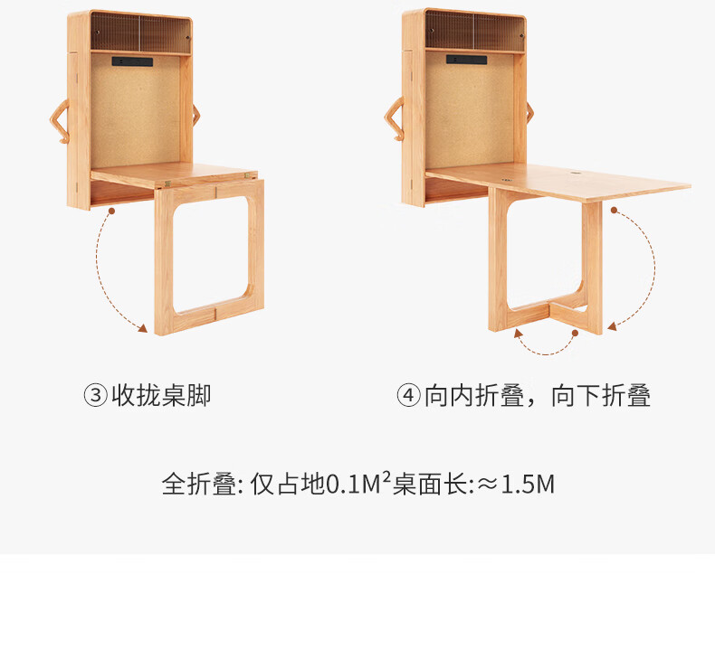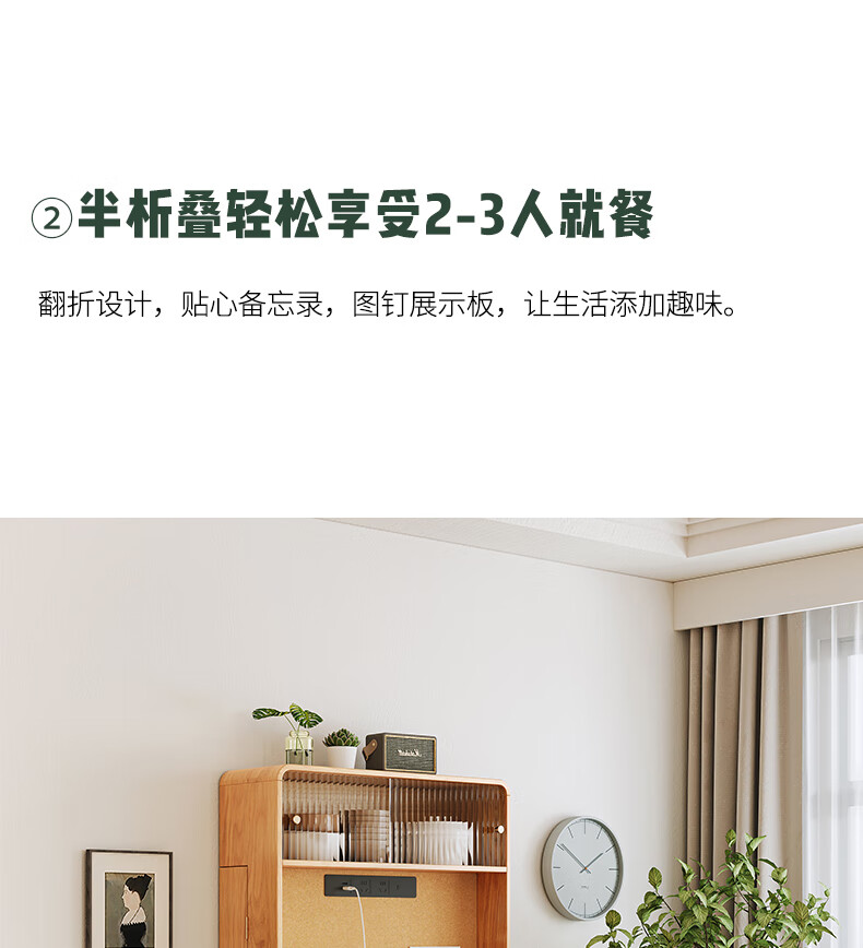 Xiao Mu Wu Cabin Qiaoba dining table folding solid wood hanging dining table and sideboard integrated small apartment table and chair combination single dining table | solid wood color