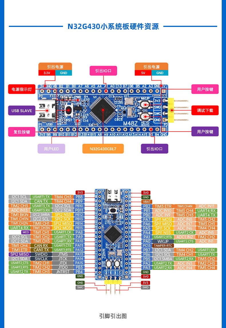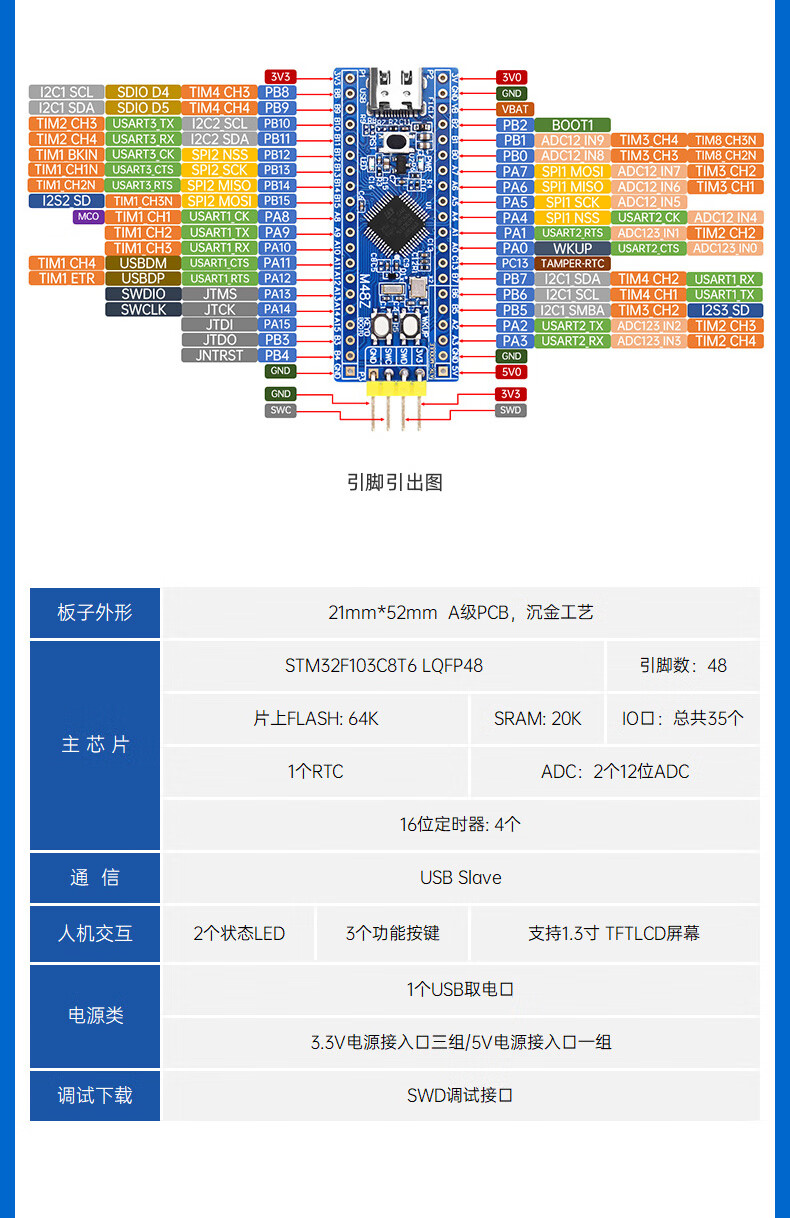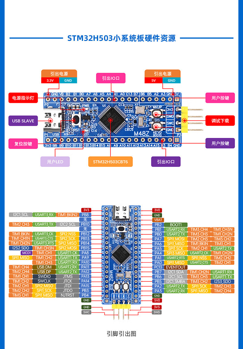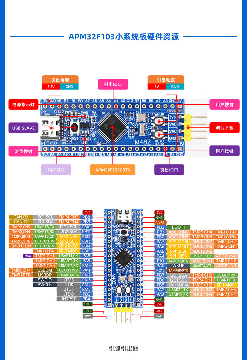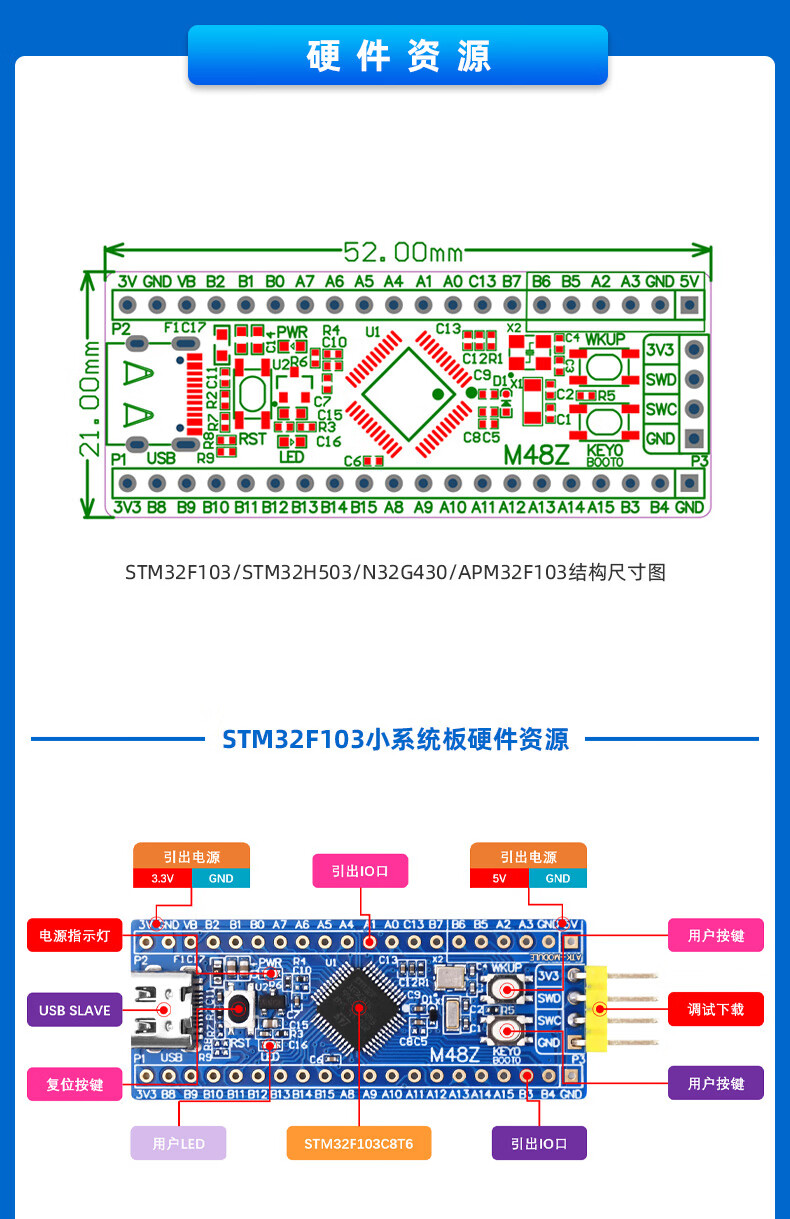 Punctual Atom M48Z minimum system board STM32F103 H503 APM32F103 N32 core board development board STM32F103C8T6 version (M3) no soldering pin header