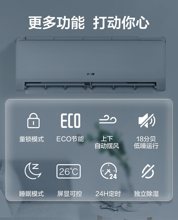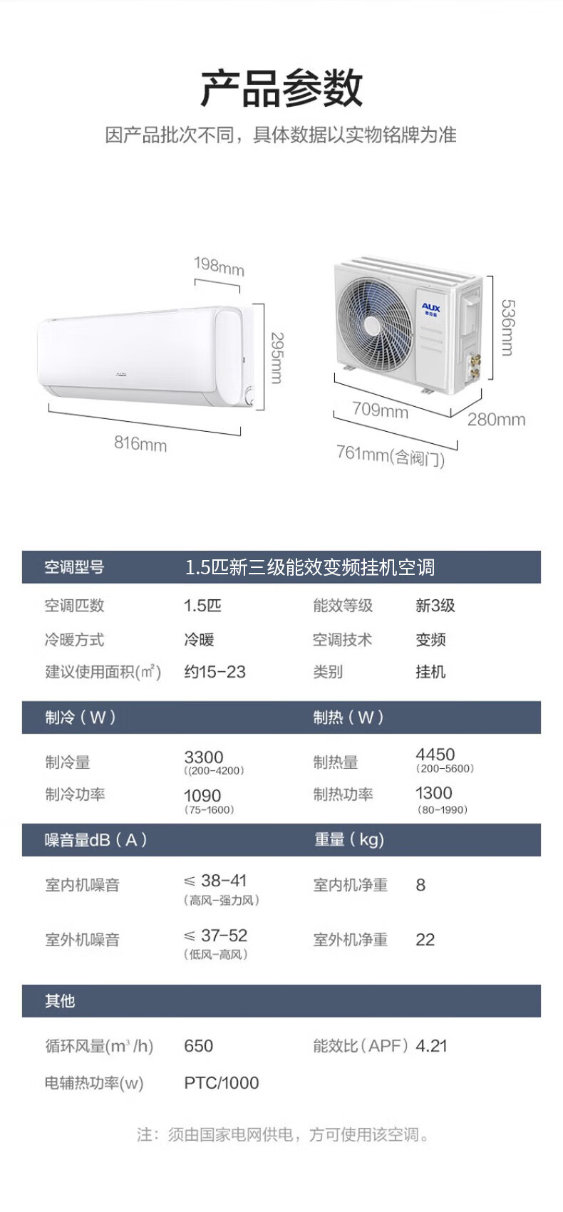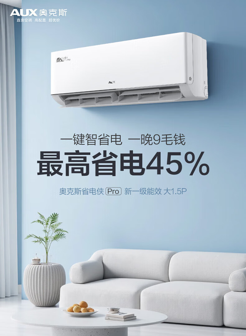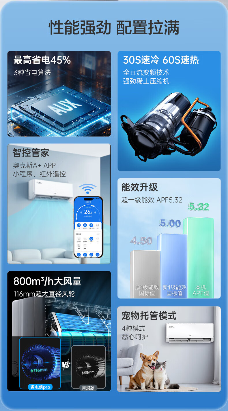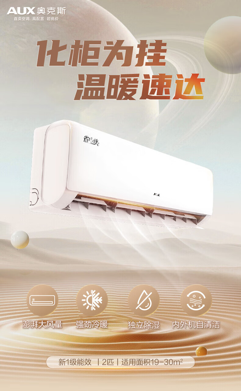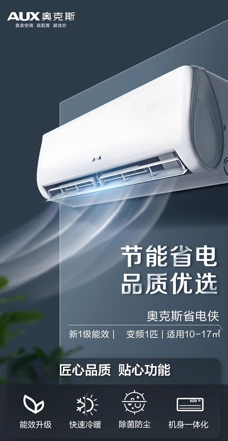 AUX home appliances subsidize 20% of the air conditioner, large 1.5 HP/1 HP new first-level/third-level inverter heating and cooling, energy-saving, silent sterilization, self-cleaning air conditioner hang-up, trade-in old for new, large 1.5 HP, third-level energy efficiency, hot-selling variable frequency heating and cooling, 15-23 square meters