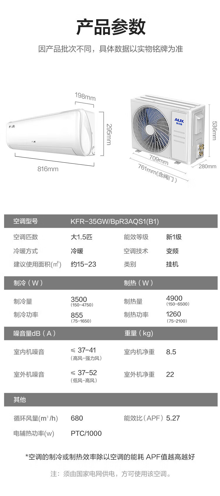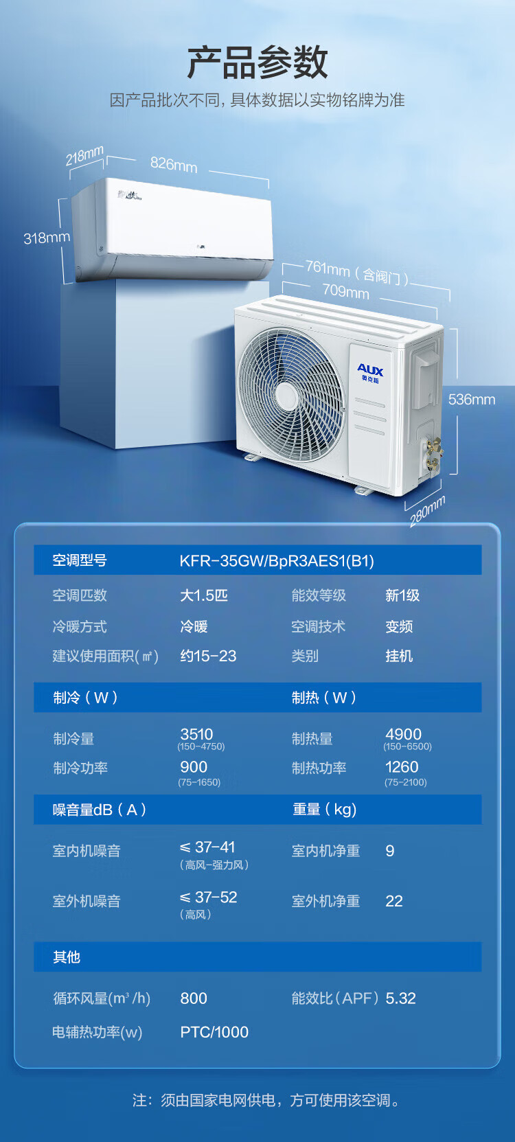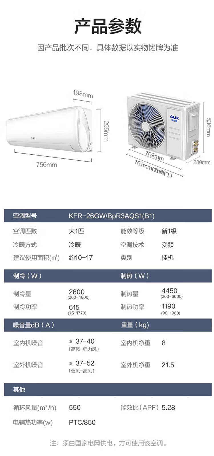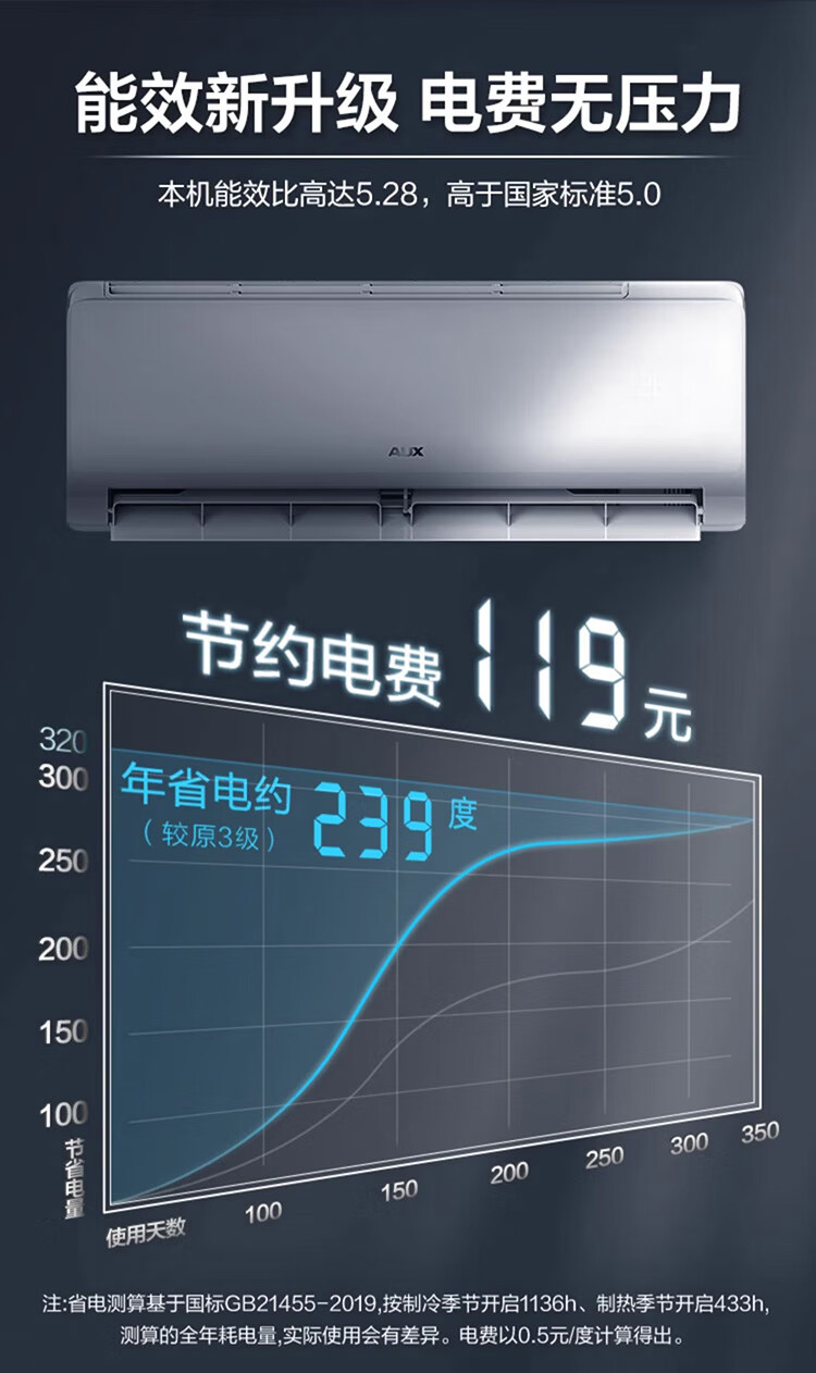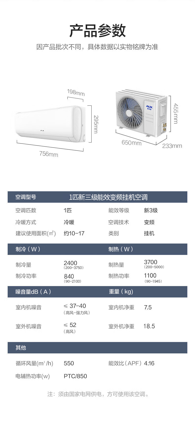 AUX home appliances subsidize 20% of the air conditioner, large 1.5 HP/1 HP new first-level/third-level inverter heating and cooling, energy-saving, silent sterilization, self-cleaning air conditioner hang-up, trade-in old for new, large 1.5 HP, third-level energy efficiency, hot-selling variable frequency heating and cooling, 15-23 square meters
