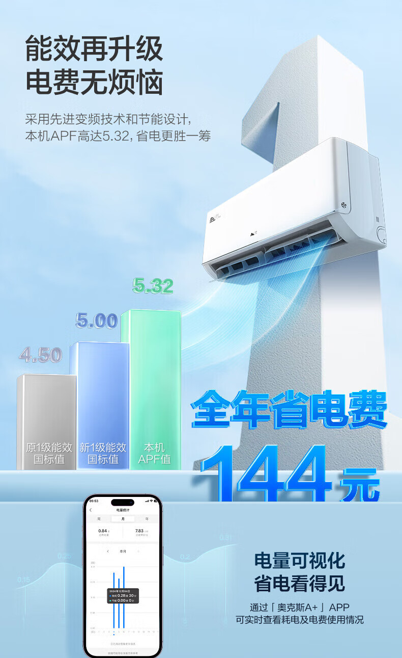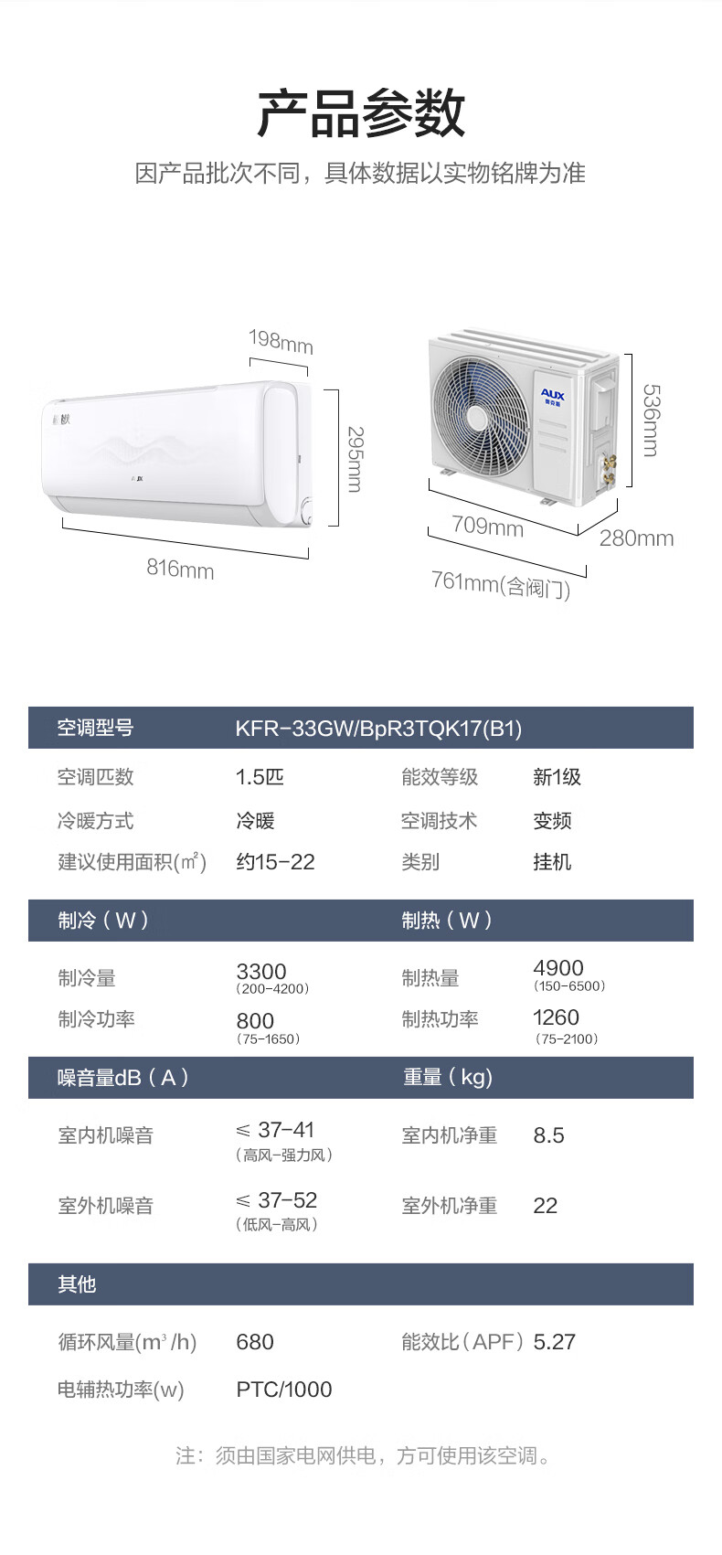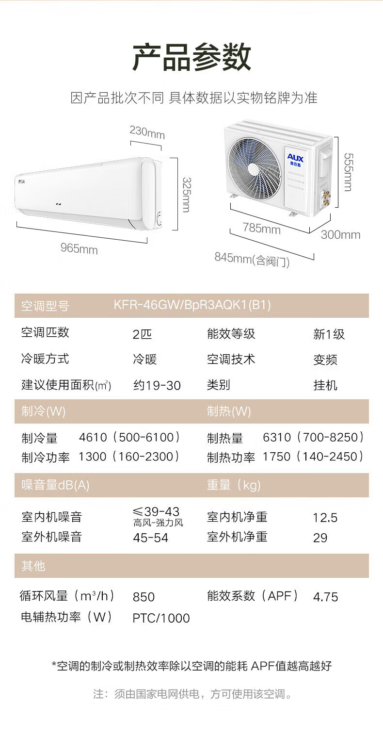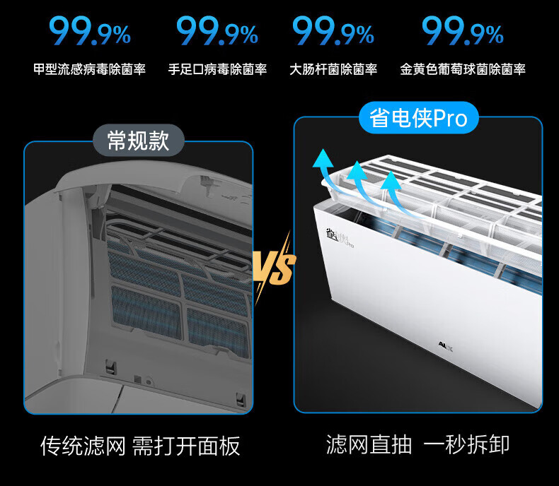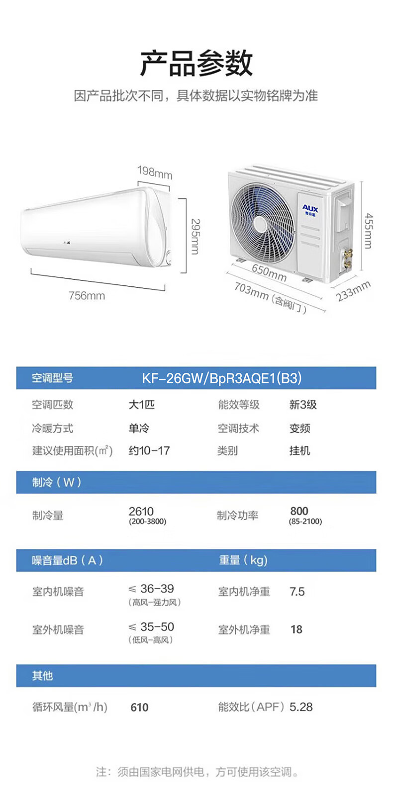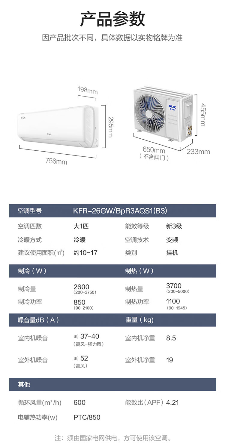 AUX home appliances subsidize 20% of the air conditioner, large 1.5 HP/1 HP new first-level/third-level inverter heating and cooling, energy-saving, silent sterilization, self-cleaning air conditioner hang-up, trade-in old for new, large 1.5 HP, third-level energy efficiency, hot-selling variable frequency heating and cooling, 15-23 square meters