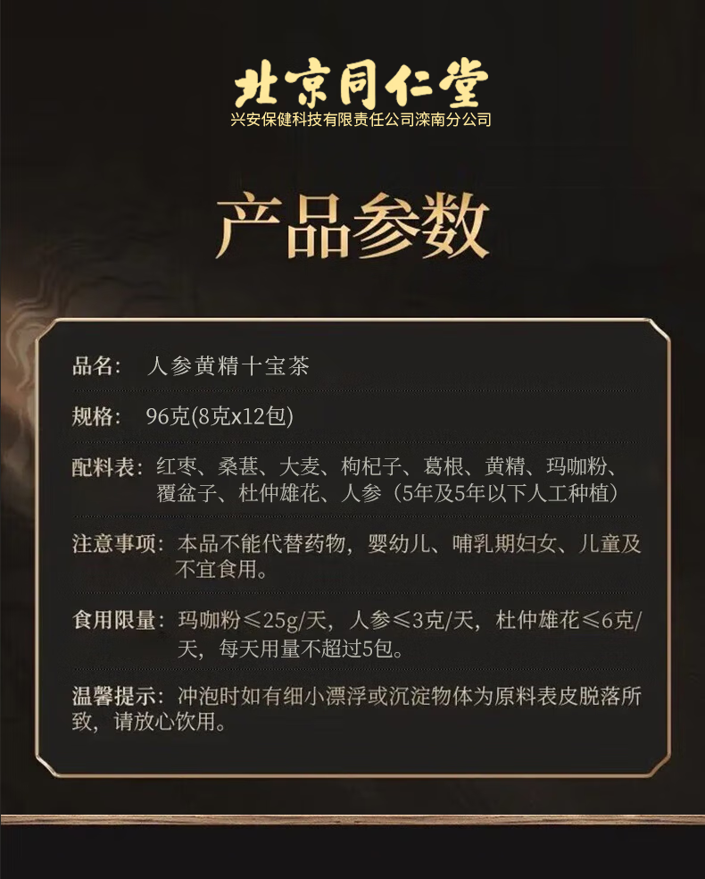 Beijing Tongrentang Ginseng, Wolfberry and Ten Treasures Tea tonify the kidneys and strengthen yang and health-preserving tea. Six Treasures Tea, Maca, Mulberry and Eucommia Male Flower Tea. Five boxes. Repurchase and buy this one is the most cost-effective.
