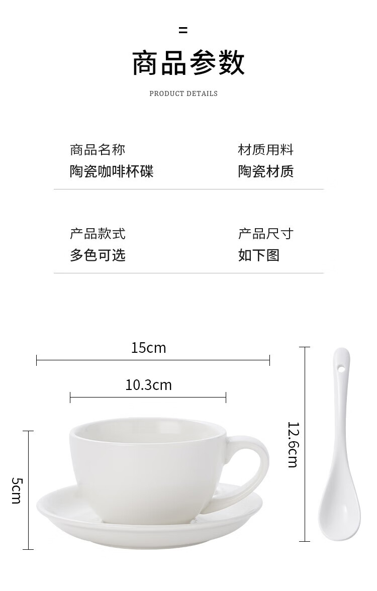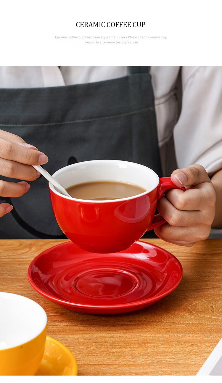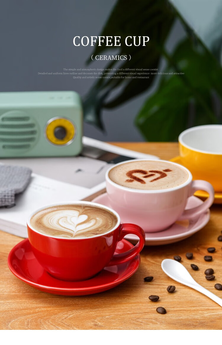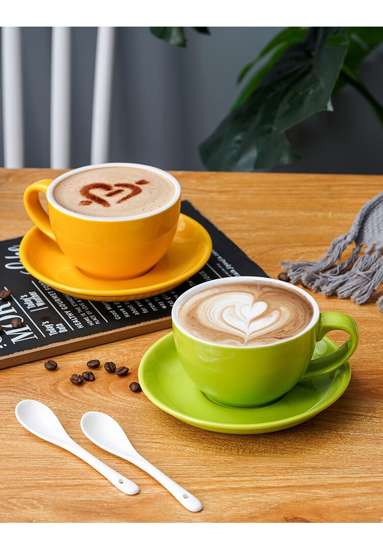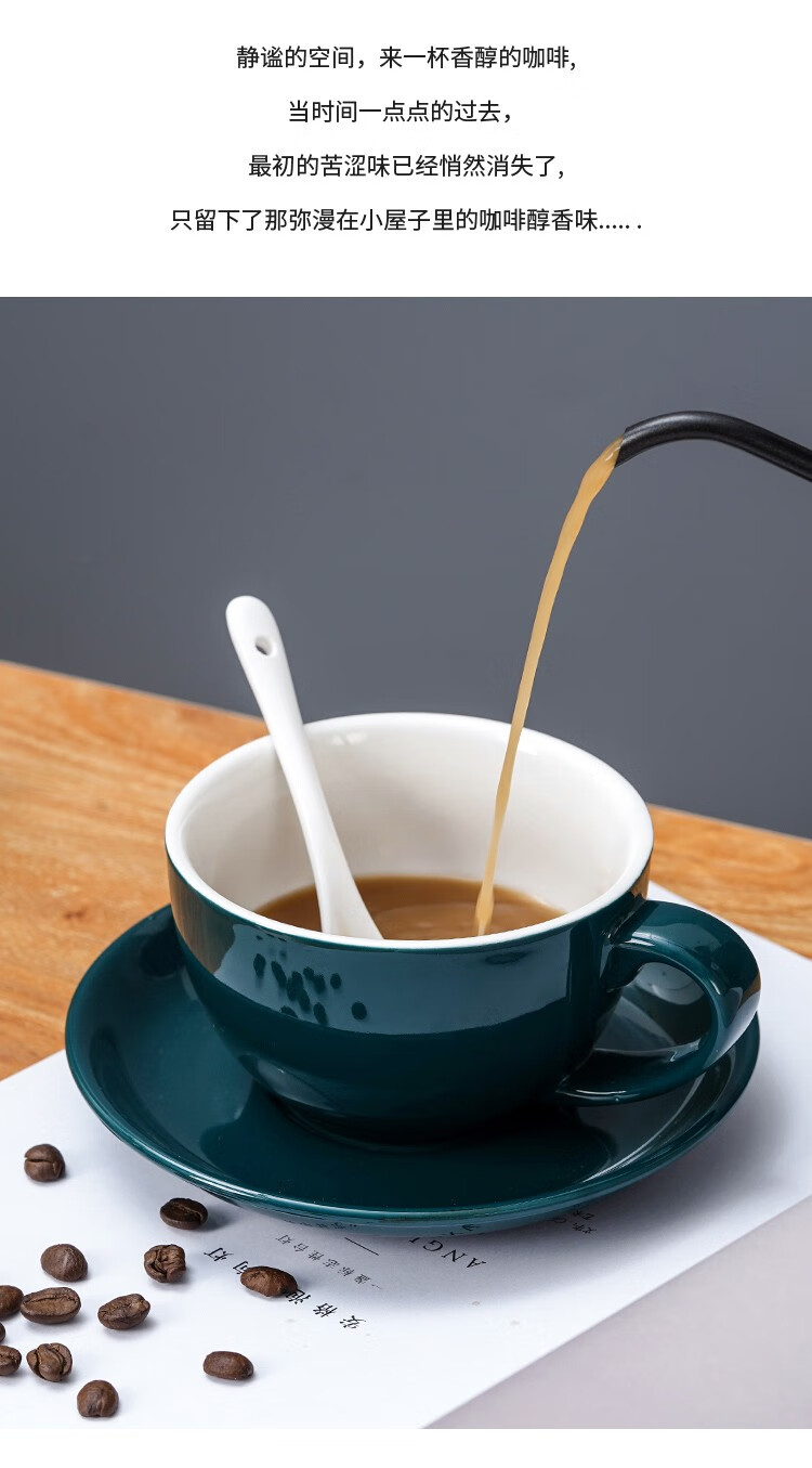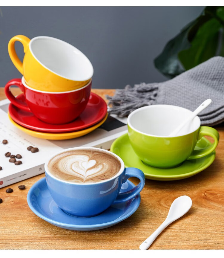 Mongdio European Ceramic Coffee Cup and Saucer Home Latte Cup Large Capacity 300ml Latte Art Cup and Saucer Set White 300ml