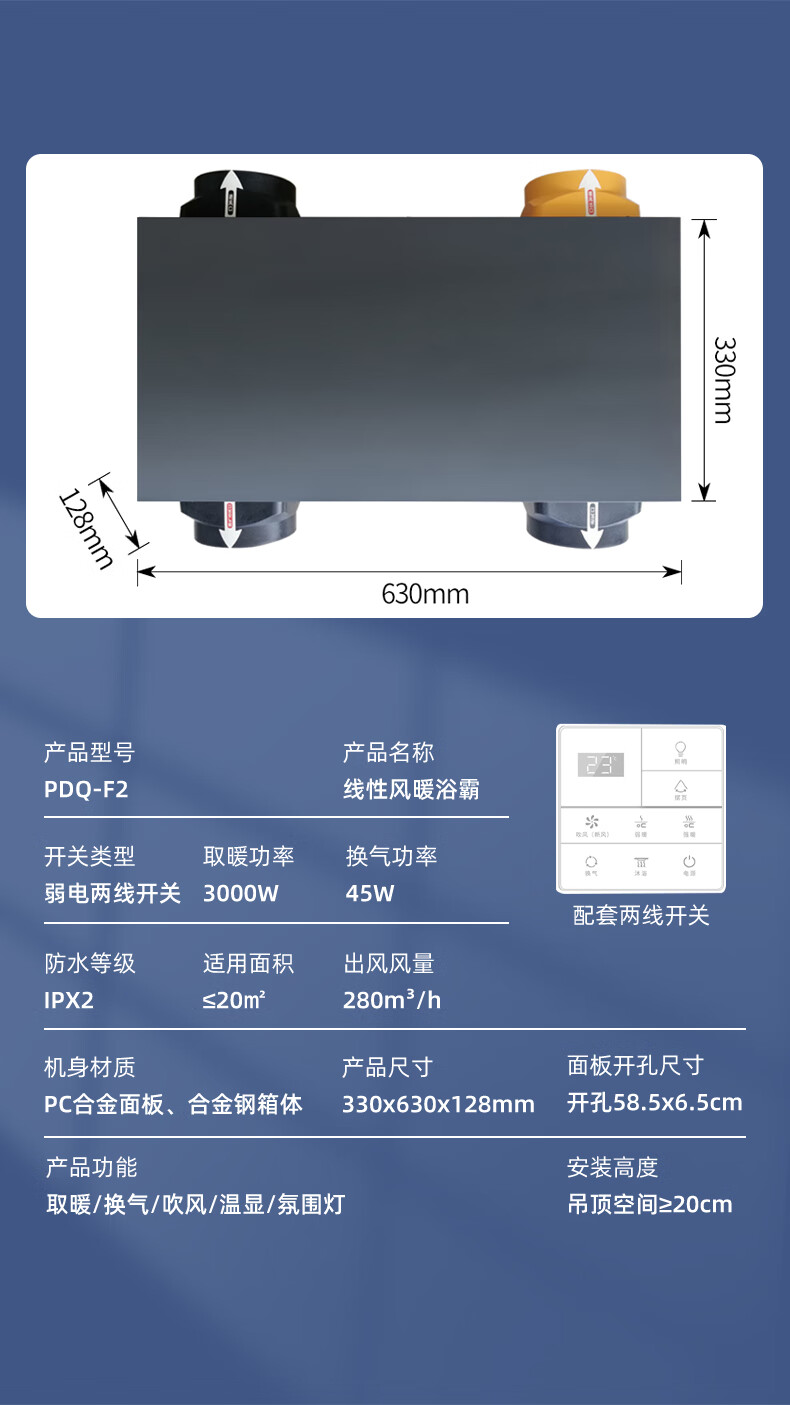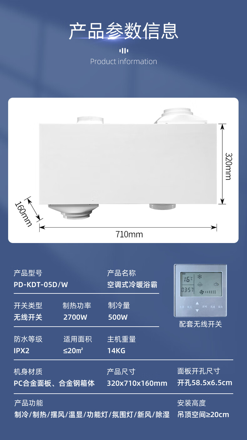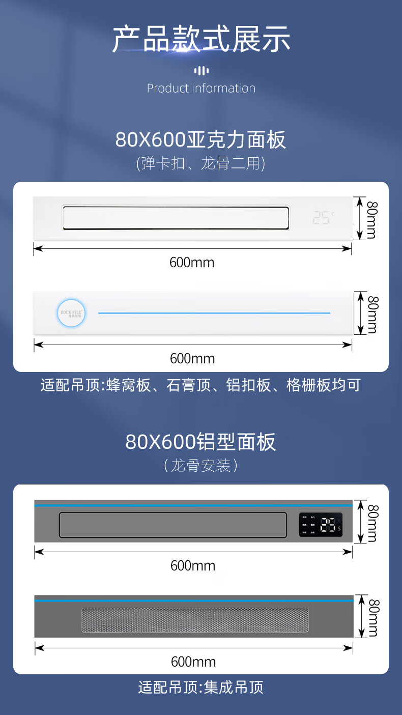 Rockefeller (ROCK FILE) Liangba kitchen air conditioner linear embedded bathroom air cooler honeycomb large plate ceiling heating and cooling air conditioner white kitchen air conditioner/1800w refrigeration/open hole installation