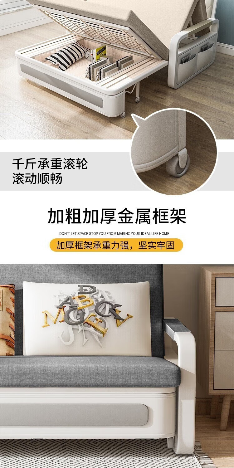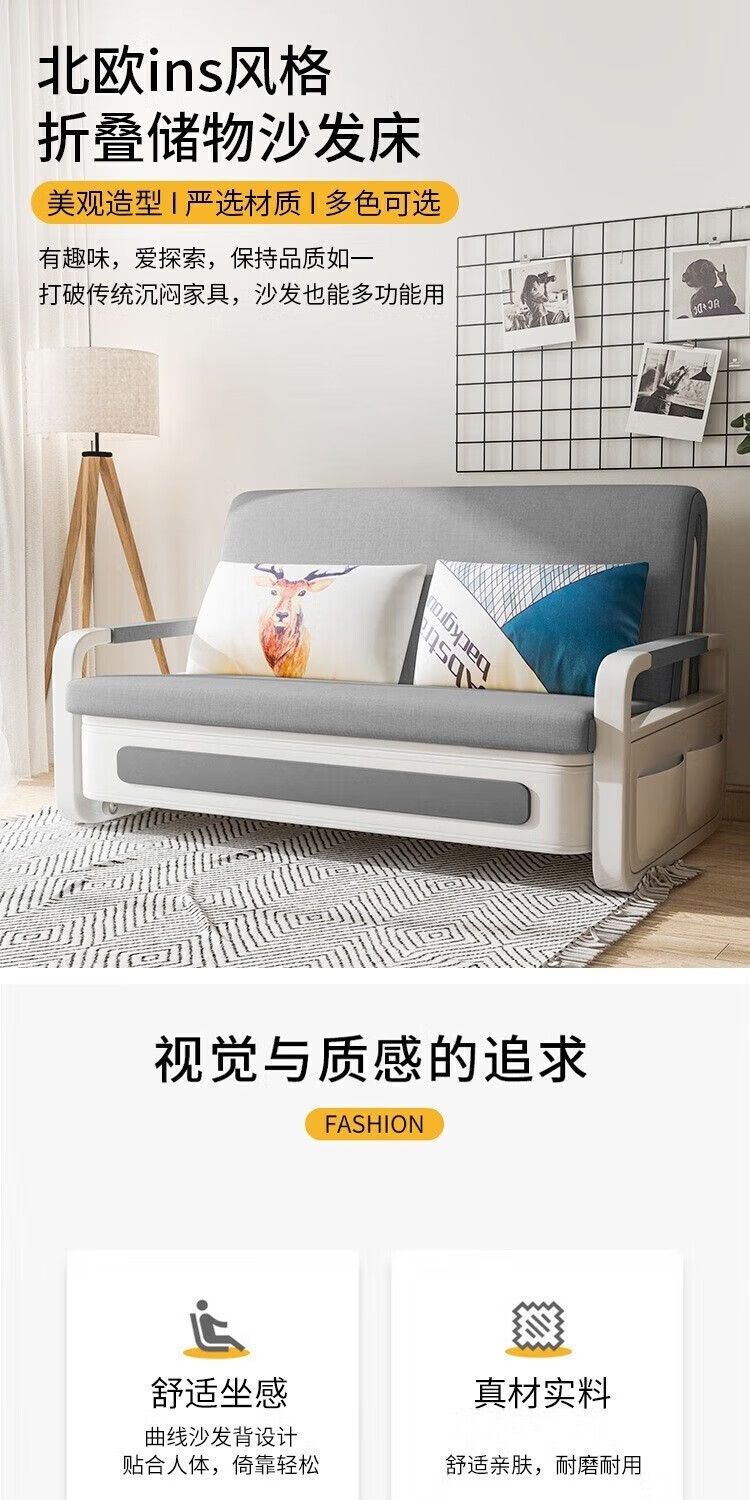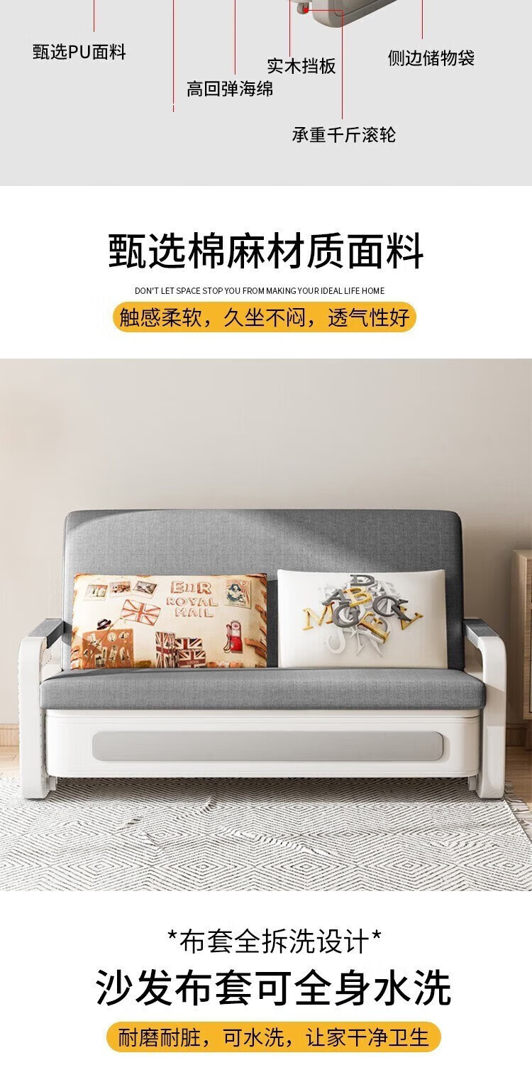 Zhensaiqi sofa living room folding sofa bed dual-purpose small apartment living room fabric sofa sitting lazy sofa 1.5*1.9 meters latex type + 2 pillows with storage