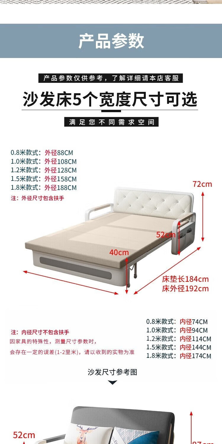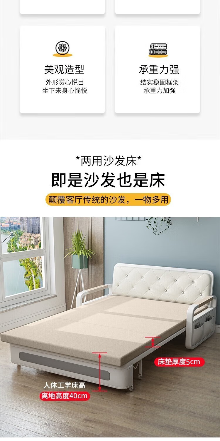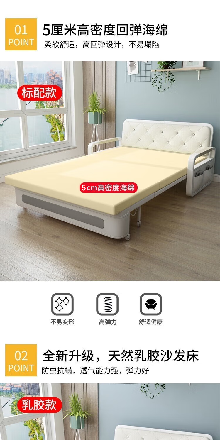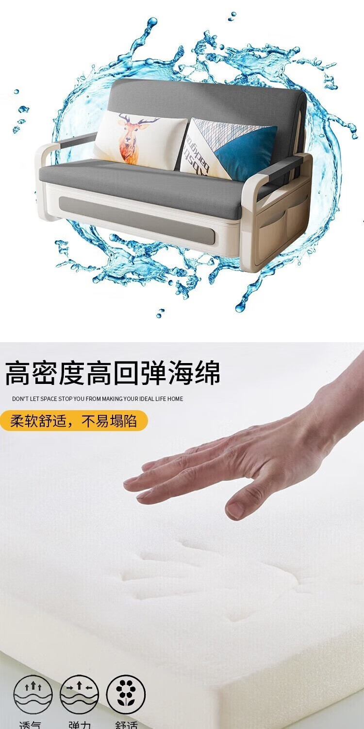Zhensaiqi sofa living room folding sofa bed dual-purpose small apartment living room fabric sofa sitting lazy sofa 1.5*1.9 meters latex type + 2 pillows with storage