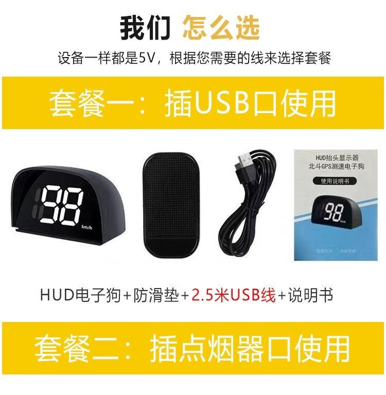 Sigsha 2023 new electronic dog speed measurement Beidou radar safety warning instrument HUD head-up display HUD speed display electronic dog + USB cable