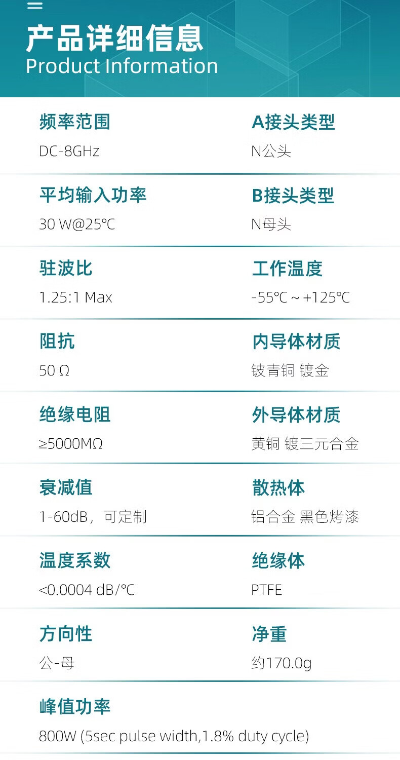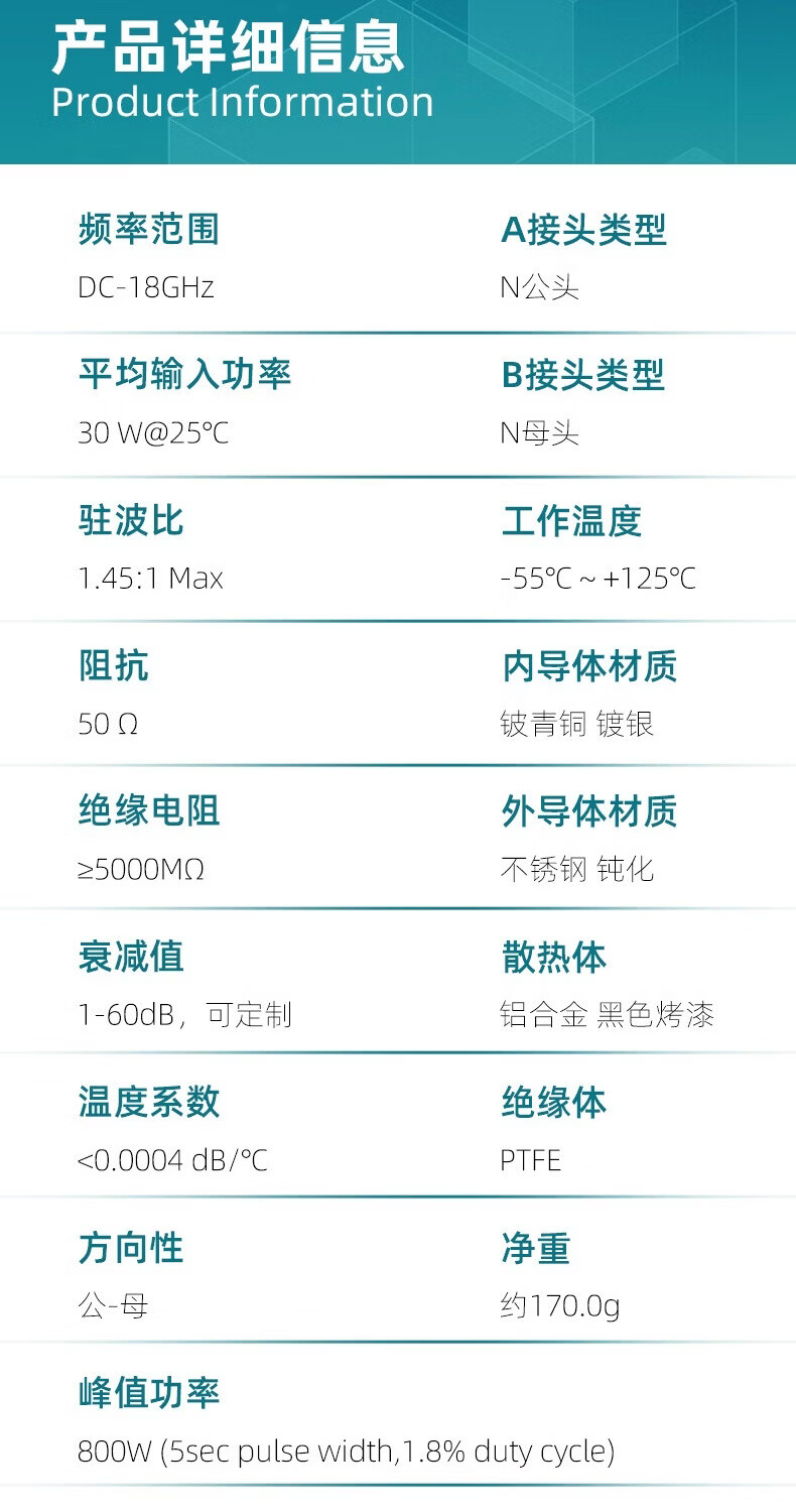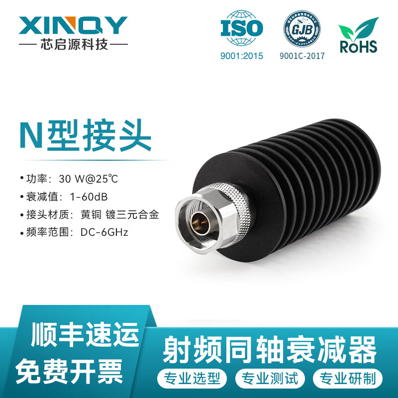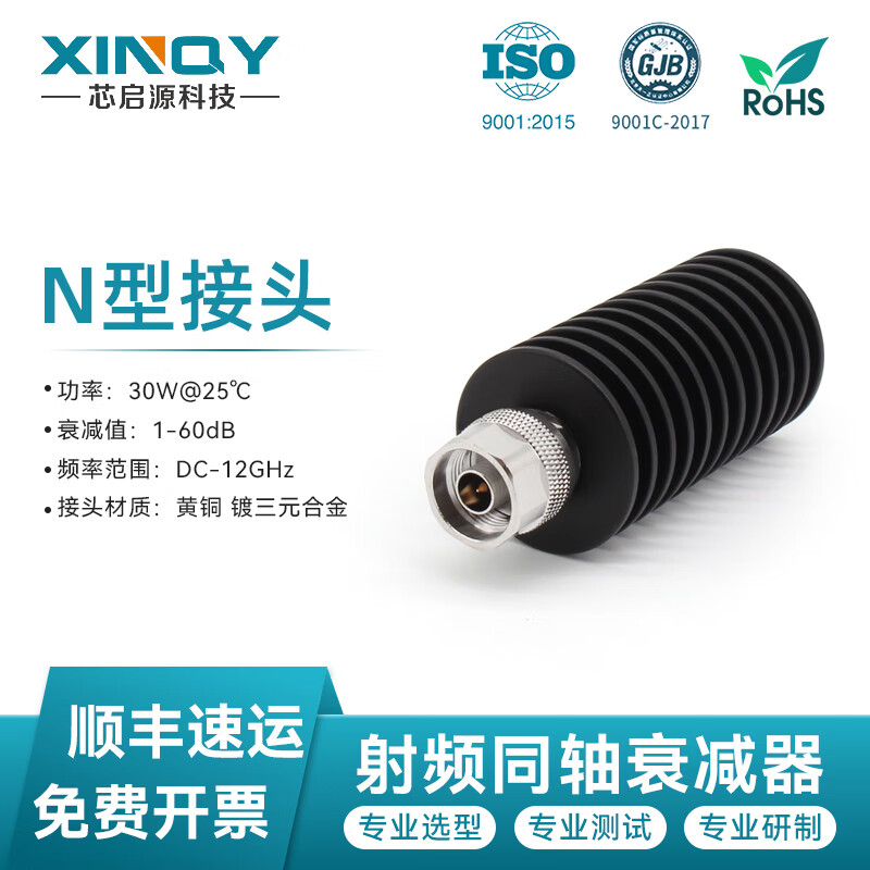 XINQY Xinqiyuan N type RF coaxial attenuator DC-18G 30W RF signal attenuation 1-40dB high power DC-18G power 30W attenuation value 1dB