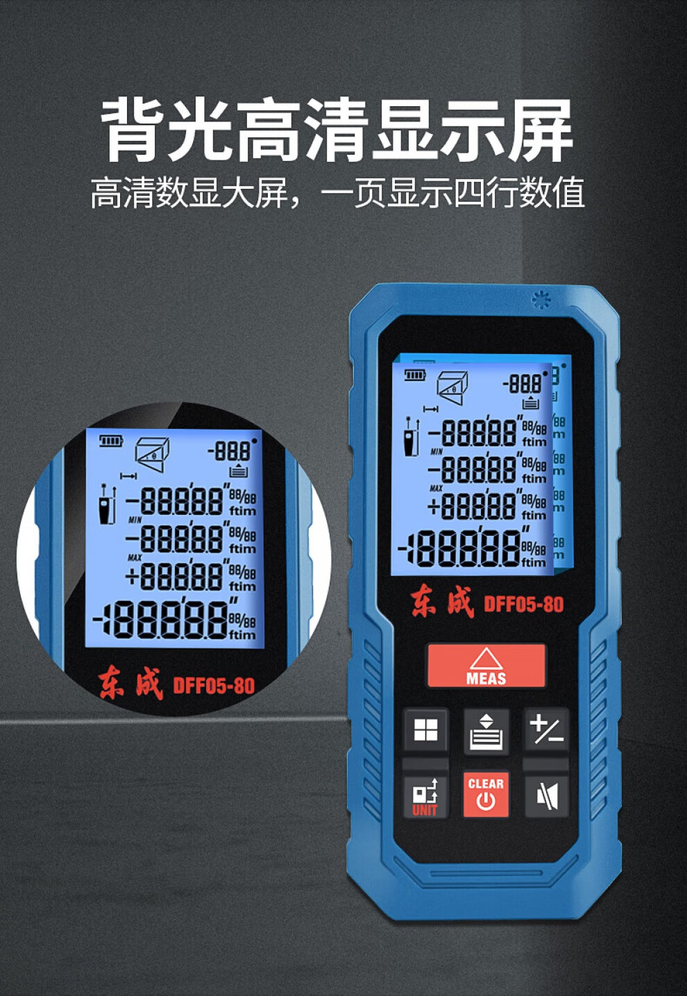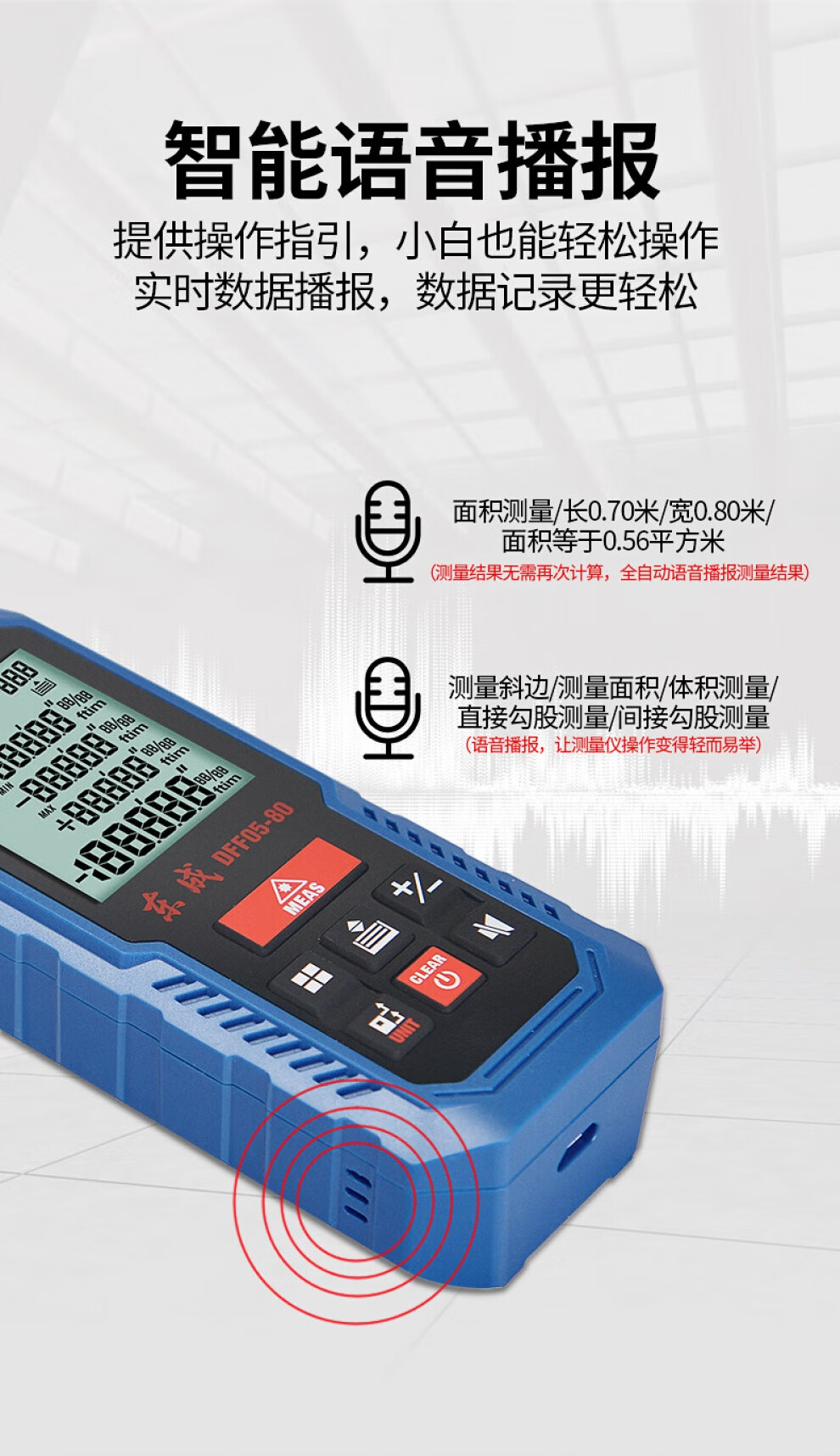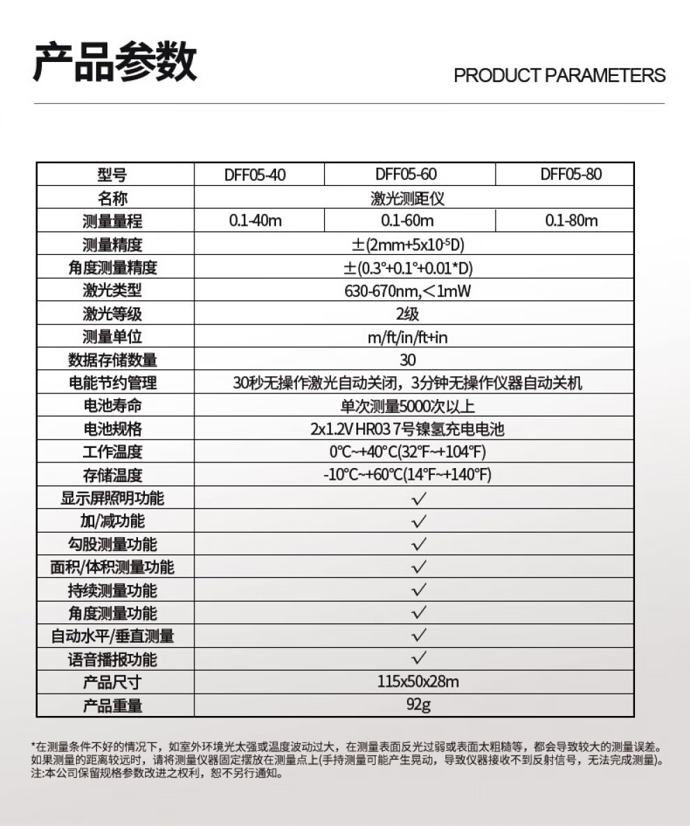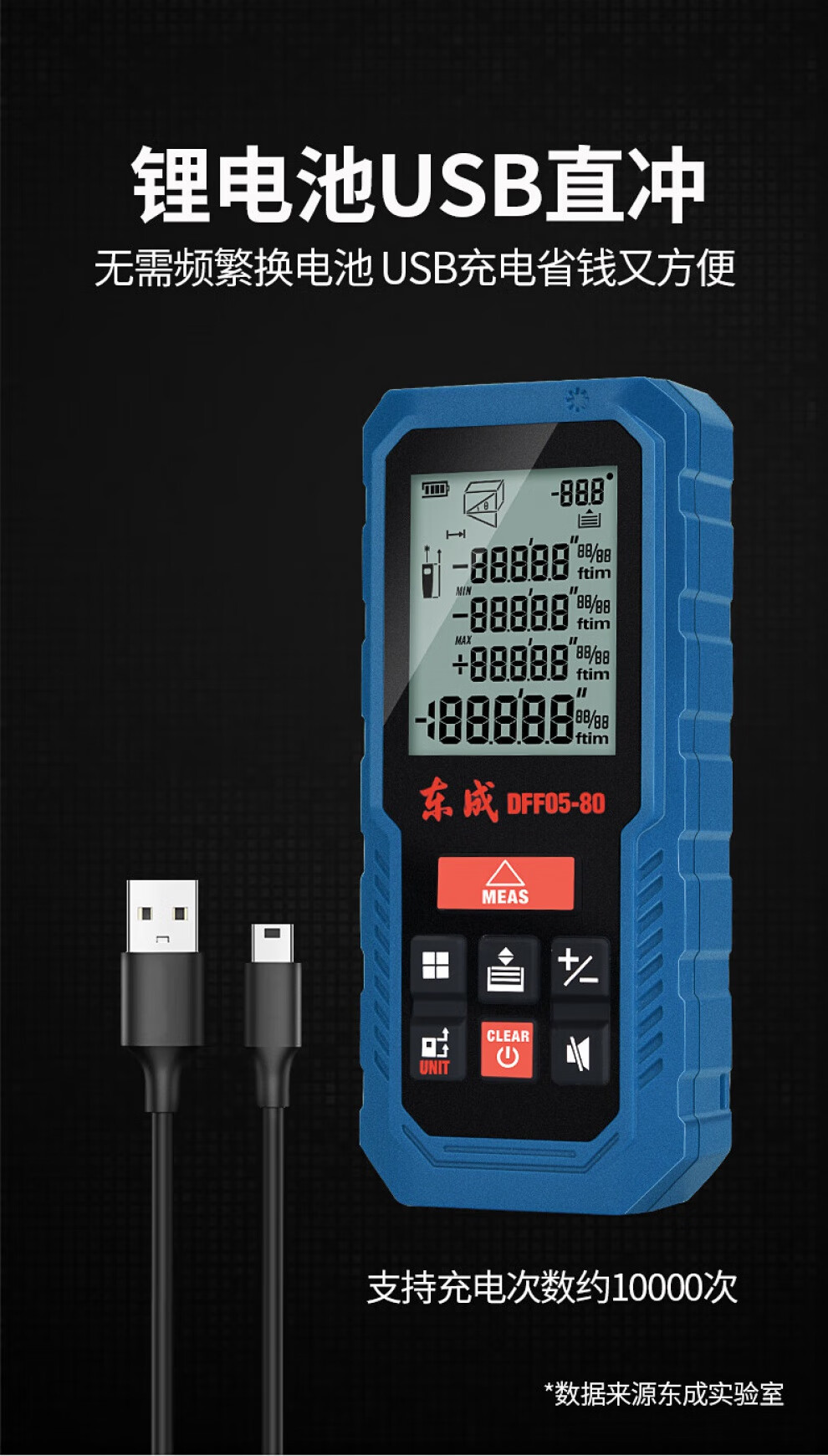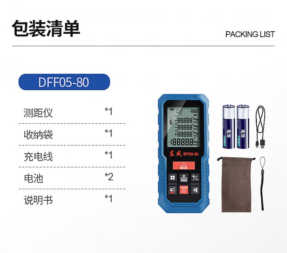 Dongcheng laser distance meter measuring instrument handheld square electronic ruler distance meter room ruler tape measure 40 meters 60 meters 80 meters DFF05-40 rechargeable voice model