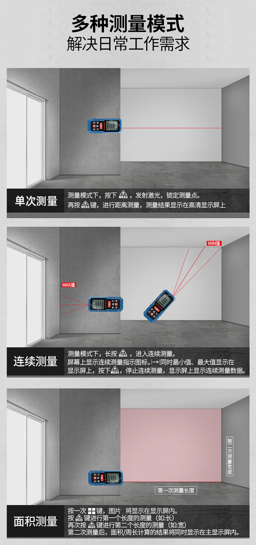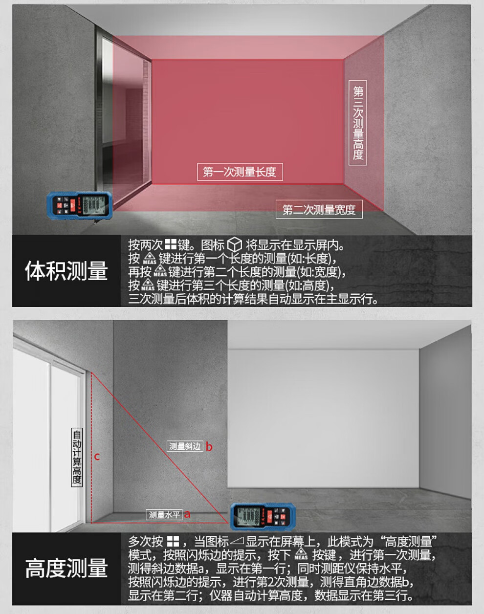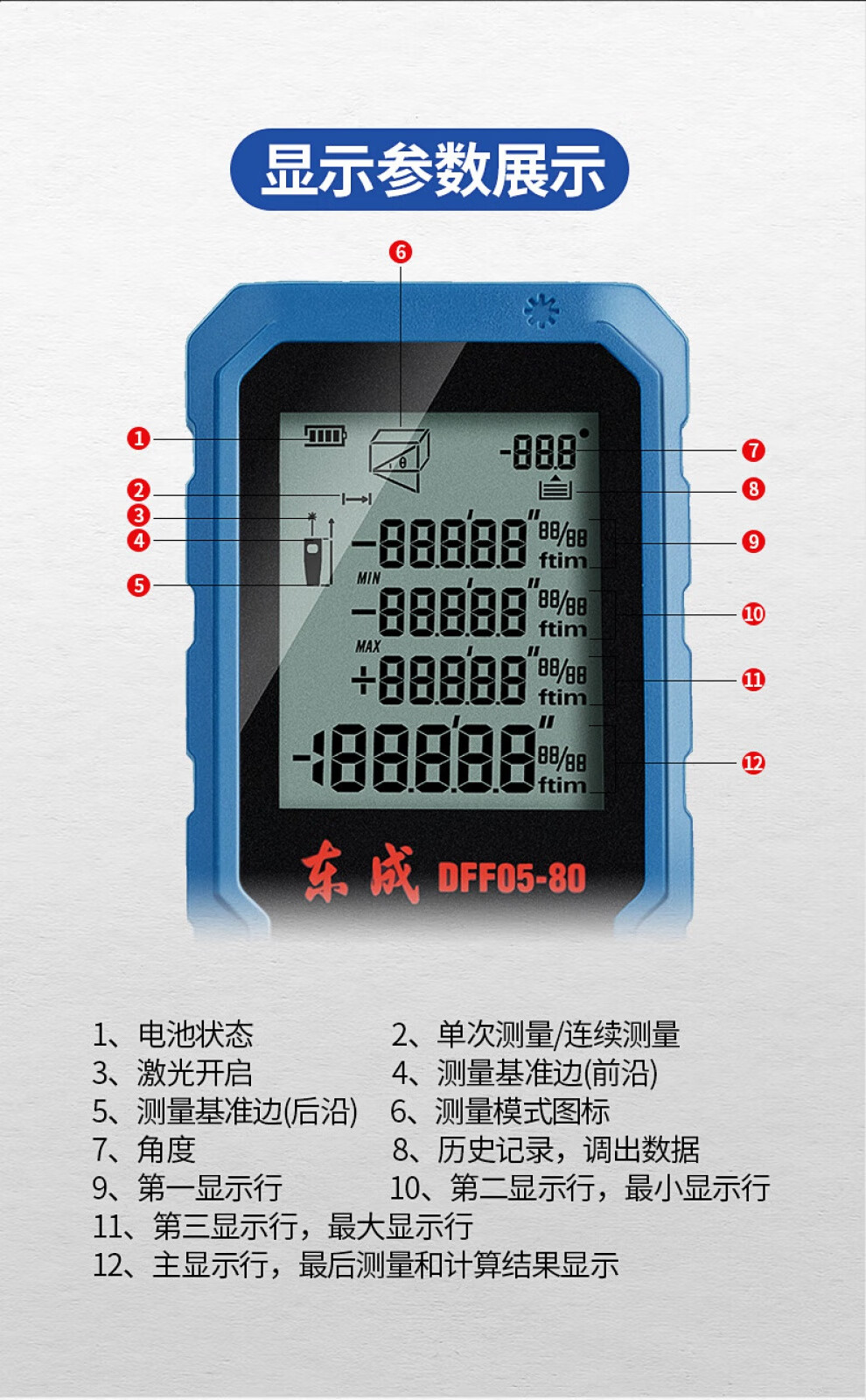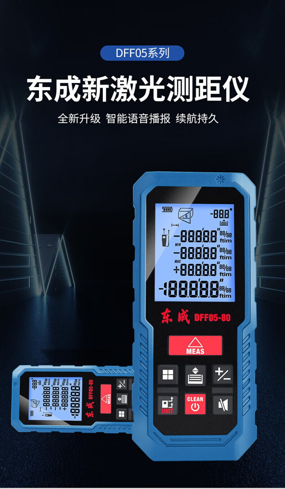 Dongcheng laser distance meter measuring instrument handheld square electronic ruler distance meter room ruler tape measure 40 meters 60 meters 80 meters DFF05-40 rechargeable voice model