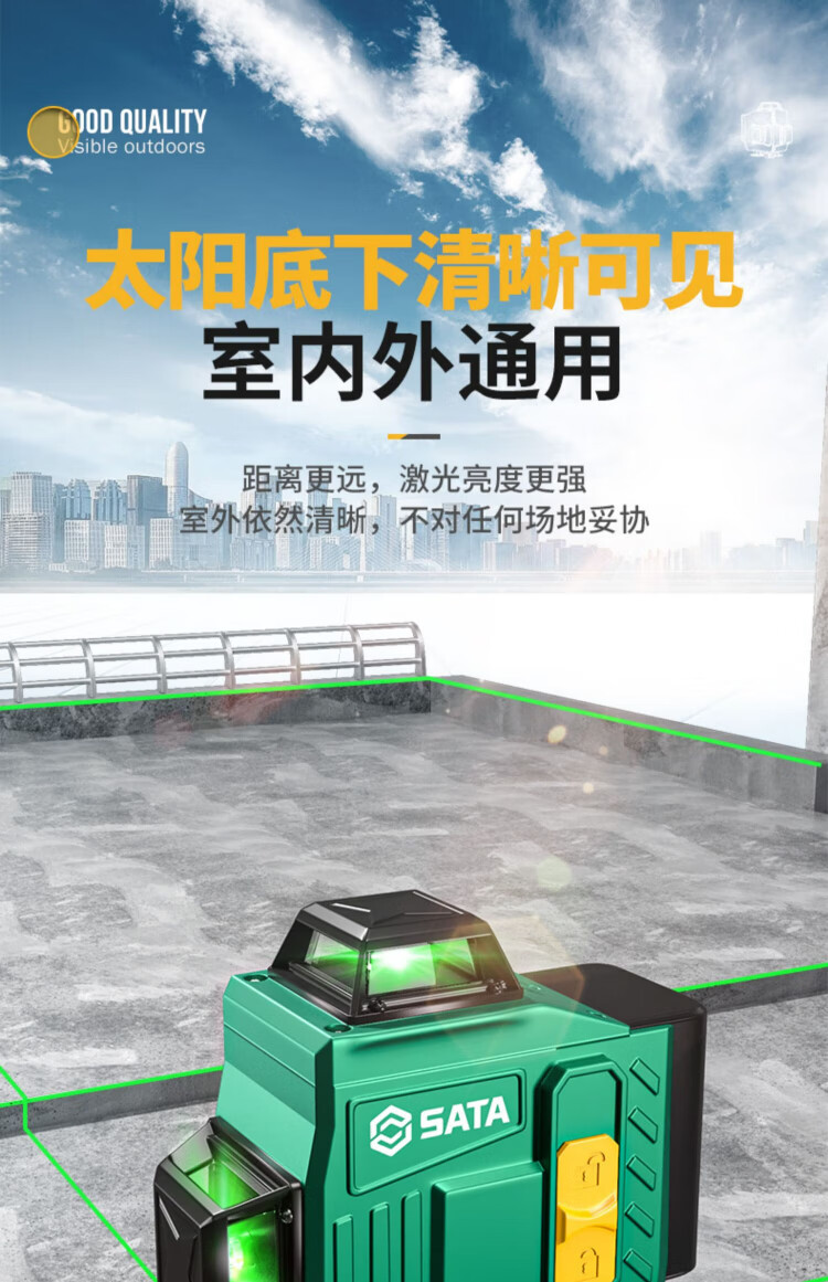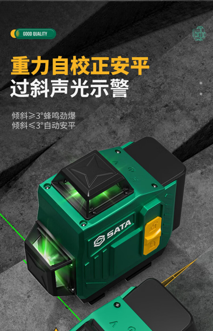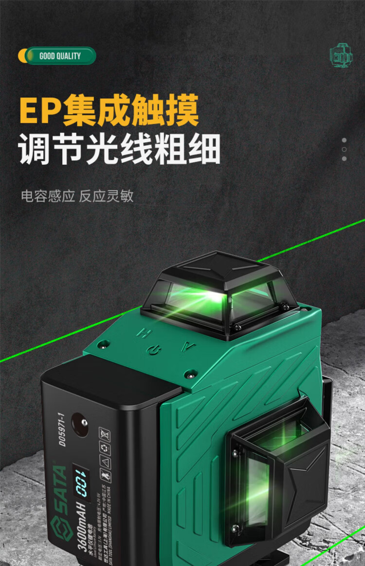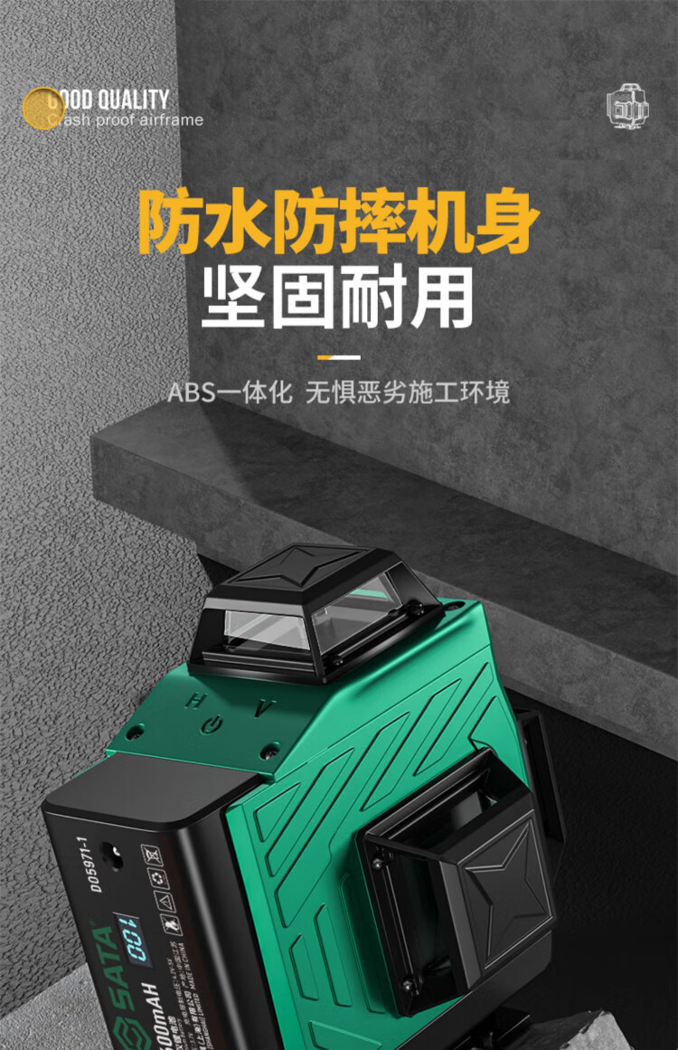 Shida 12-line green light high-precision level meter with strong light and fine line outdoor laser digital display automatic line infrared level meter green light 8 lines digital display dual power + tripod