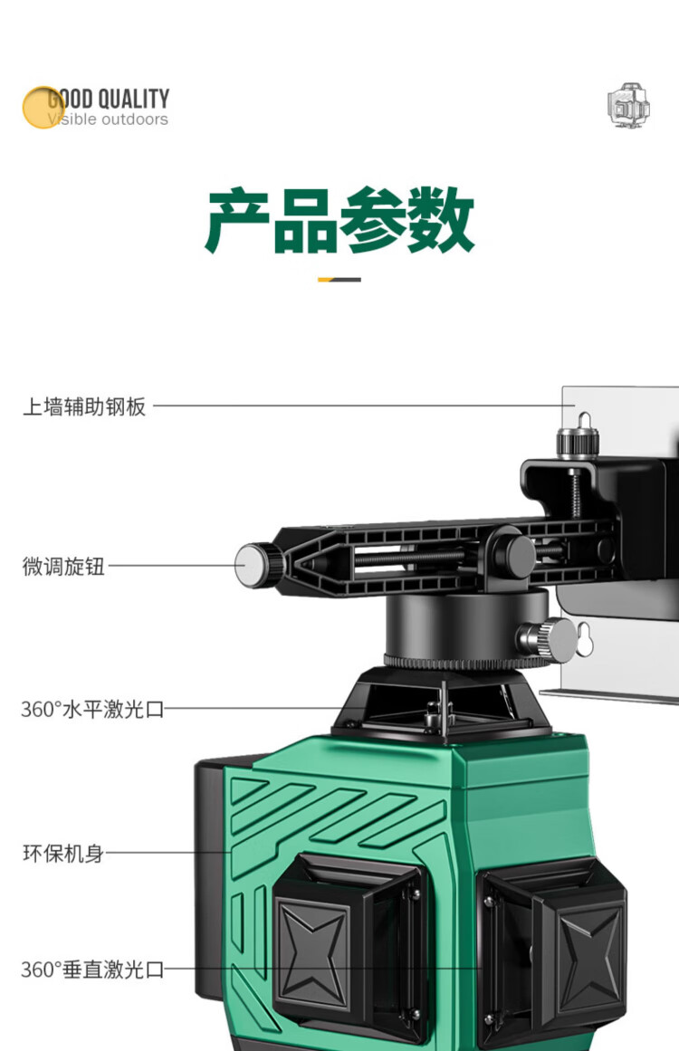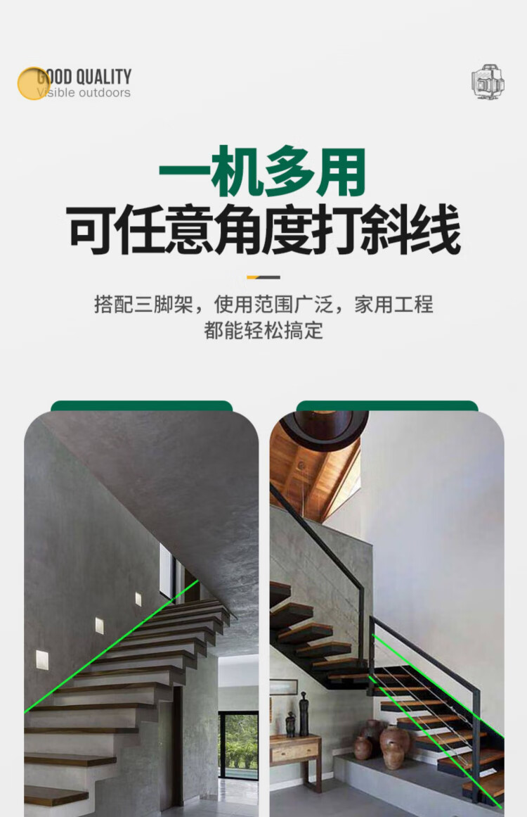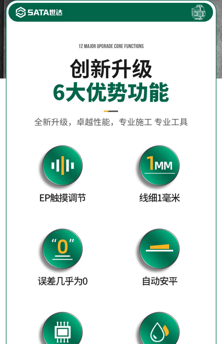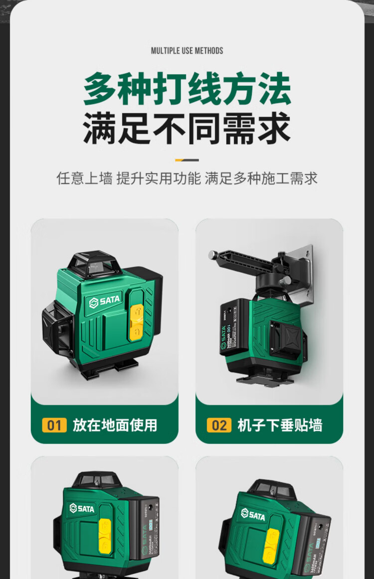 Shida 12-line green light high-precision level meter with strong light and fine line outdoor laser digital display automatic line infrared level meter green light 8 lines digital display dual power + tripod