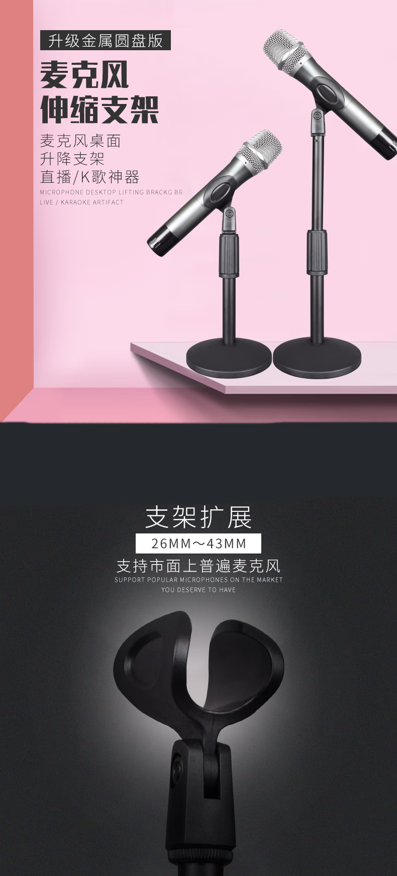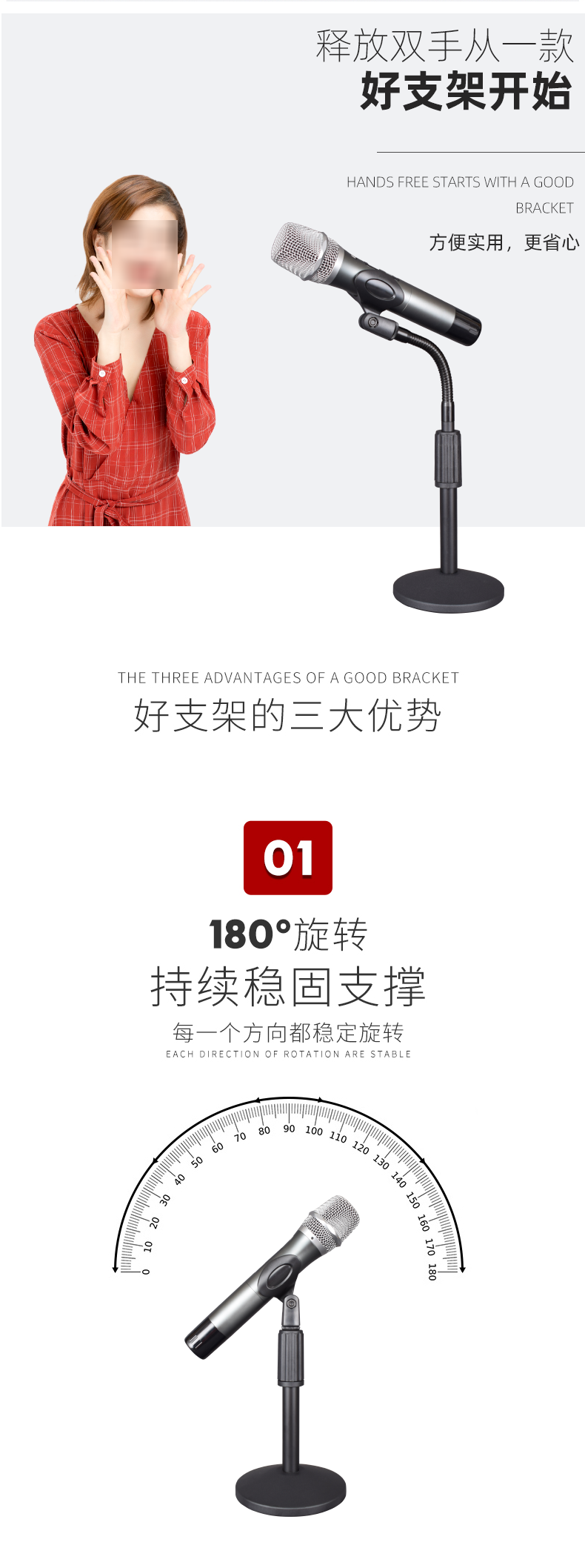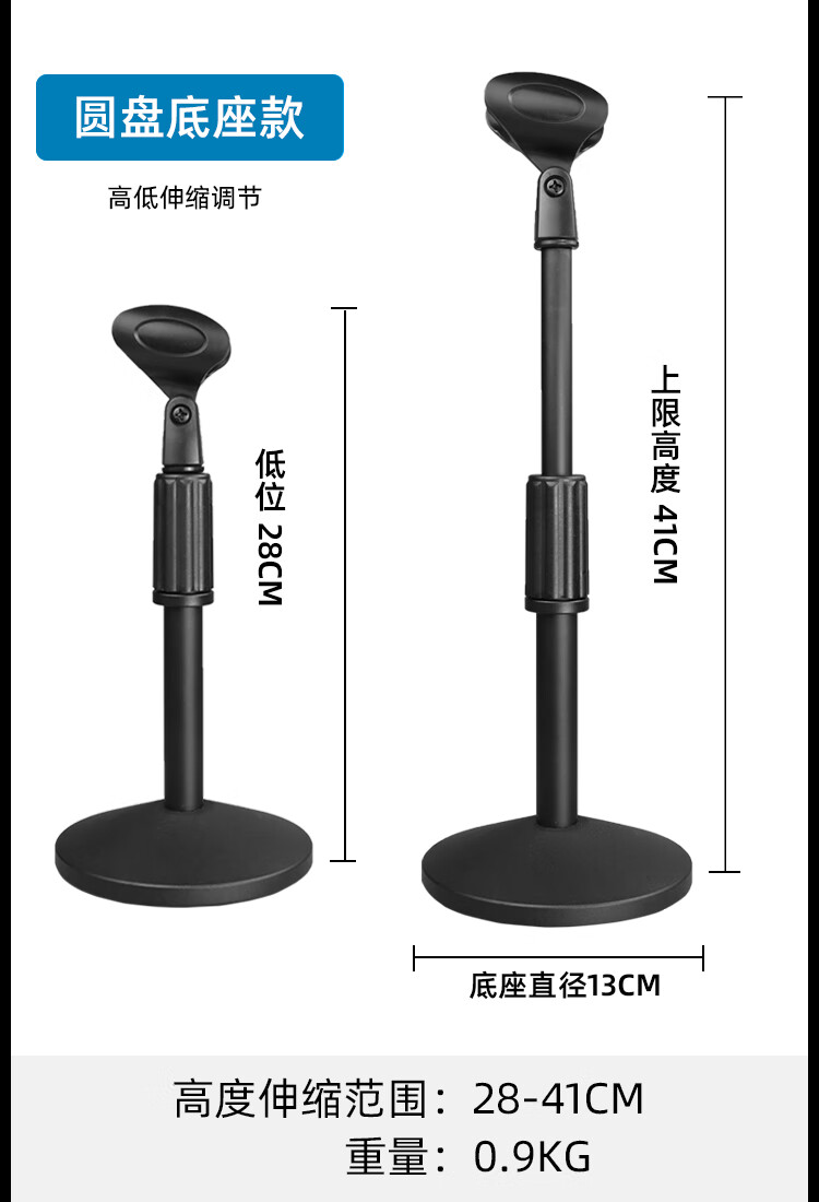 Jakiro Microphone Stand Professional Desktop Conference Microphone Stand Gooseneck Desktop Live Broadcast Home Wired Wireless Universal Microphone Stand Straight Rod Model (Round Base)