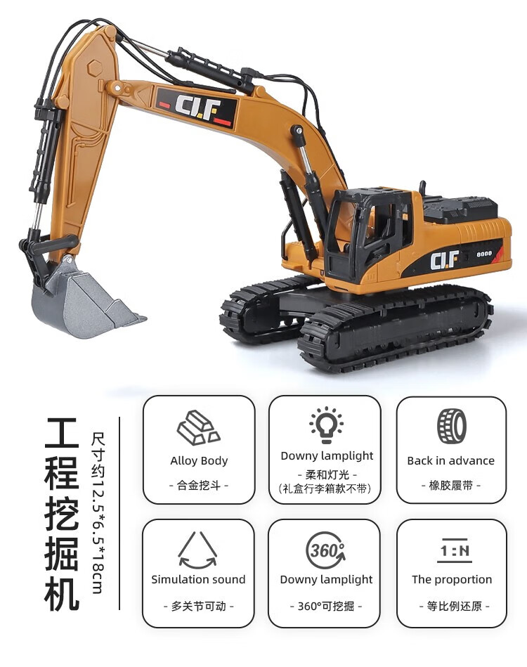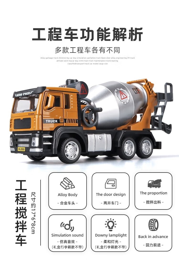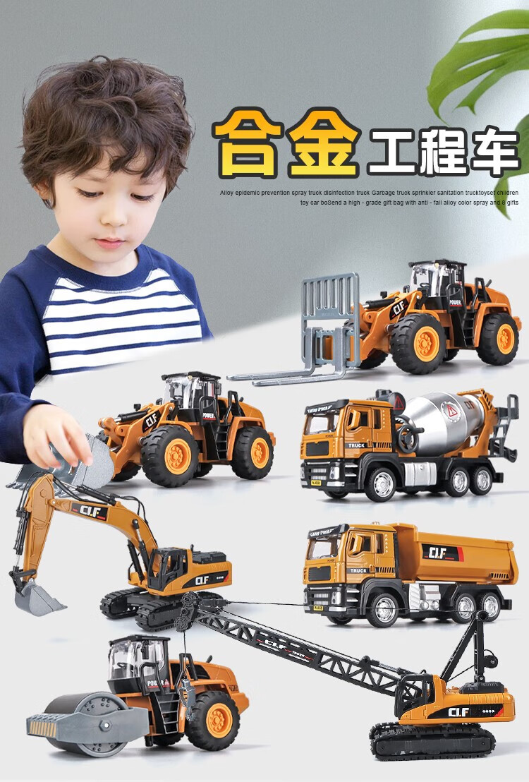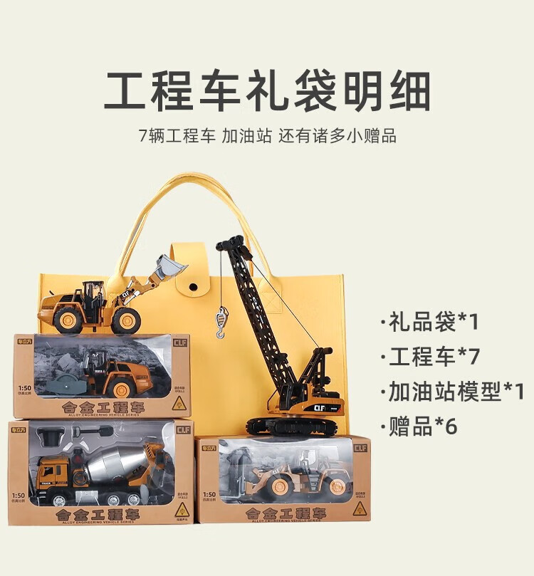 Kawei (KIV) engineering vehicle toy set children's toy car boy alloy crane mixer truck excavator Children's Day gift alloy-engineering seven-piece set-gift box style