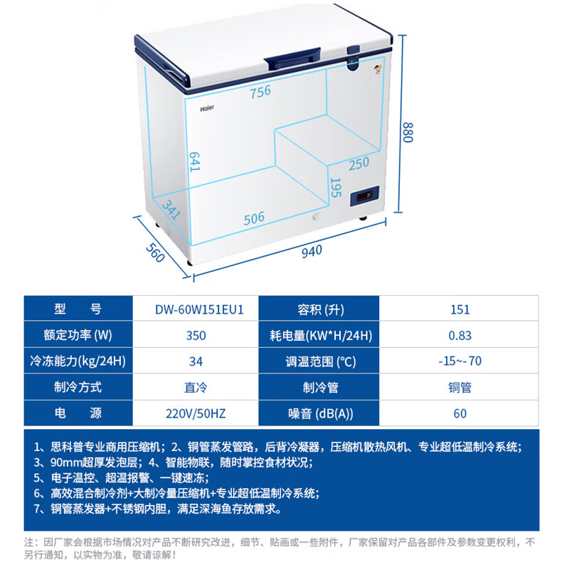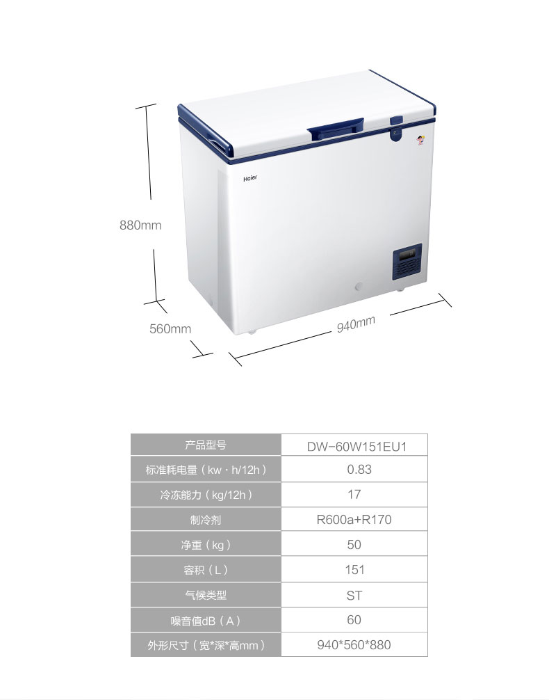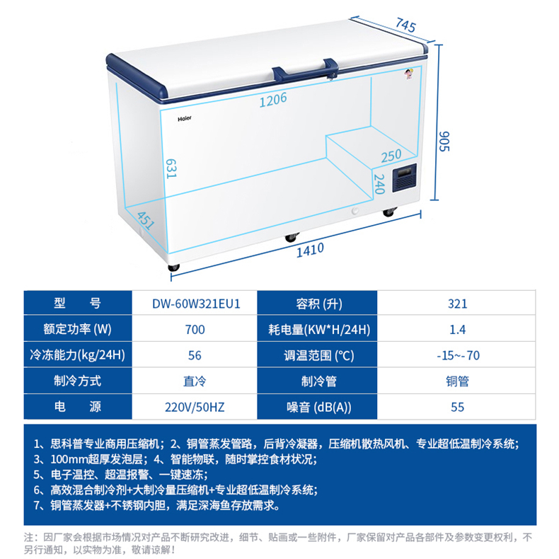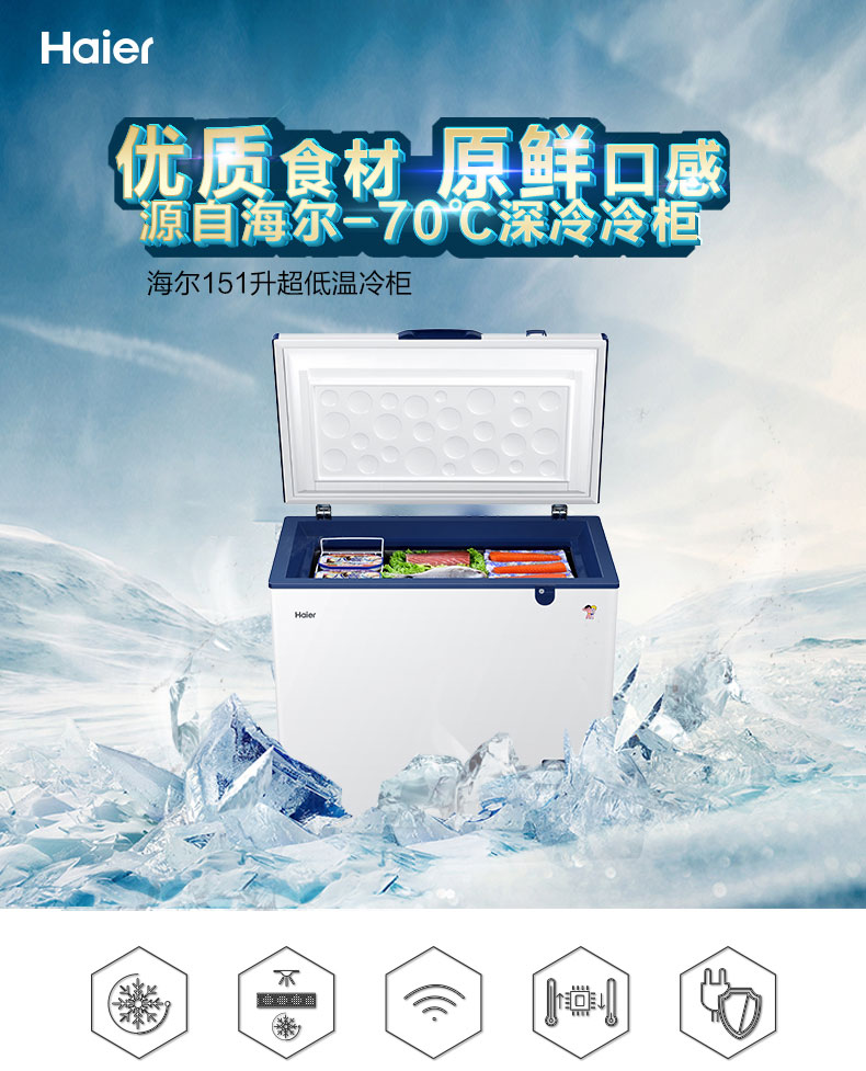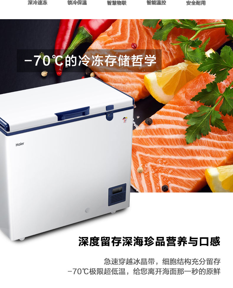 Haier ultra-low temperature freezer-60/-30/minus 70 degrees commercial tuna seafood cryogenic quick-frozen laboratory biomedical scientific research refrigerator freezer Level 1 energy consumption BC/BD-519GHPT 10~-38