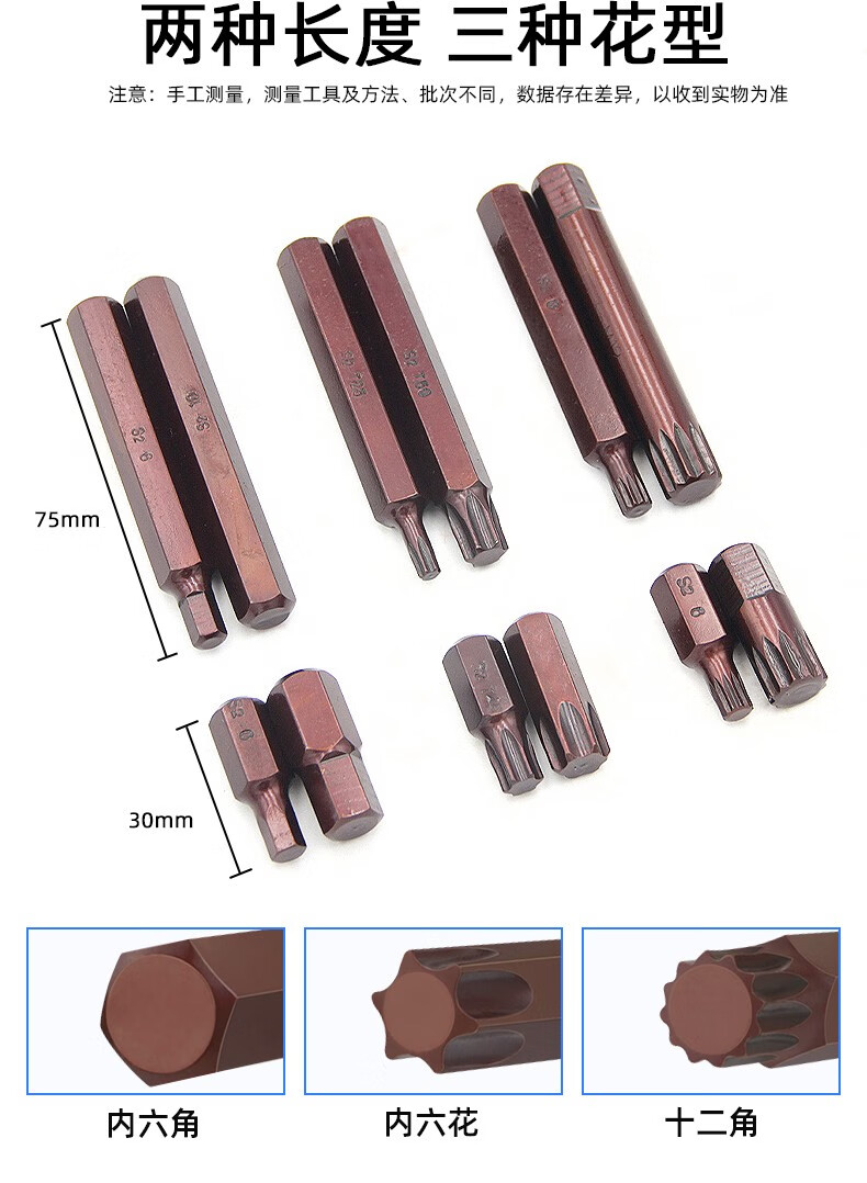 Fanglong inner hex socket bit set with pneumatic electric screwdriver set, hexagonal plum blossom super-hard industrial wind bit lengthened S2 split combination bit set, 40 pieces