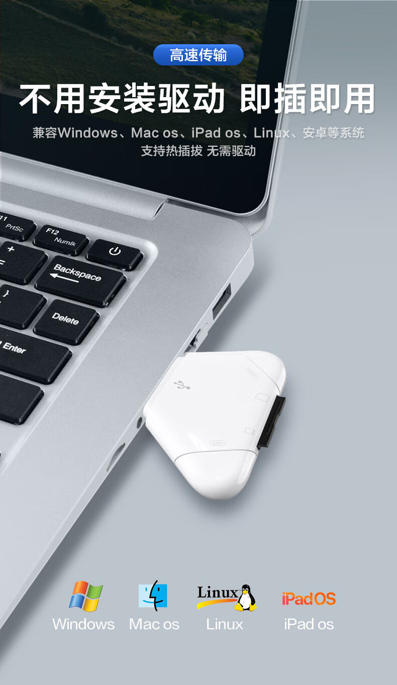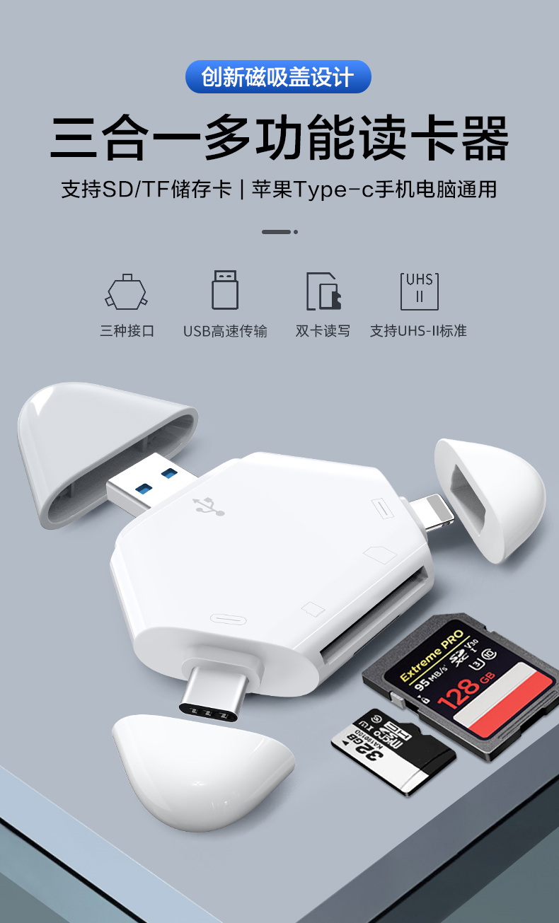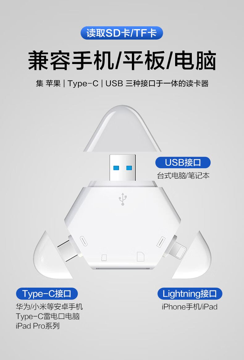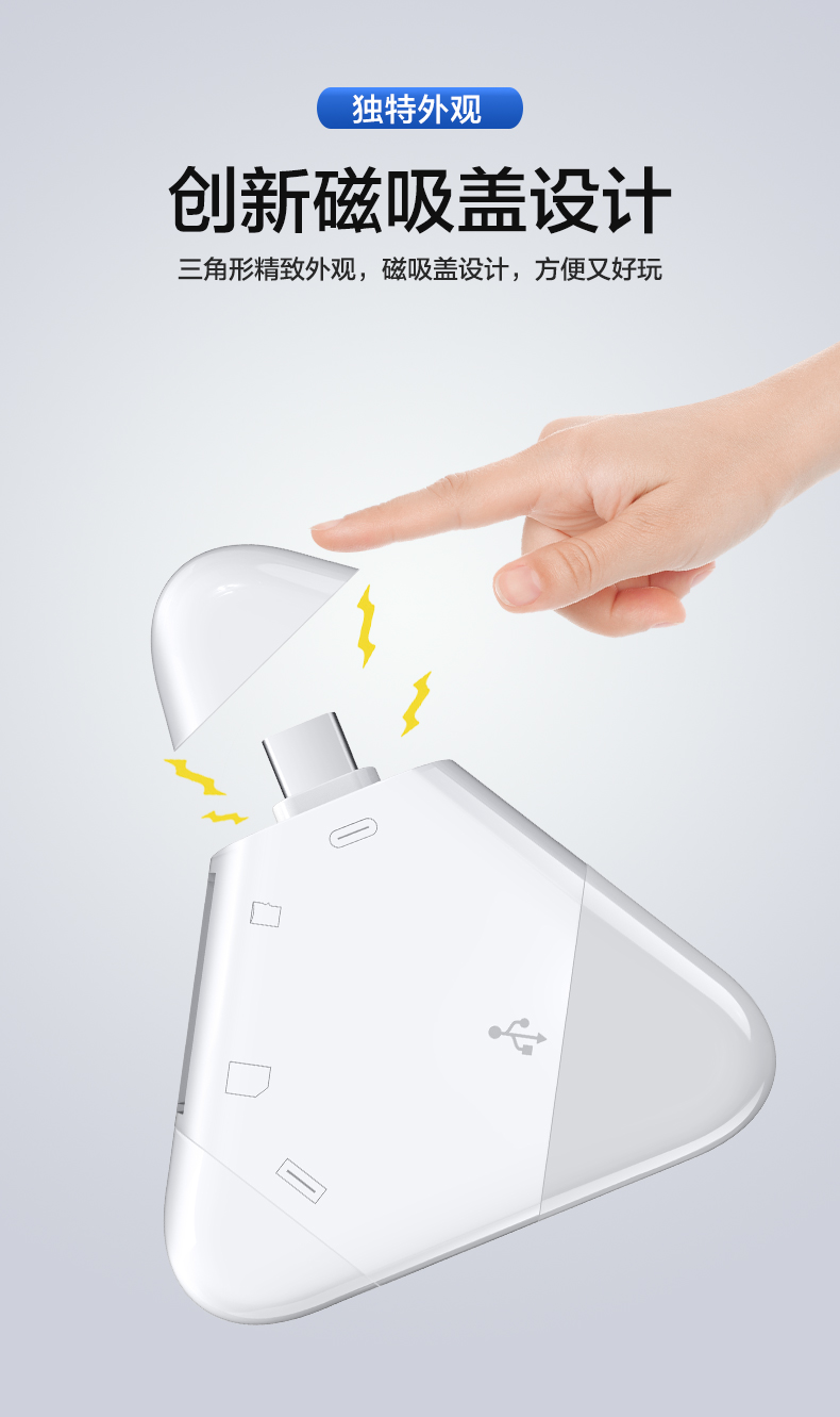 MGPG card reader all-in-one Apple Android typec Huawei mobile phone computer universal high-speed SD card TF card camera iPad multi-function memory card reading three-in-one card reader - triangle model supports SD card + TF card