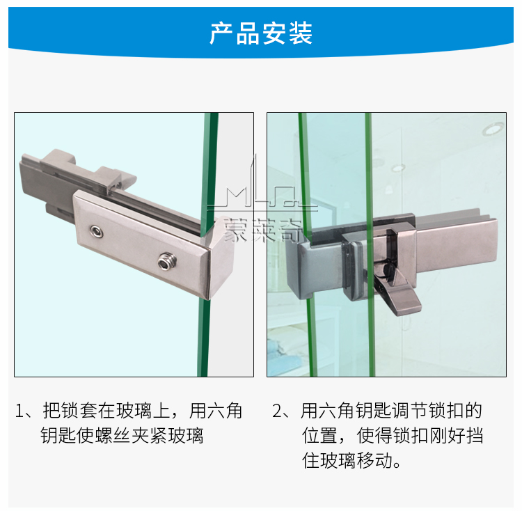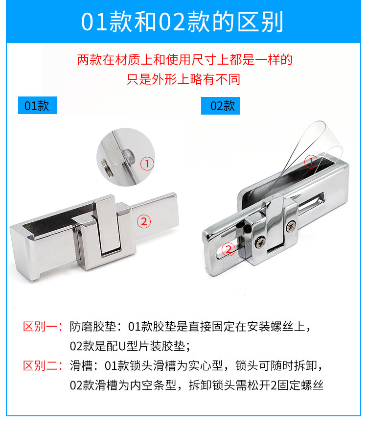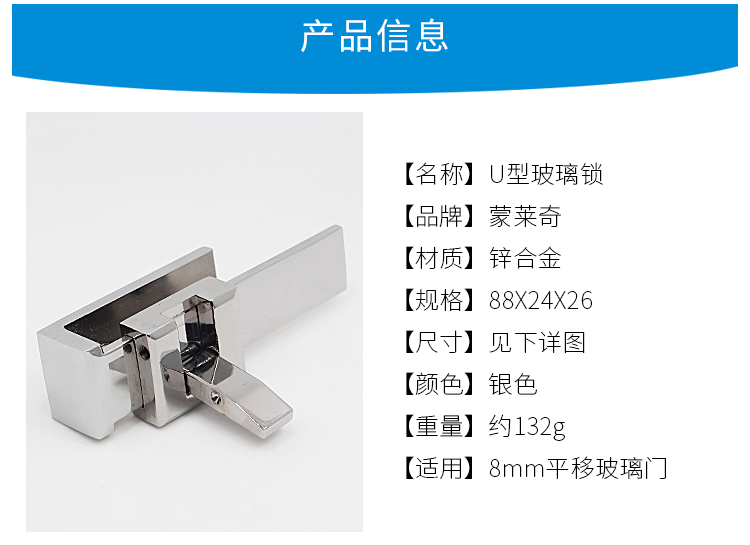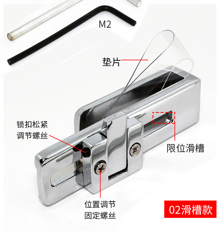 Monlage glass latch shower room accessories bathroom glass sliding door lock middle lock bathroom sliding door lock without punching 02 models U-shaped glass lock 1 price