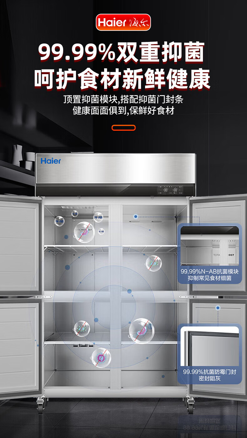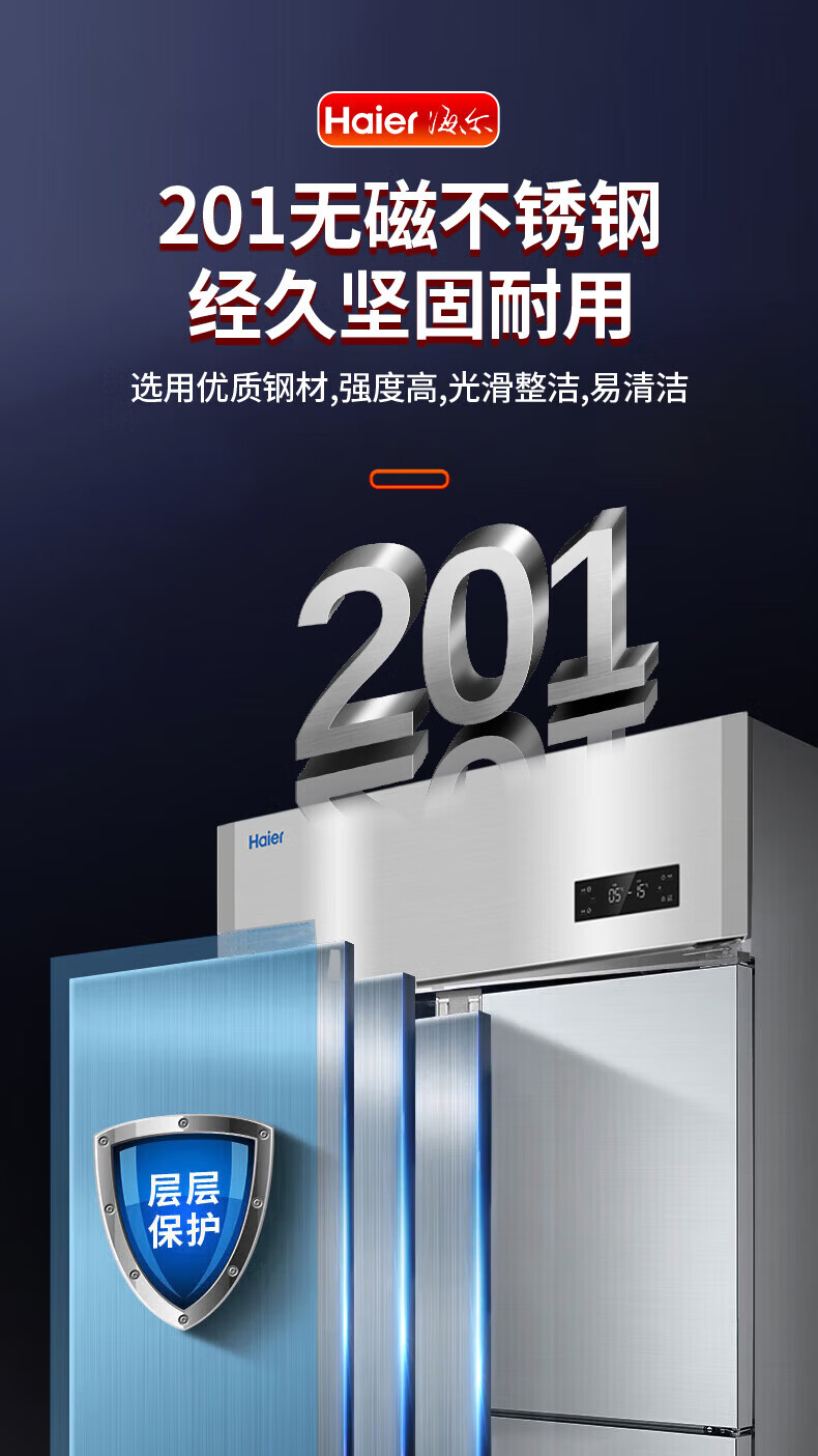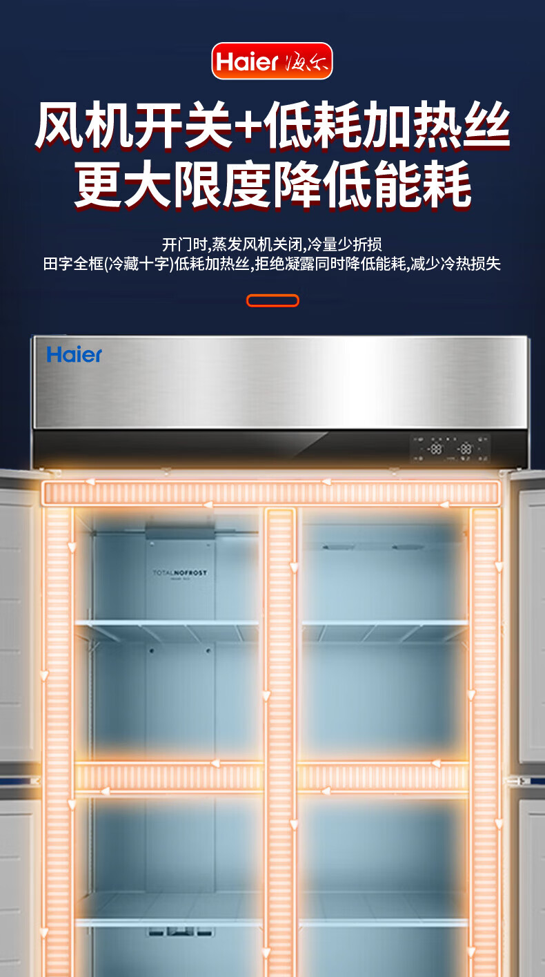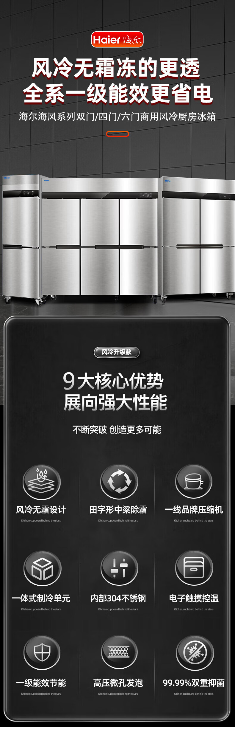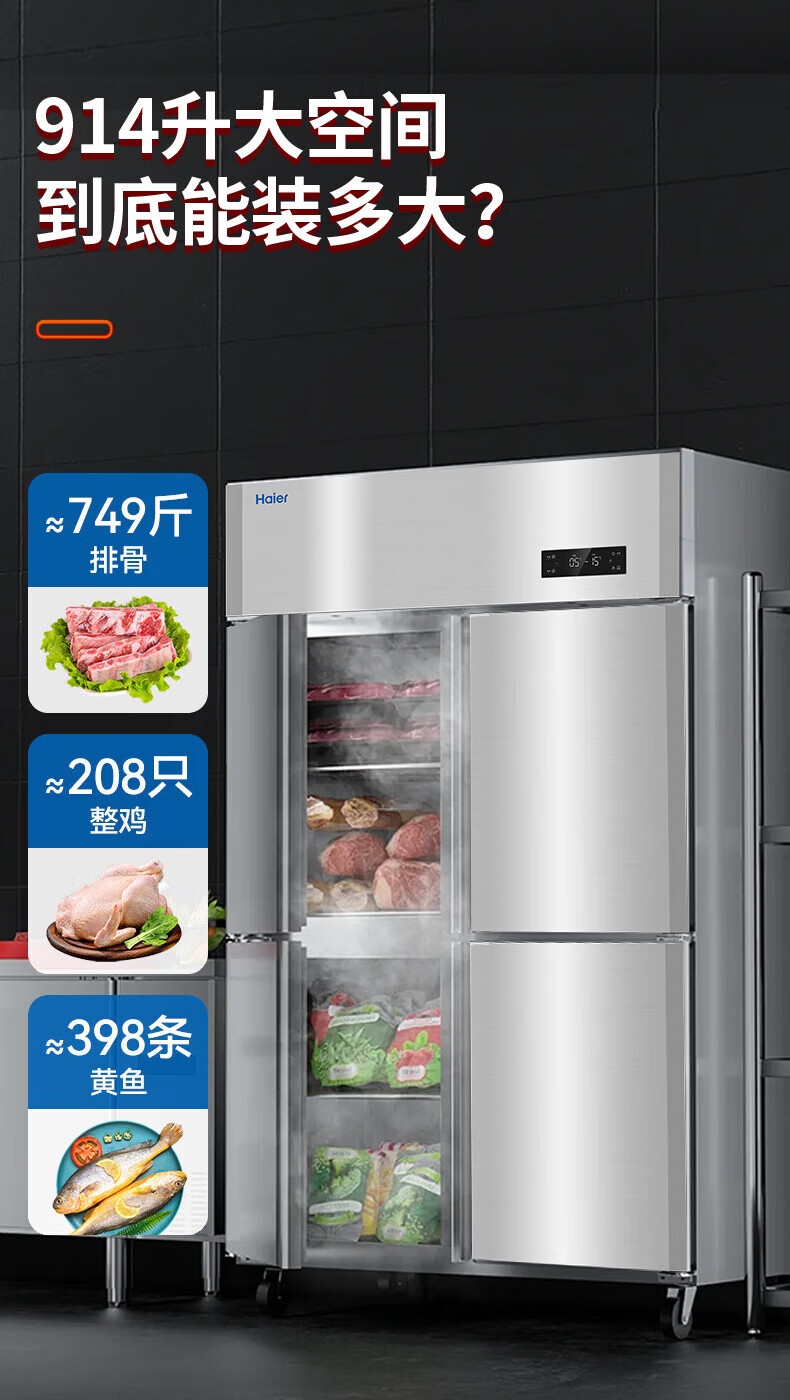 Haier Freezer Commercial Four-Door Six-Door Refrigerator Kitchen Cabinet Vertical Hotel Freezer Back Kitchen Quick Freezer Stainless Steel Refrigerator Cabinet Fresh Meat Preservation Cabinet Sea Breeze Deluxe Model Air-cooled Frost-free Level 1 Energy Efficiency Four-Door Full Refrigeration 900 Liters