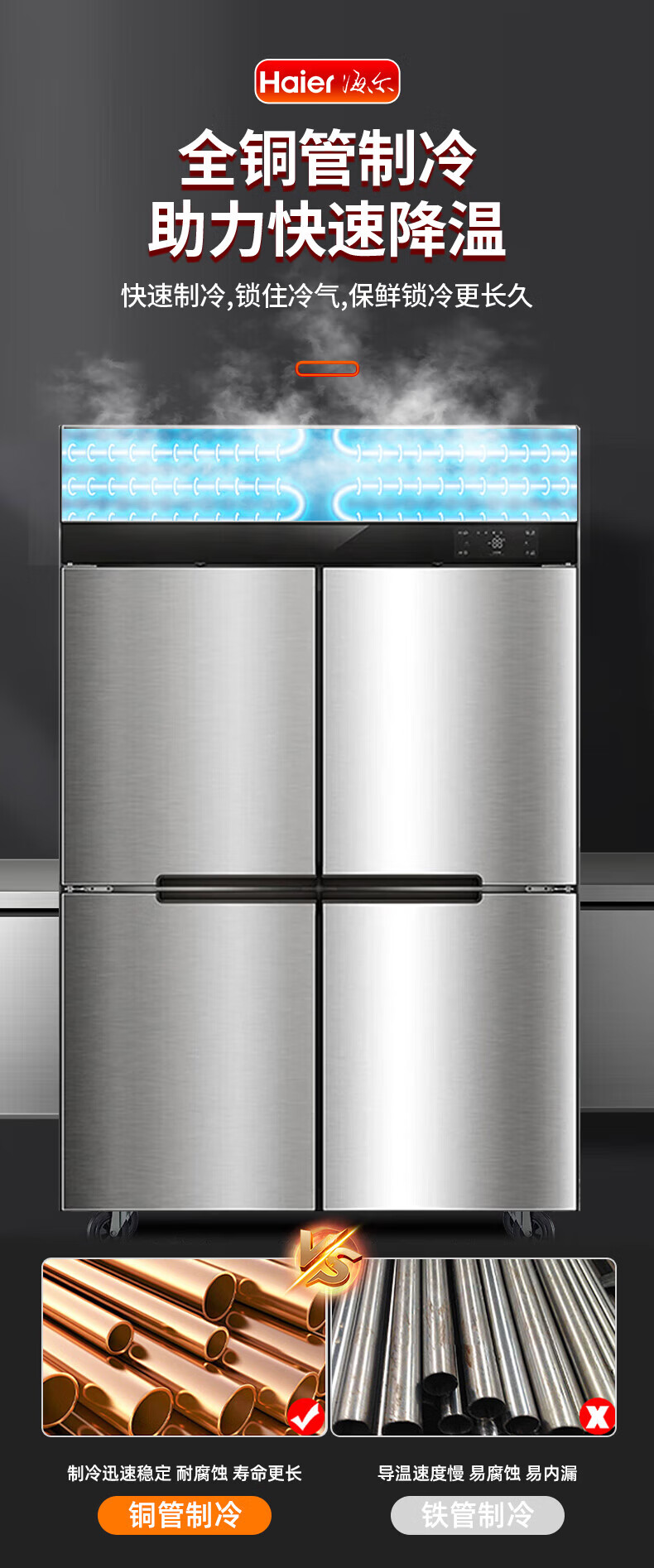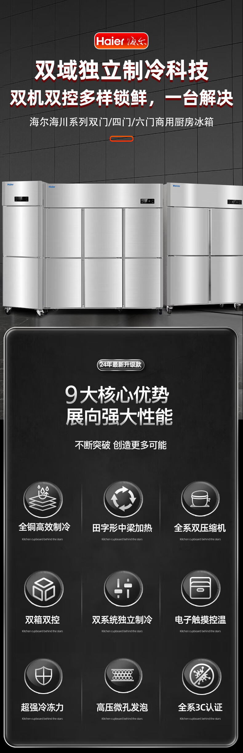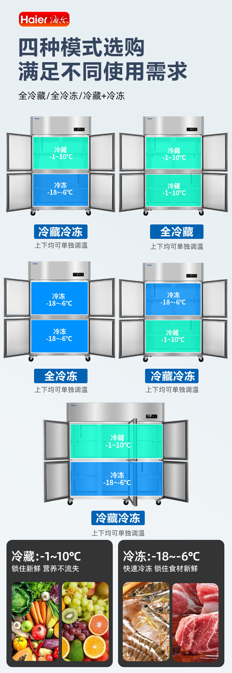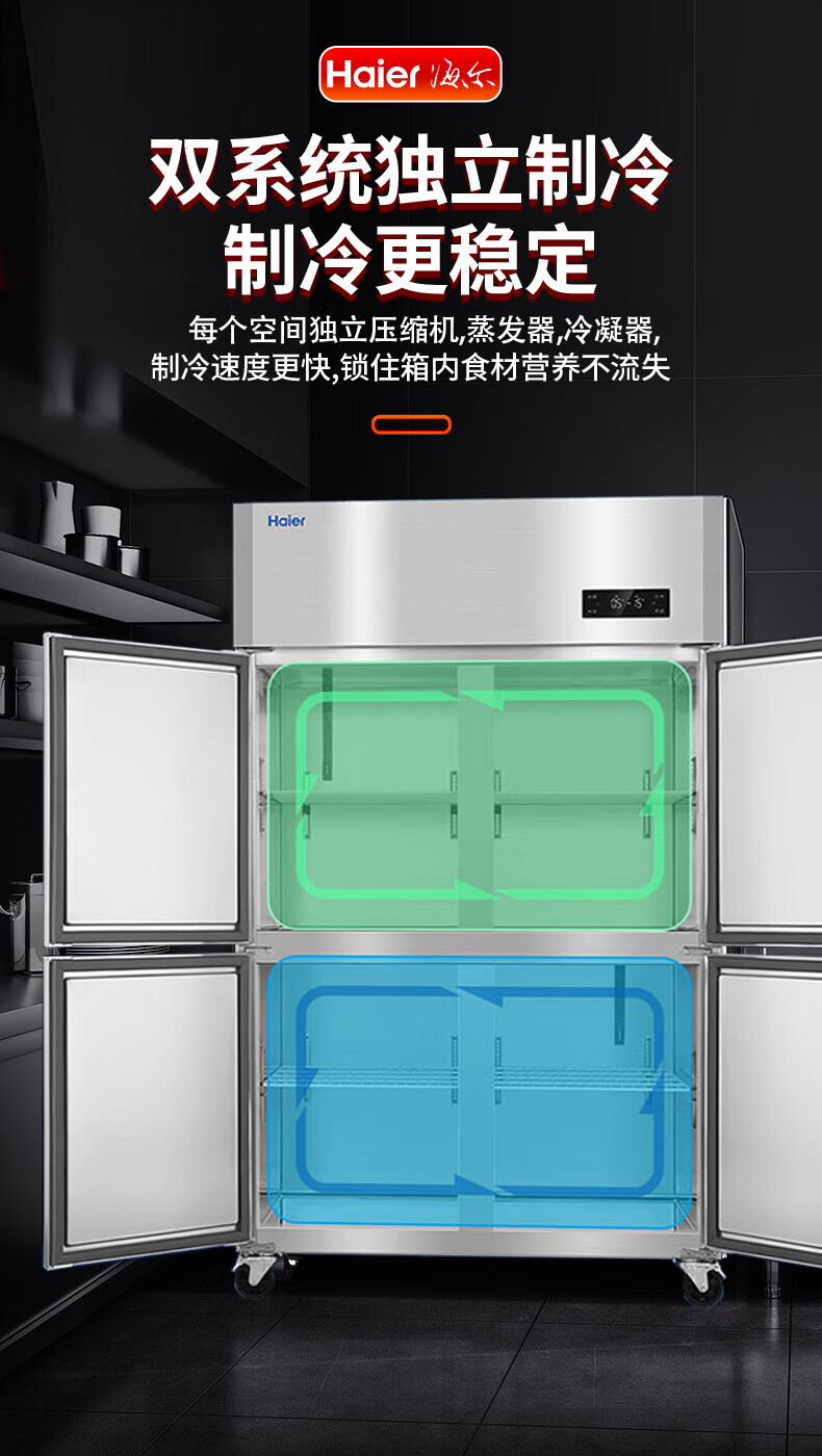 Haier Freezer Commercial Four-Door Six-Door Refrigerator Kitchen Cabinet Vertical Hotel Freezer Back Kitchen Quick Freezer Stainless Steel Refrigerator Cabinet Fresh Meat Preservation Cabinet Sea Breeze Deluxe Model Air-cooled Frost-free Level 1 Energy Efficiency Four-Door Full Refrigeration 900 Liters